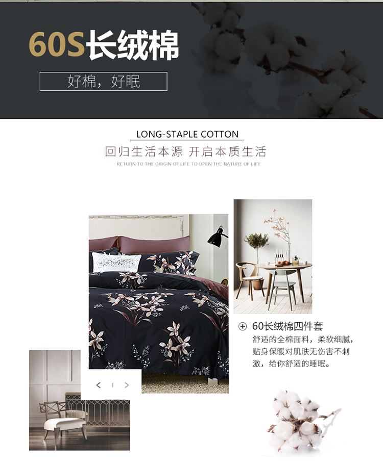 商品名称:太古汇家居 60长绒棉(印花)四件套 温妮TGH029