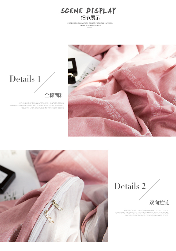 商品名称:芃成 2020新款全棉13070四件套 运动风情 粉