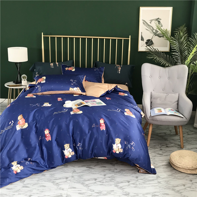 (总)优然居2020新款100支婴儿暖绒棉轻奢风刺绣四件套,大地黄加藏青,复古咖青,轻奢粉灰,霜绿大地色,霜绿复古色