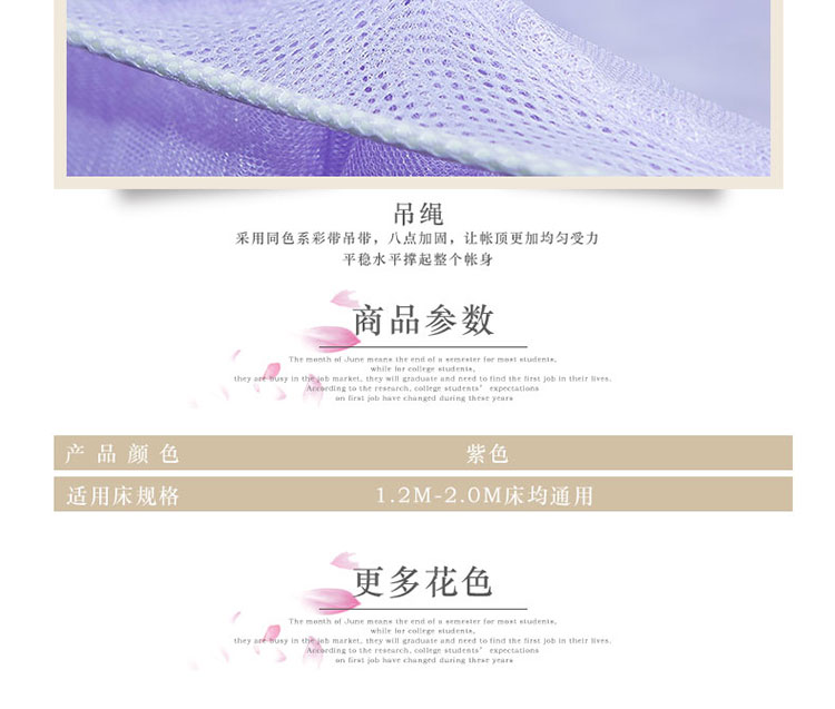商品名称:冉美家纺 2021新款圆顶蚊帐栀子花紫色