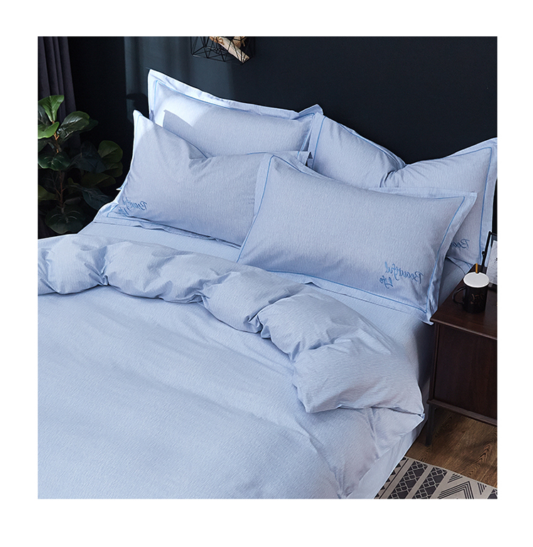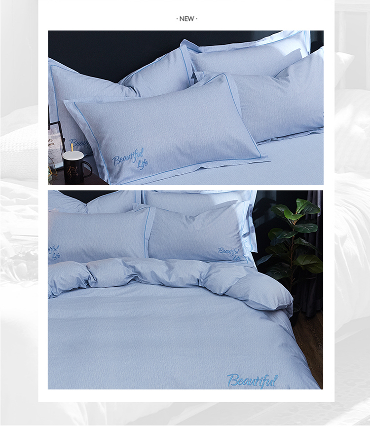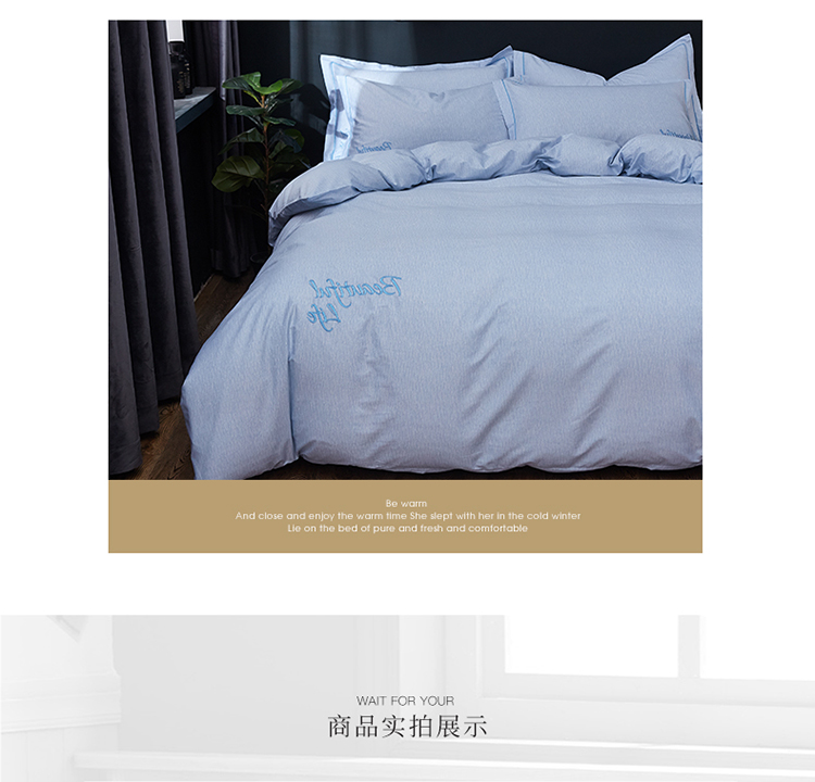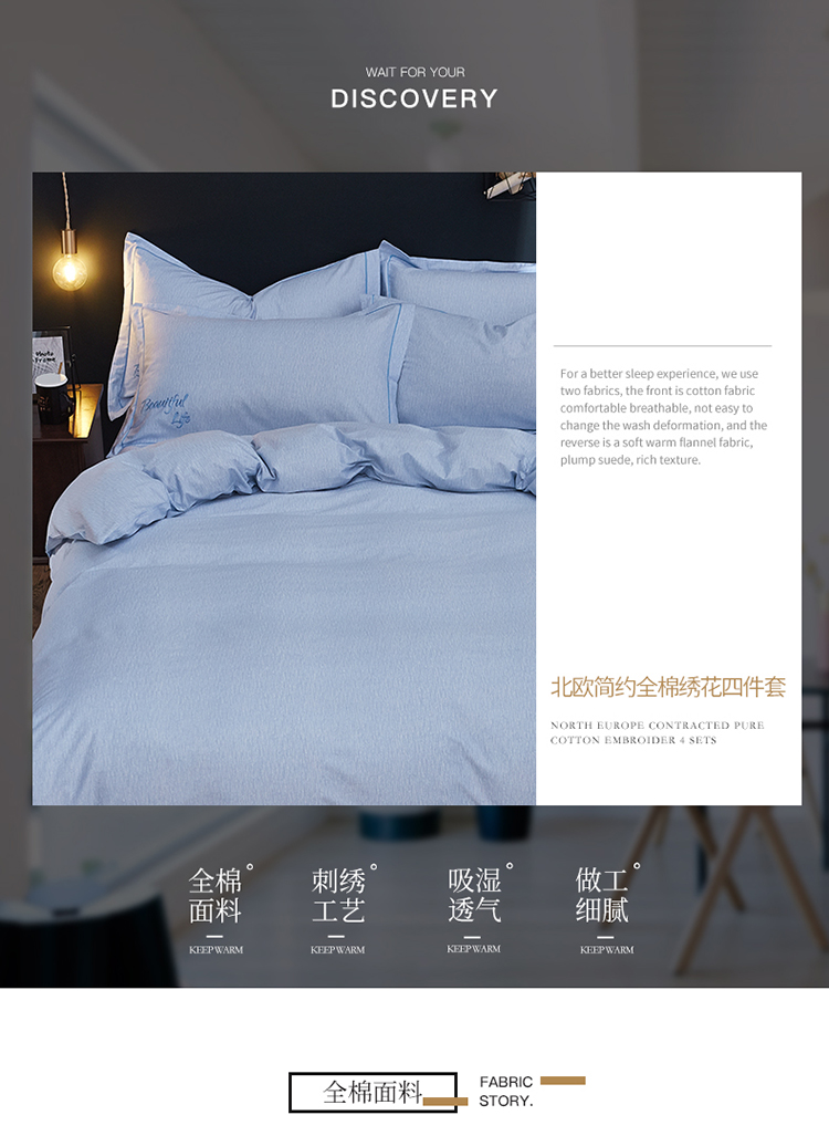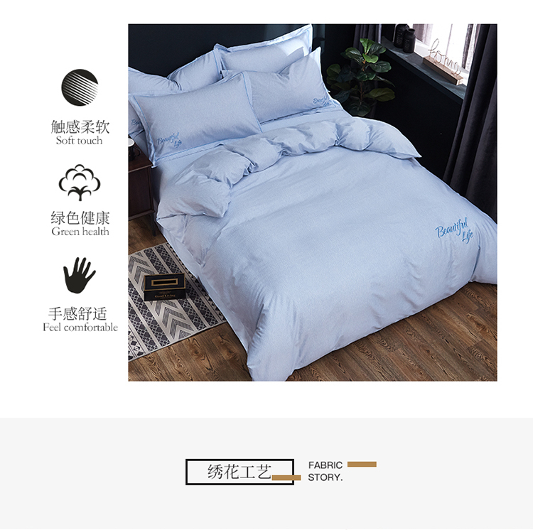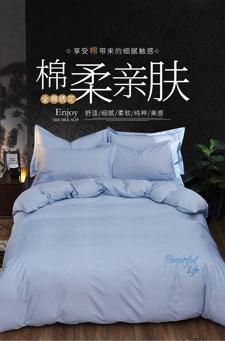 商品名称:雲归梦 北欧简约全棉绣花四件套 圣托里尼-海蓝