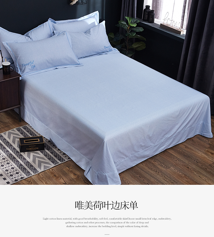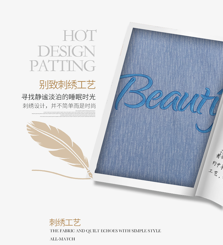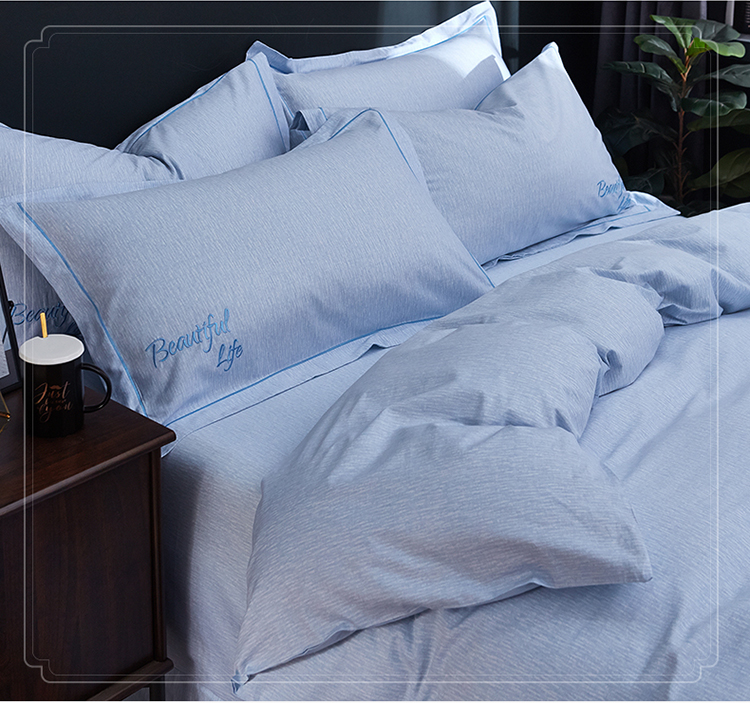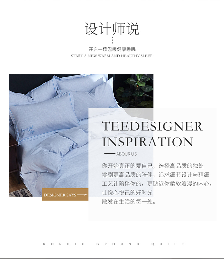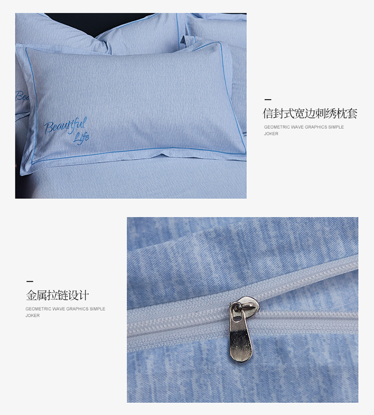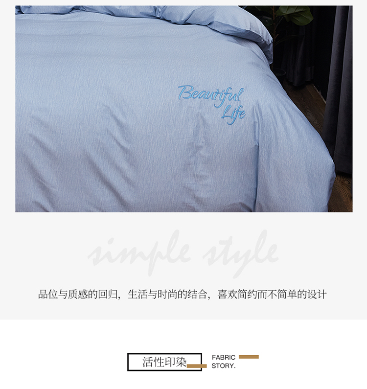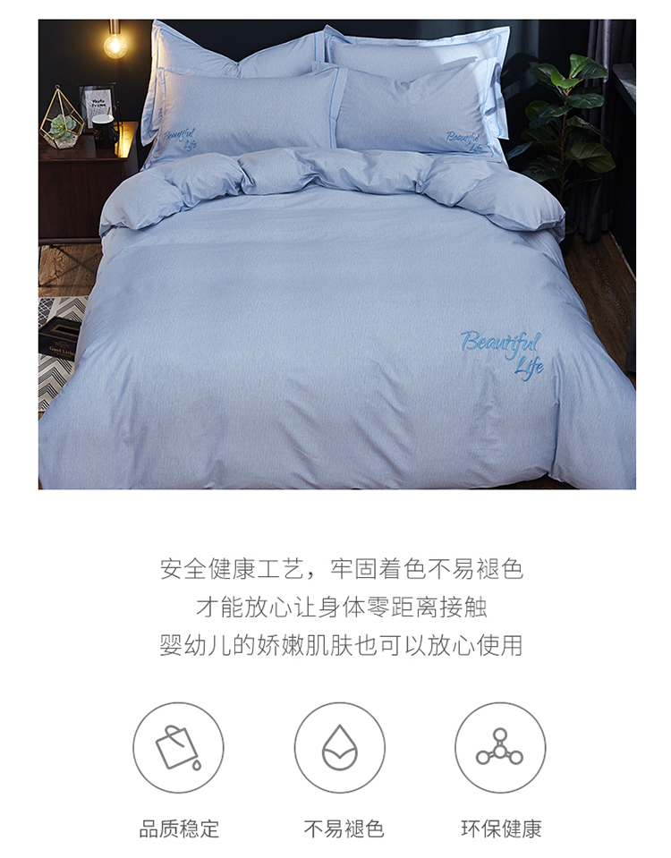 商品名称:雲归梦 北欧简约全棉绣花四件套 圣托里尼-海蓝
