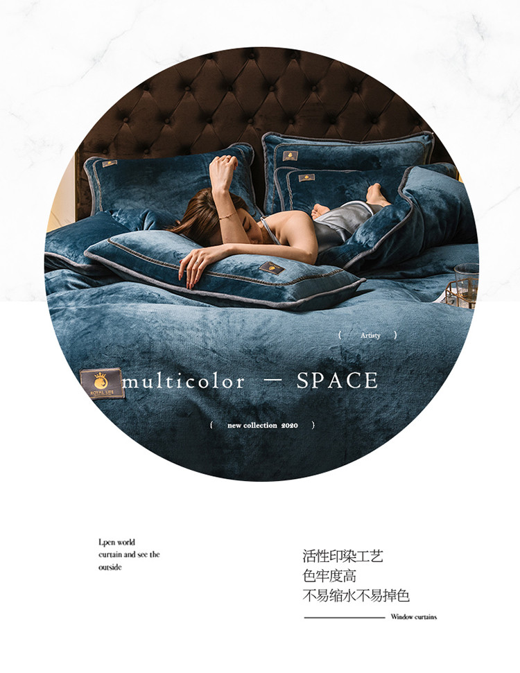 商品名称:Y-DGN 2023秋冬纯色牛奶绒黑金系列四件套 宝石蓝