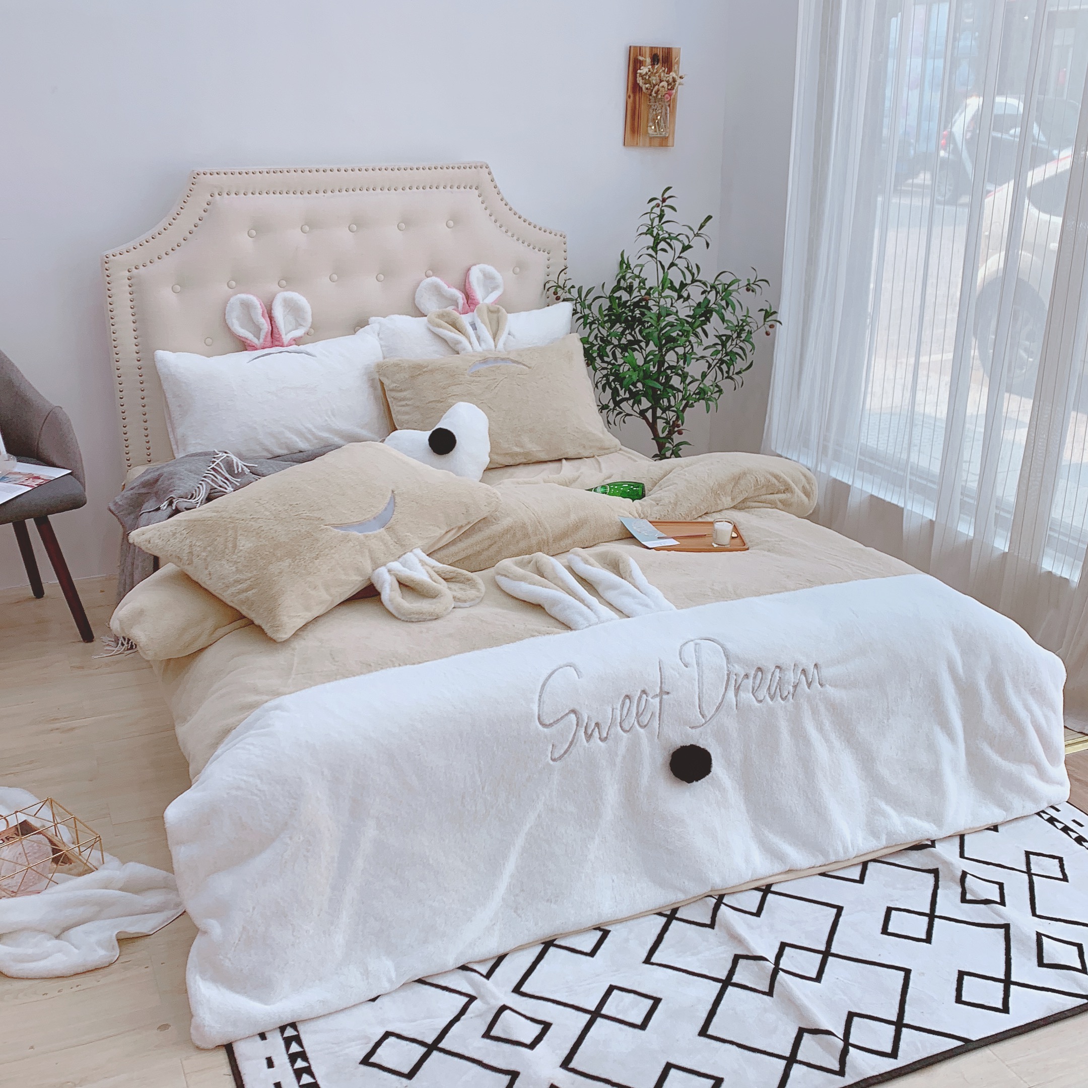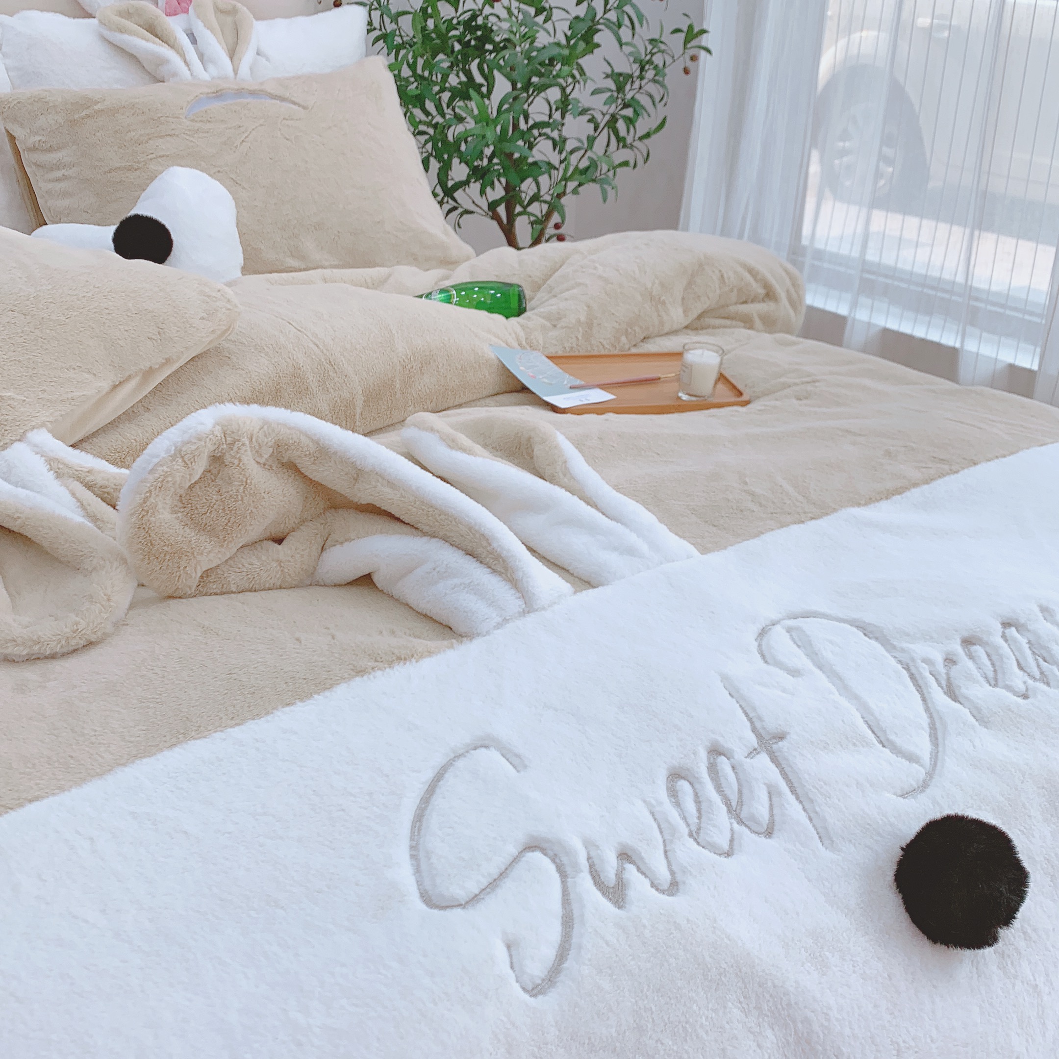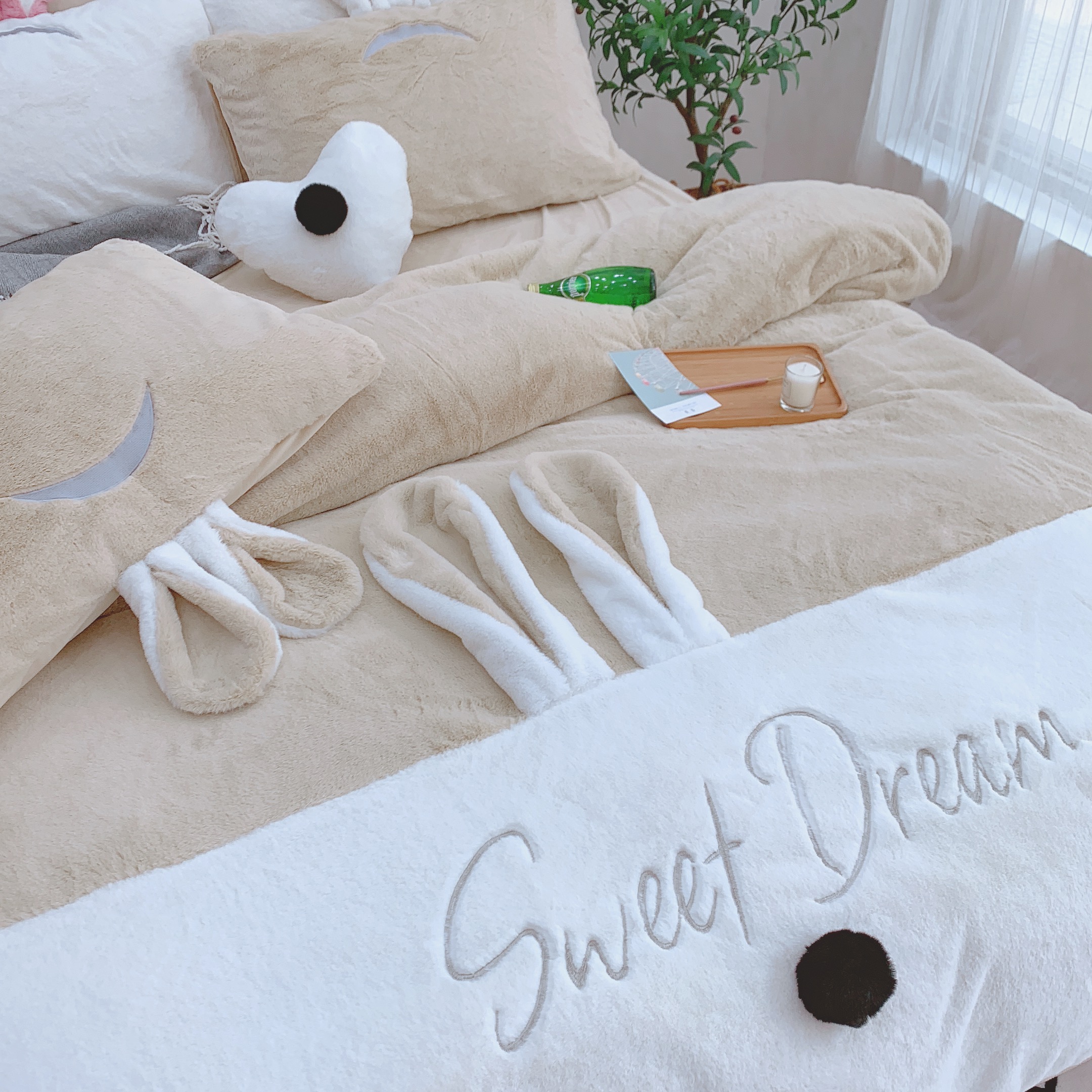 商品名称:漫调家纺 秋冬新品创意立体兔兔绒保暖四件套 浅卡其