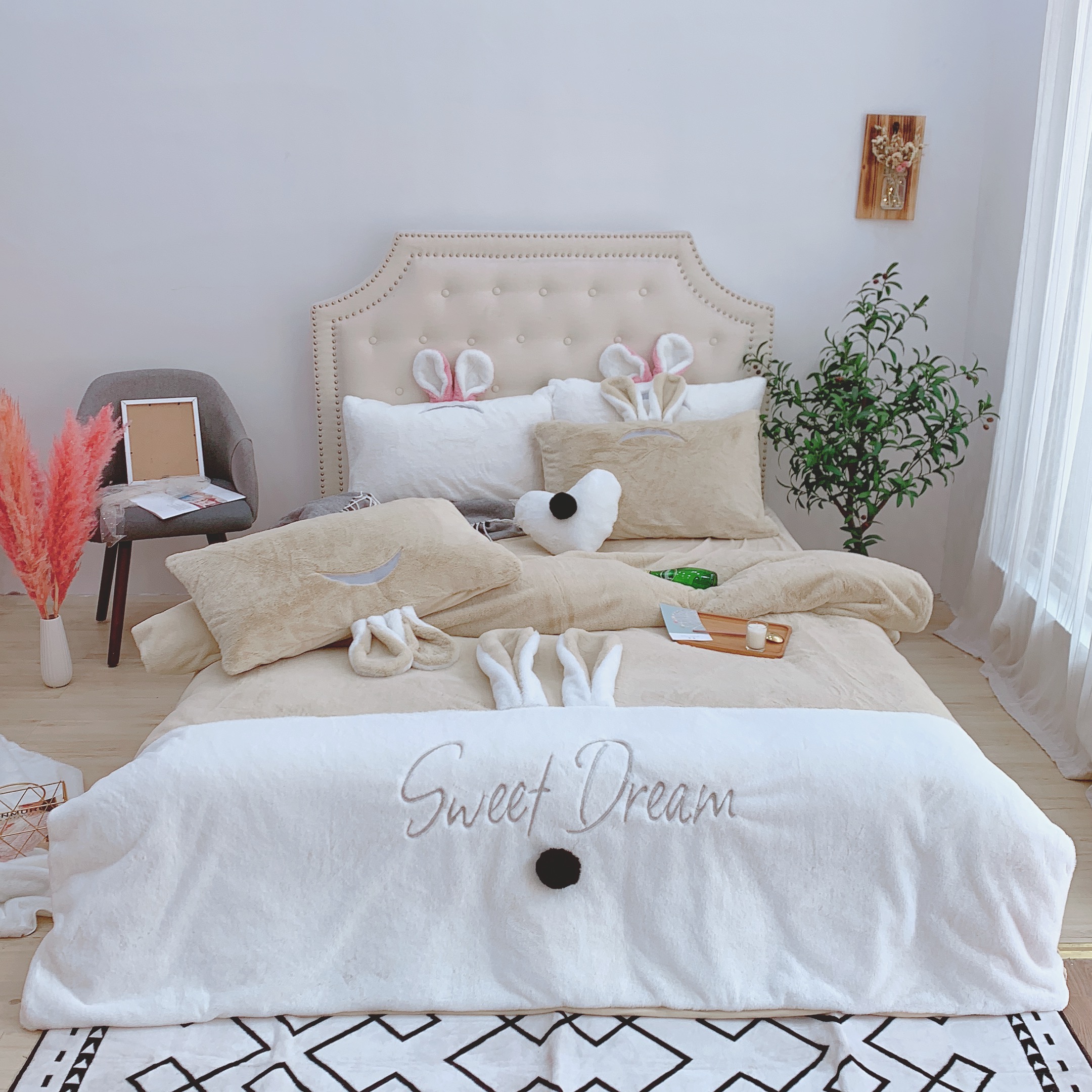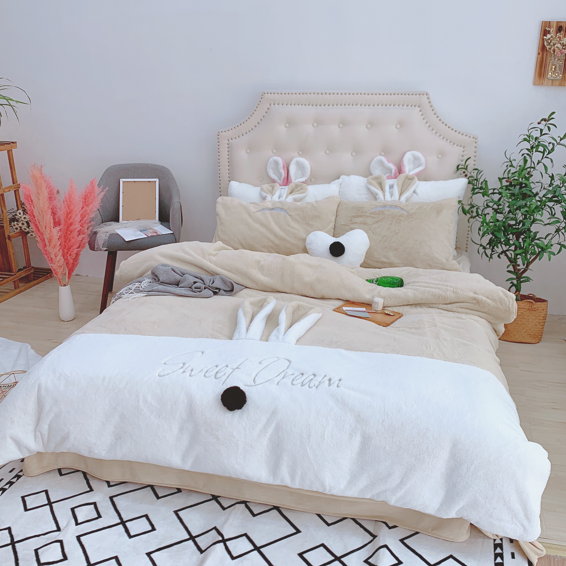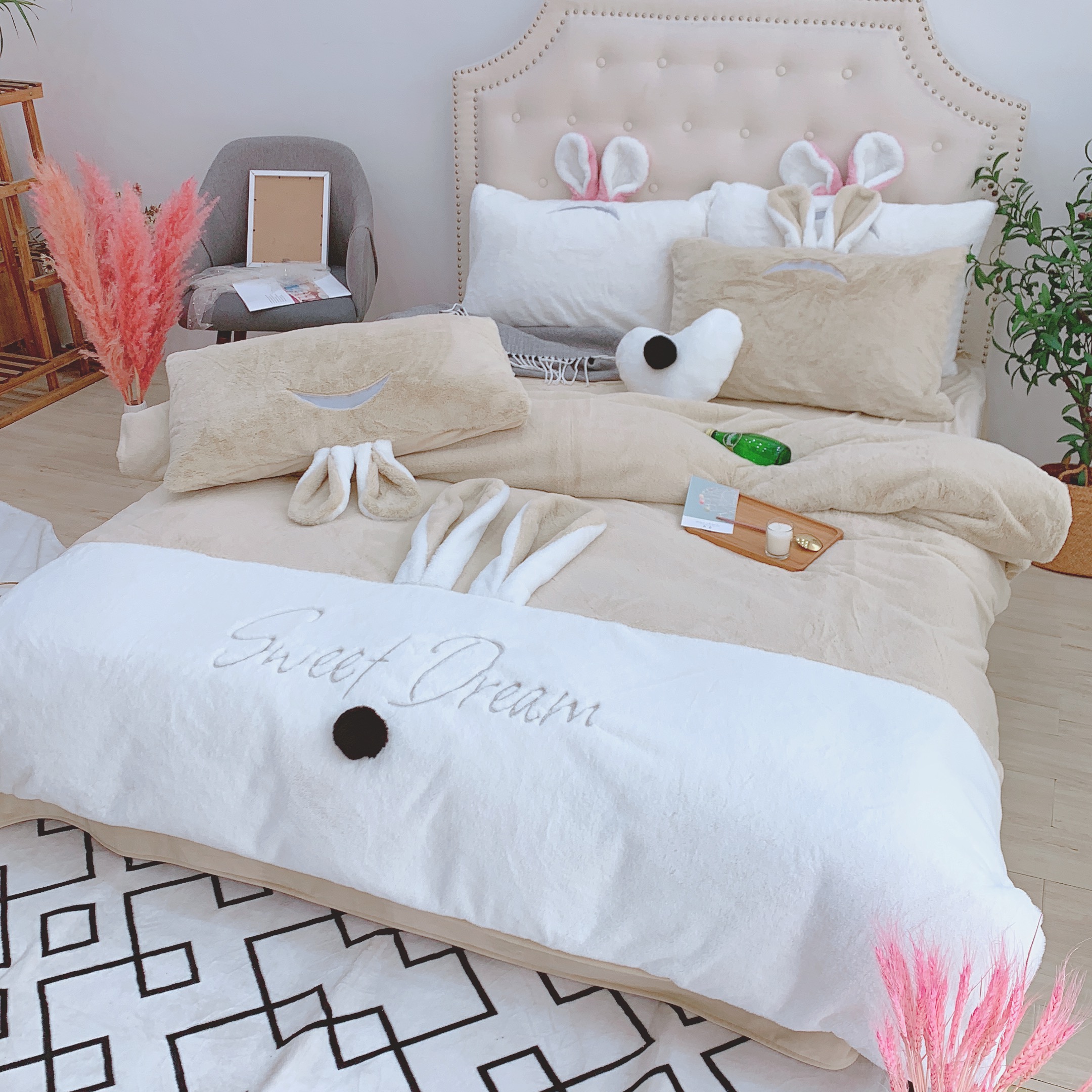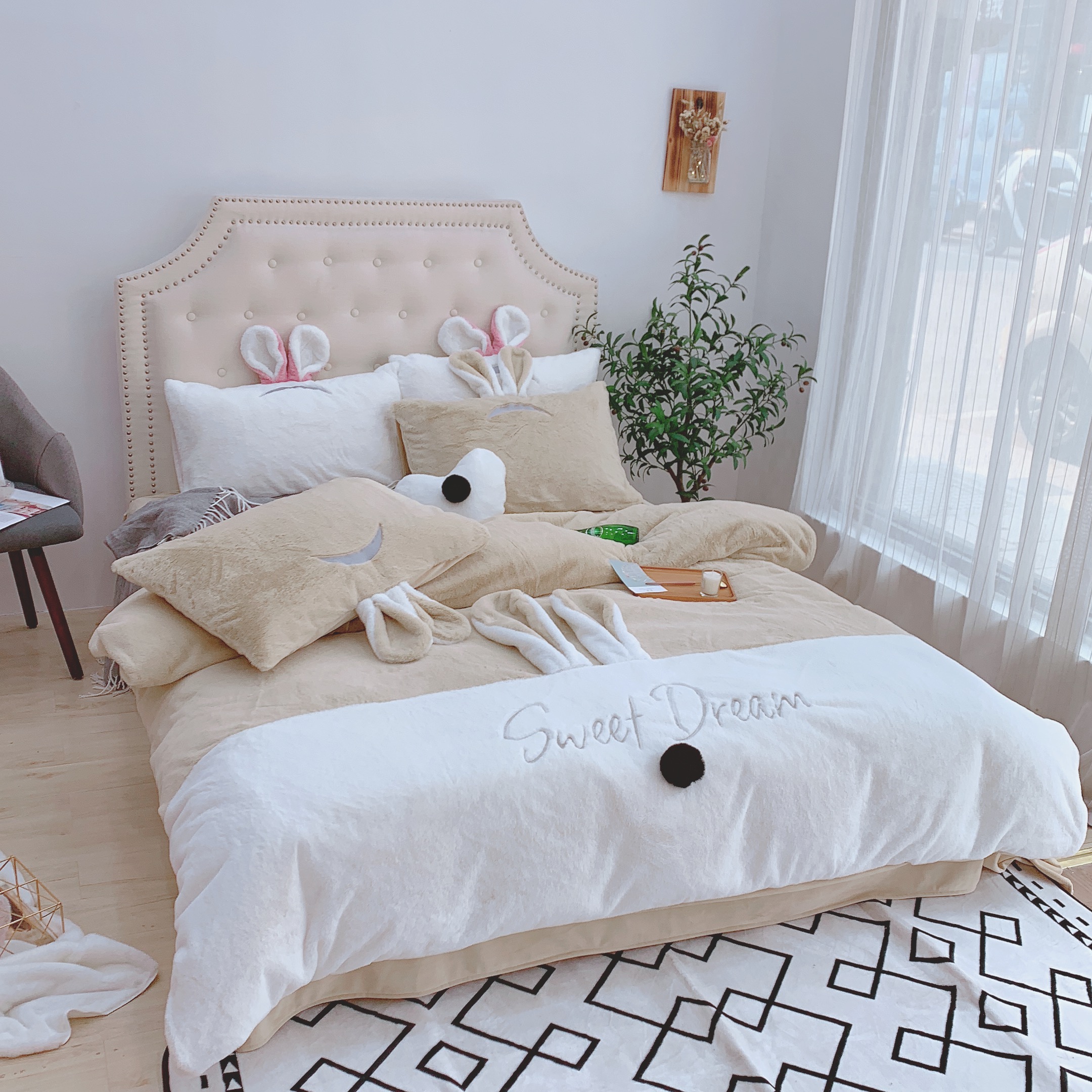 商品名称:漫调家纺 秋冬新品创意立体兔兔绒保暖四件套 浅卡其