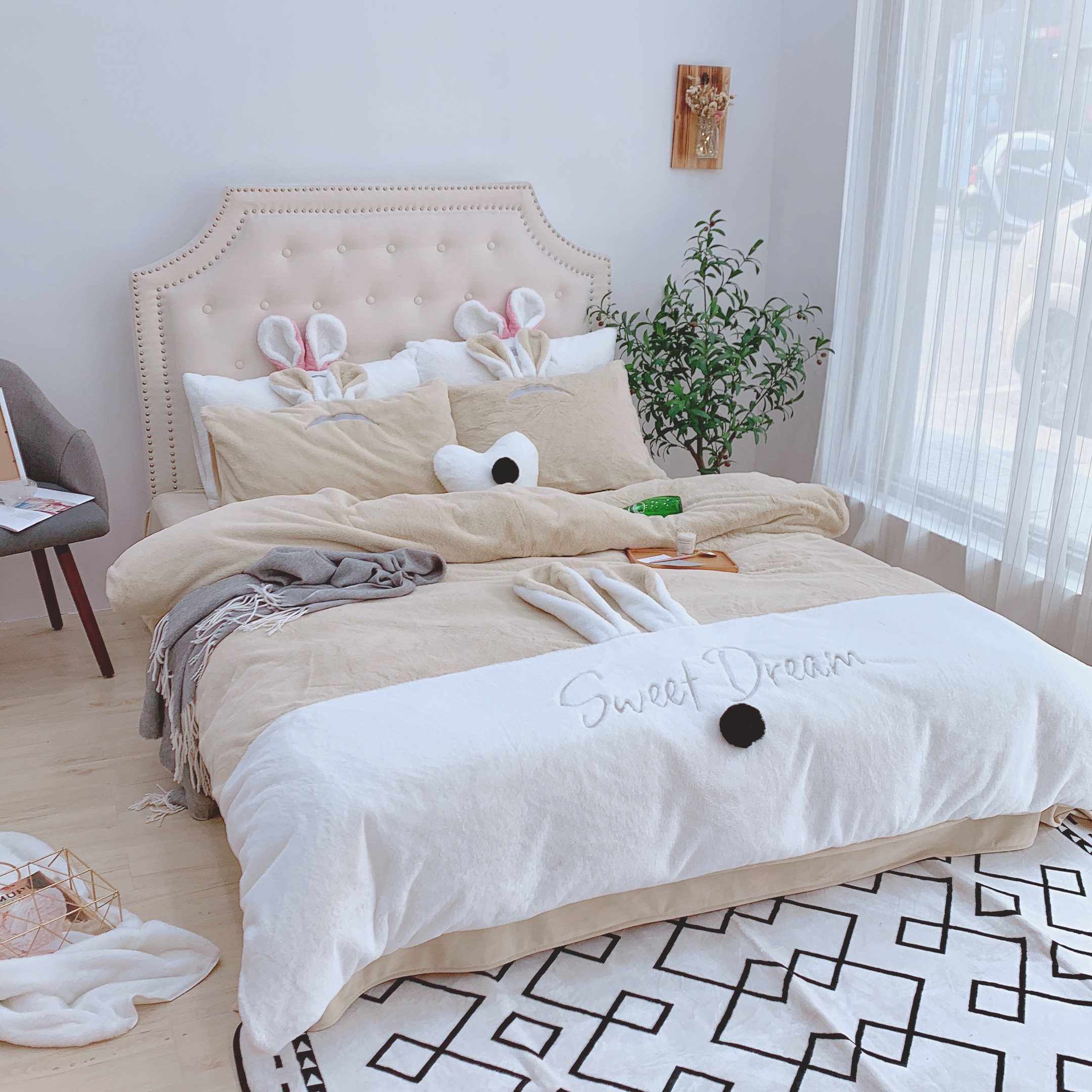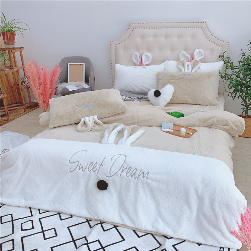漫调家纺 秋冬新品创意立体兔兔绒保暖四件套 浅卡其