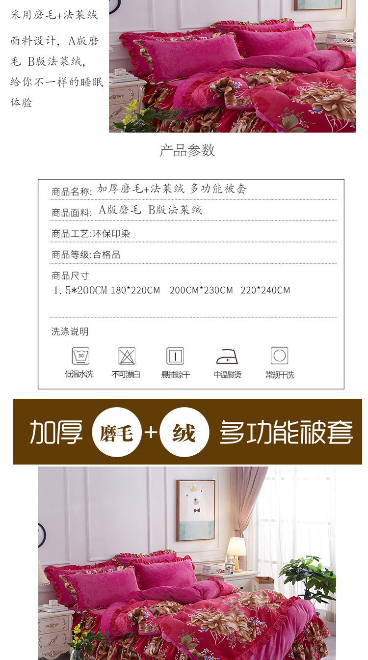 商品名称:铠畅 2019韩版法莱绒床裙单被套 金枝玉叶