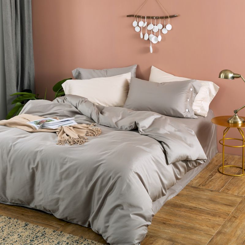 商品名称:涞澳家纺 2019新款60长绒棉平色简易四件套 冰灿银