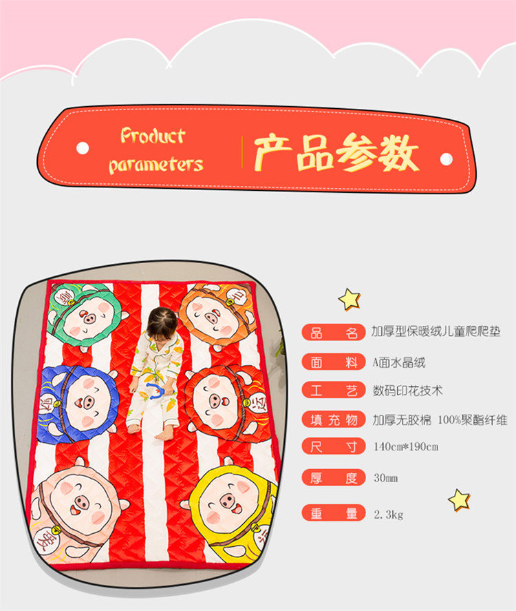 商品名称:BOSS 2019新款加厚型保暖绒儿童爬爬垫 猪猪顺利