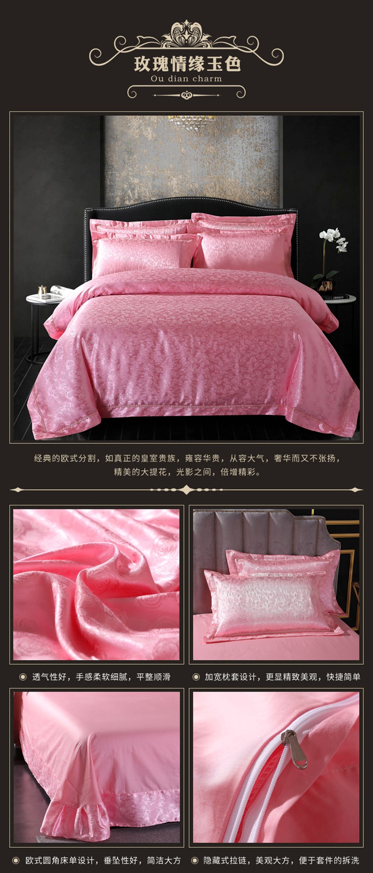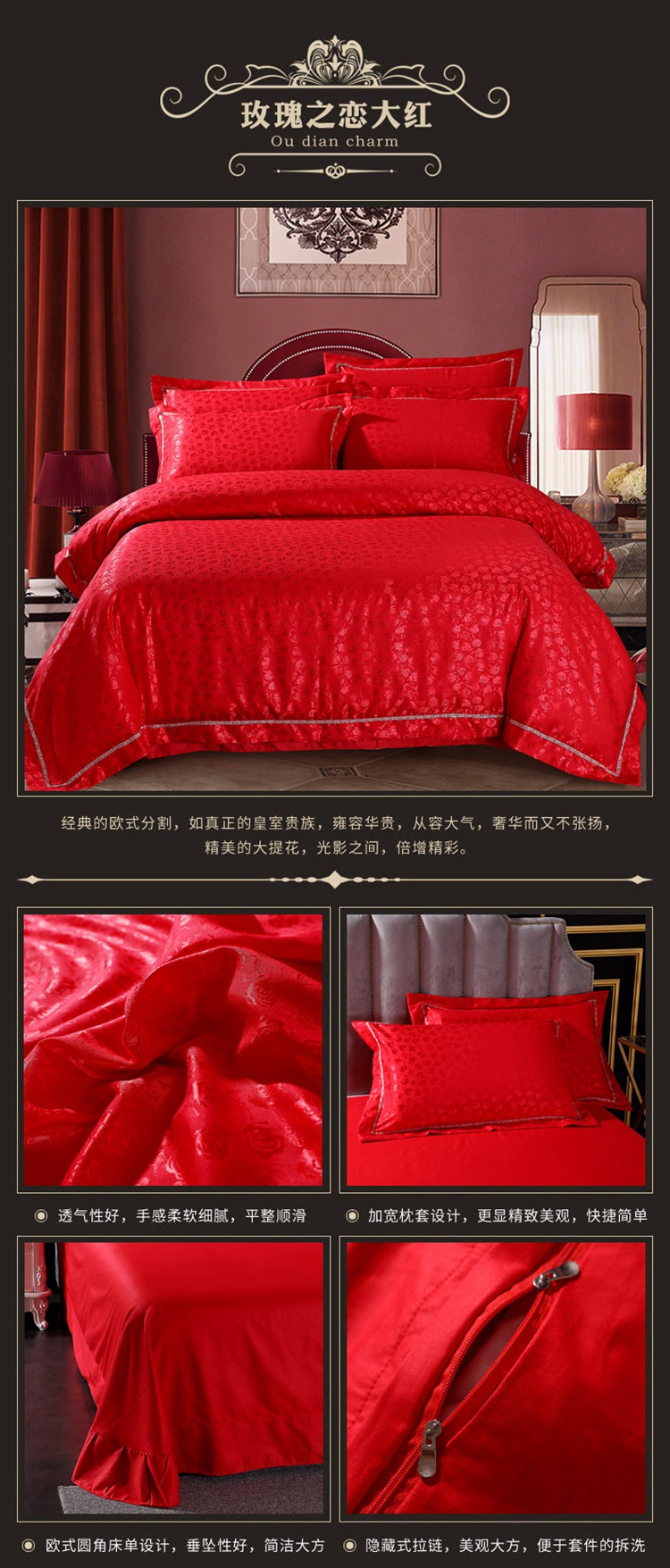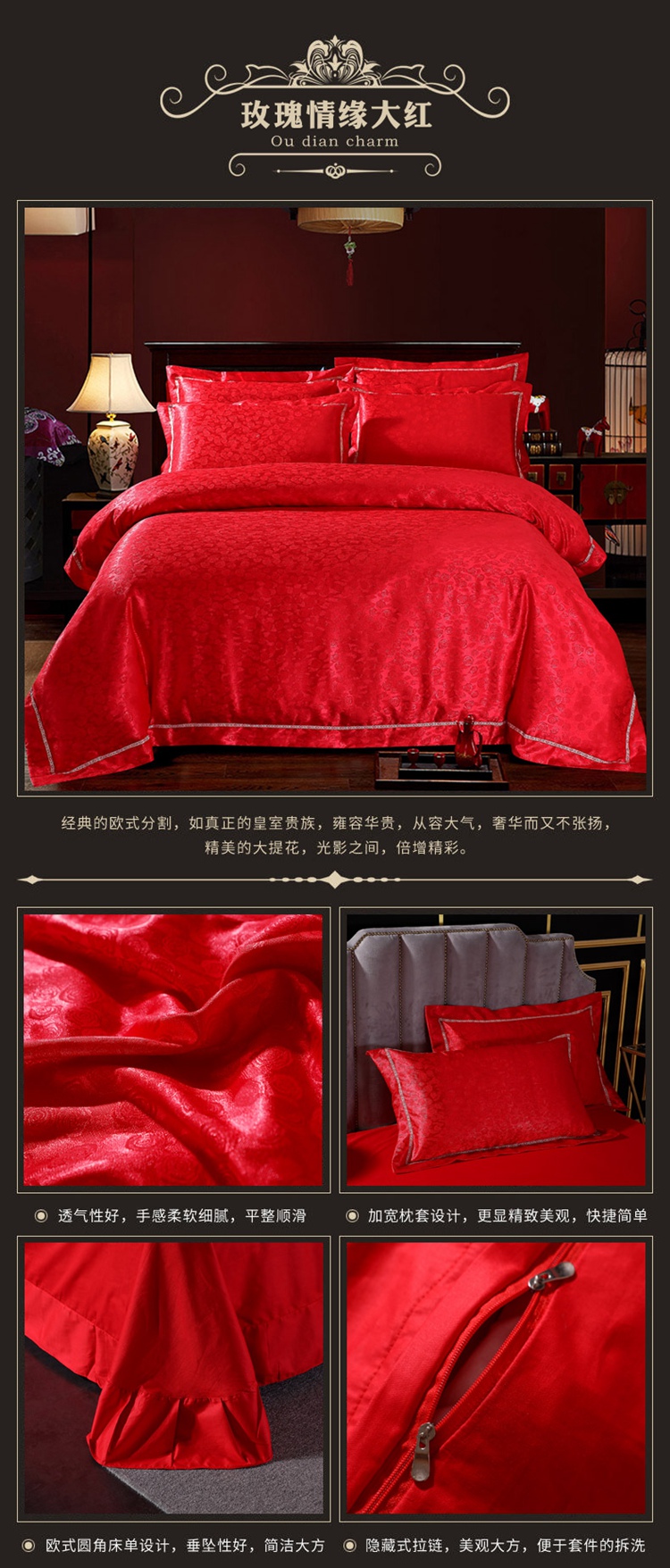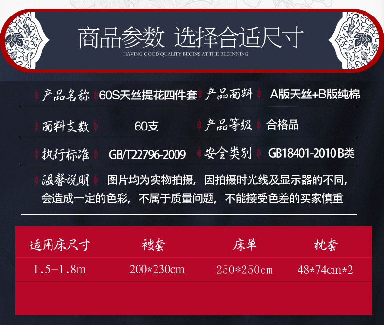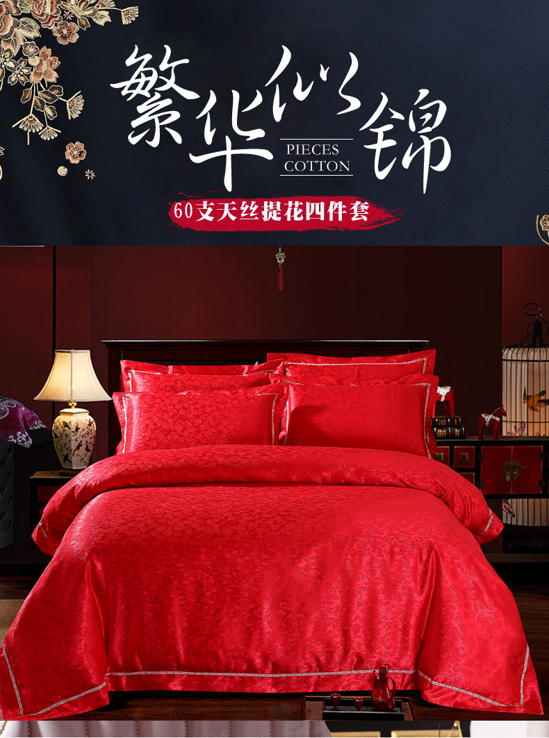 商品名称:总-2023新款60S天丝提花四件套 支全棉纯棉贡缎提花婚庆