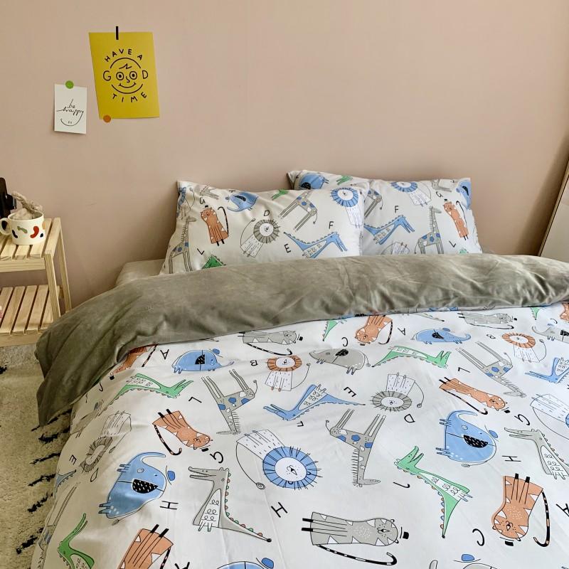 (总)时年 2021新款40S全棉印花四件套小可爱系列,贝尔先生,彩虹云朵,花西子,欢乐字母,金刚,奇思妙想,气球皮皮,树林生活