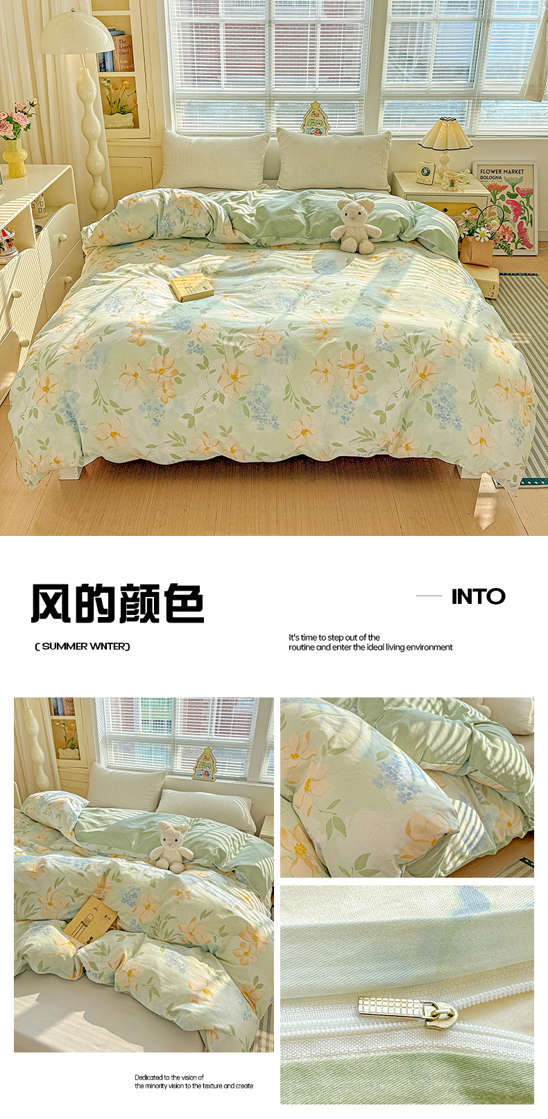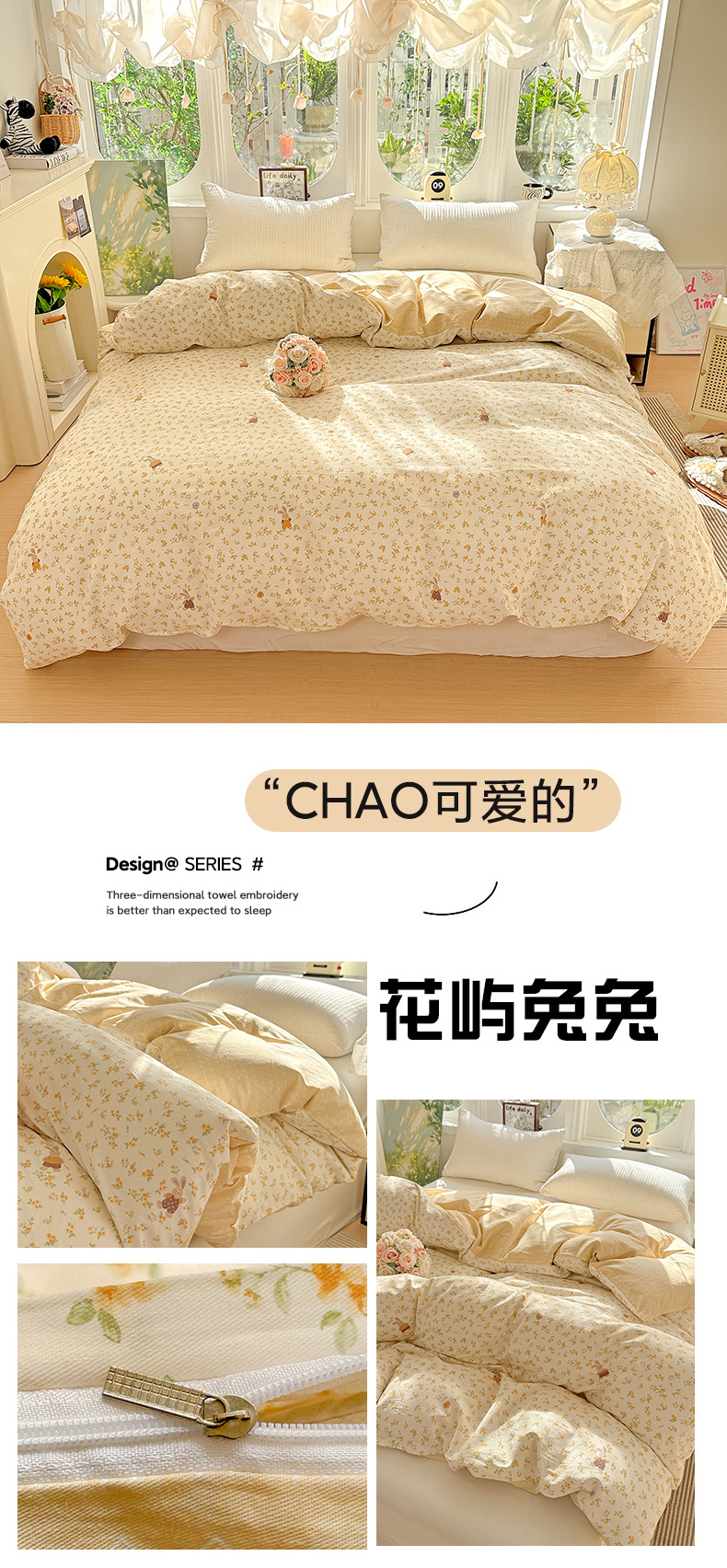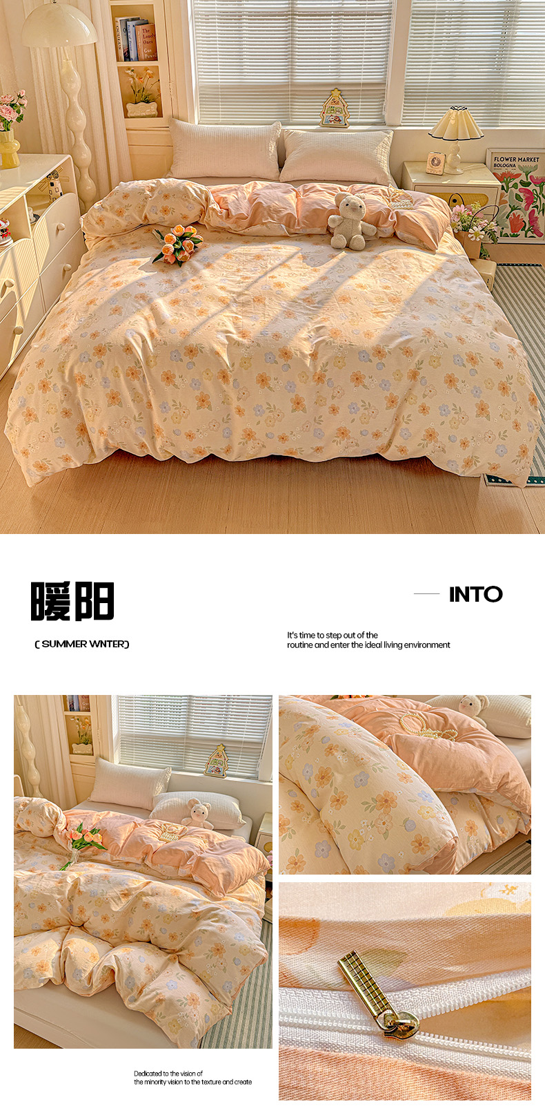 (总)卡普2025新款全棉小清新印花直播热款四件套--暖阳,暖阳