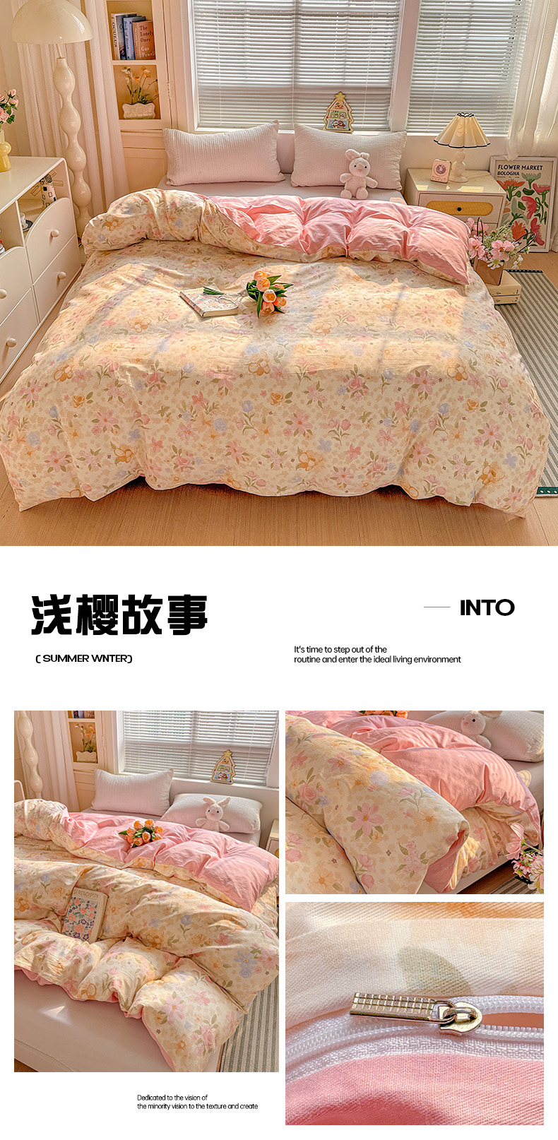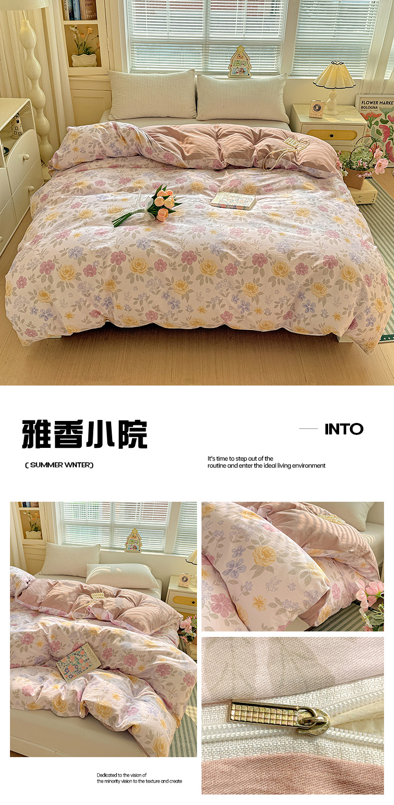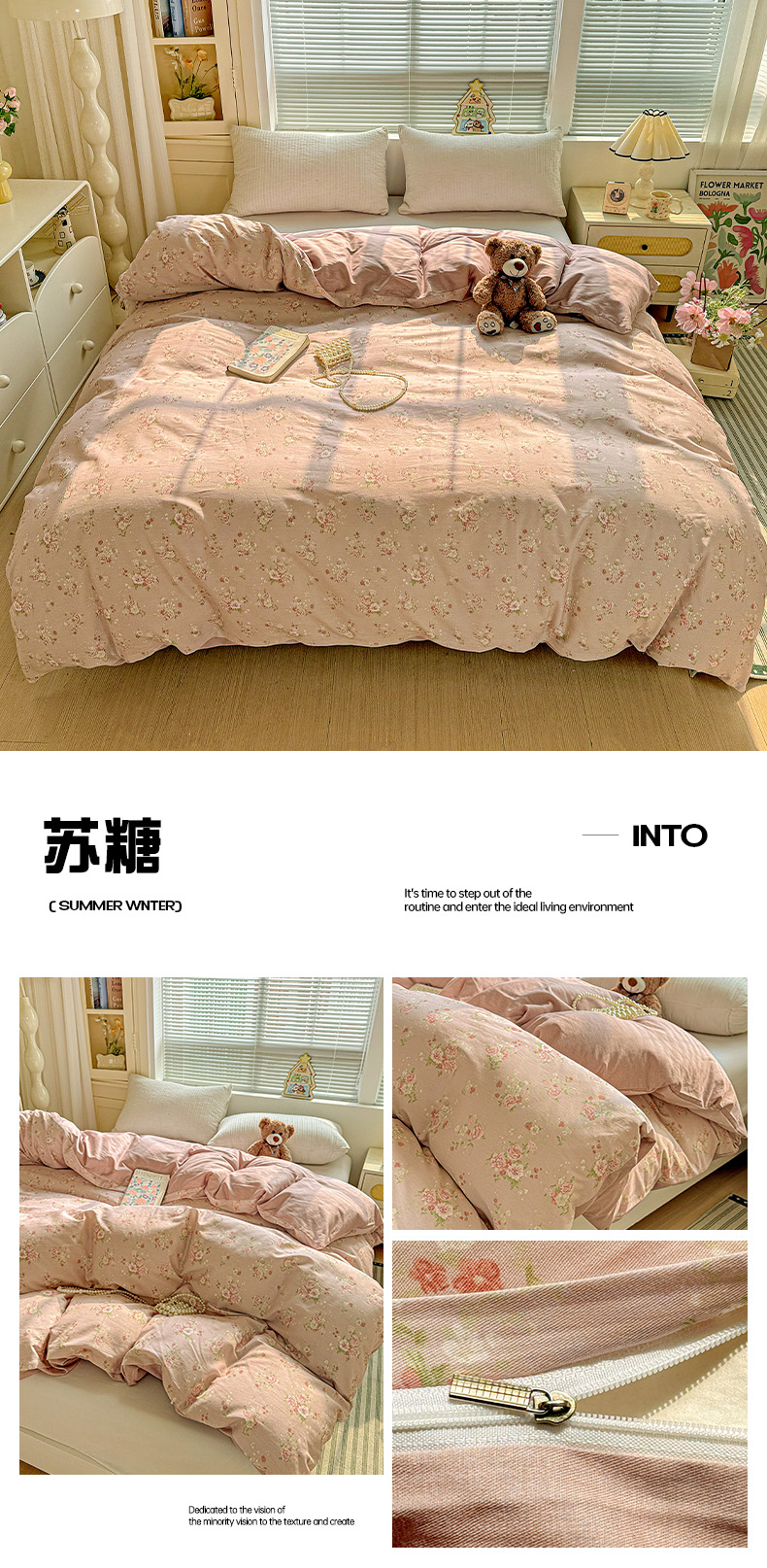 (总)卡普2025新款全棉小清新印花直播热款四件套--暖阳,暖阳