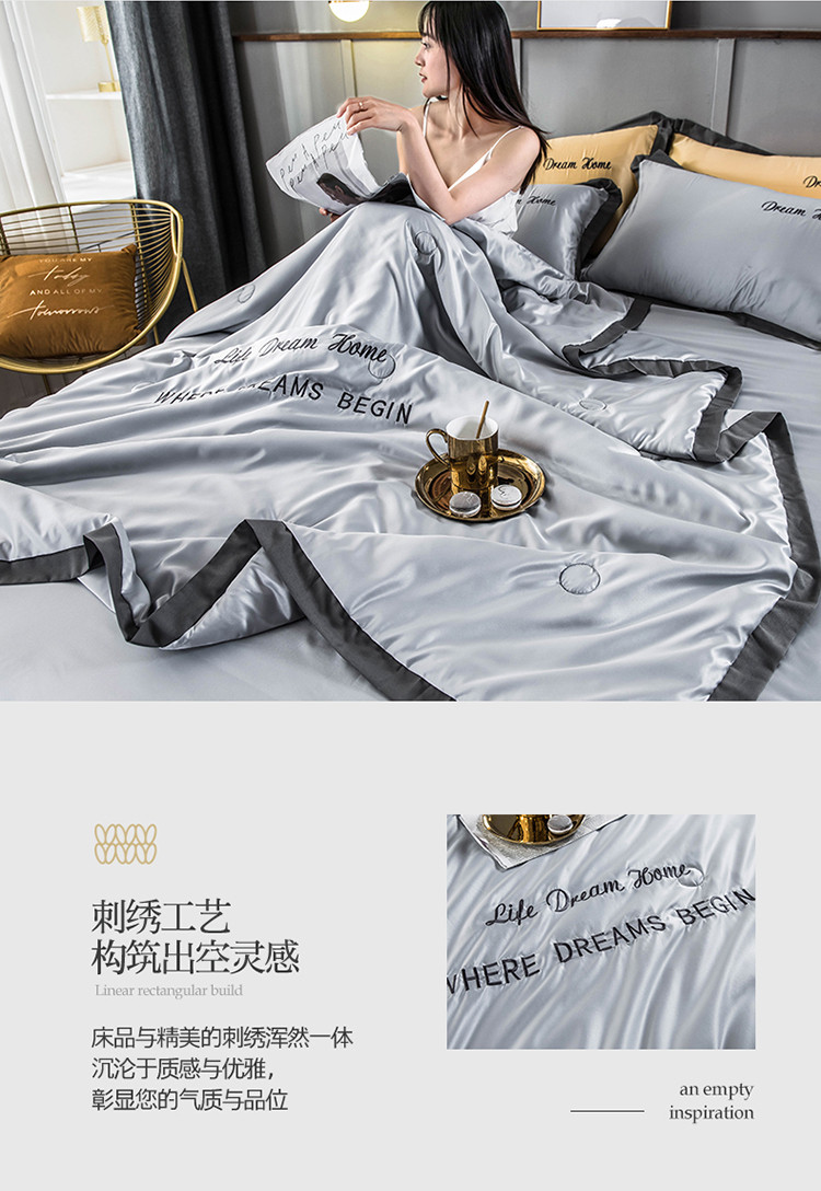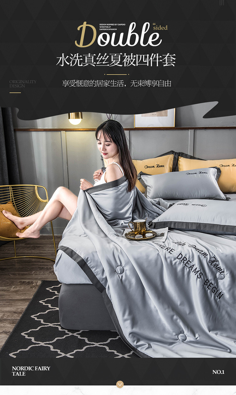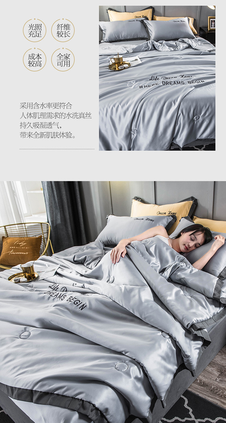 骏腾 2022新款水洗真丝夏被四件套 简爱-银灰