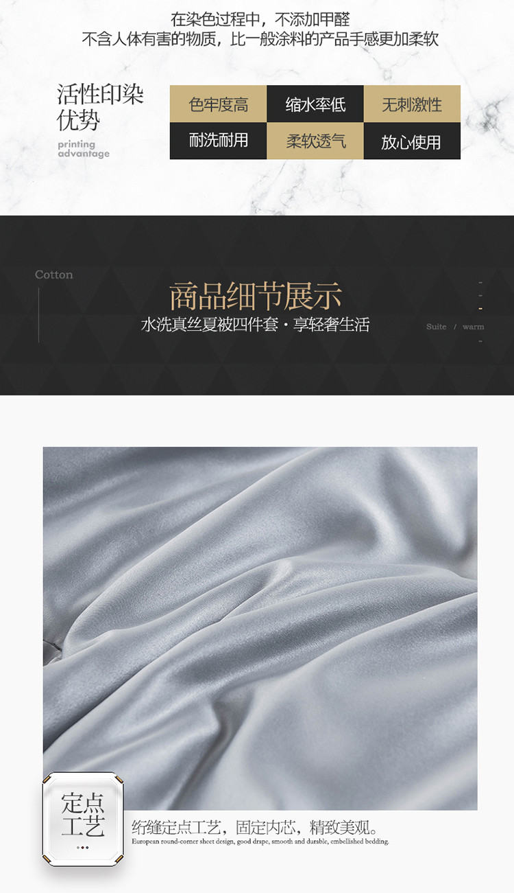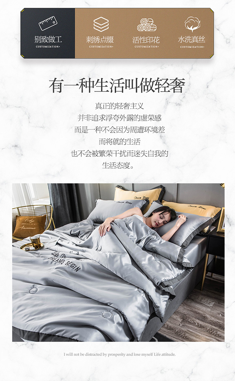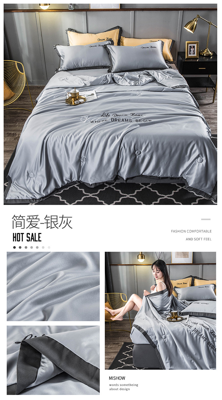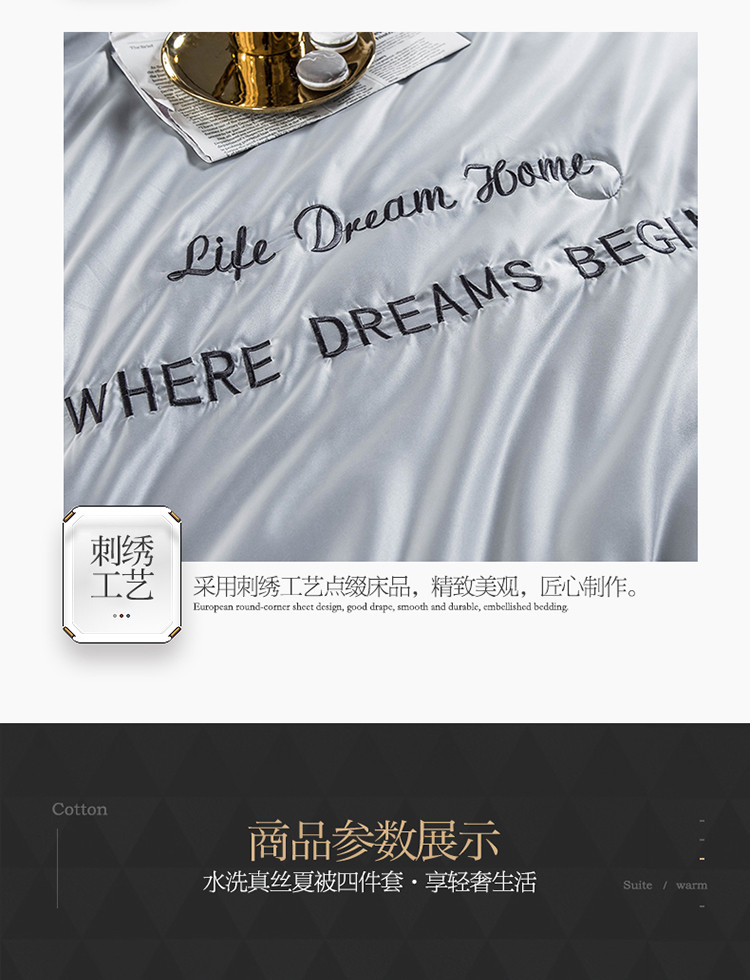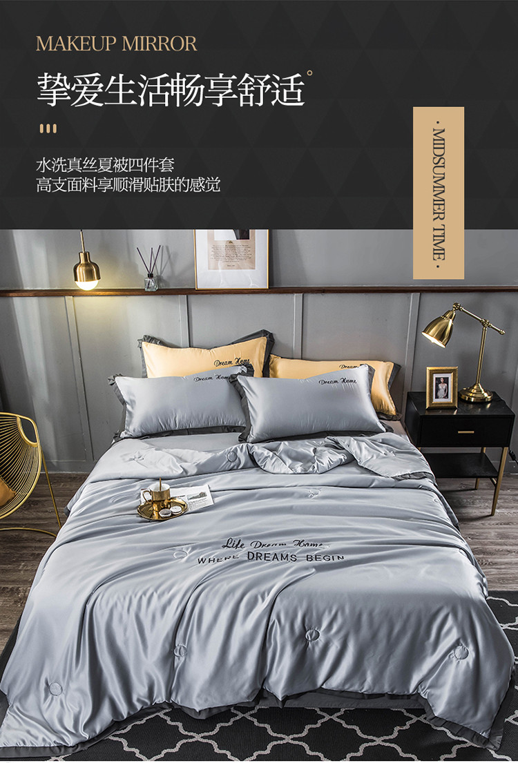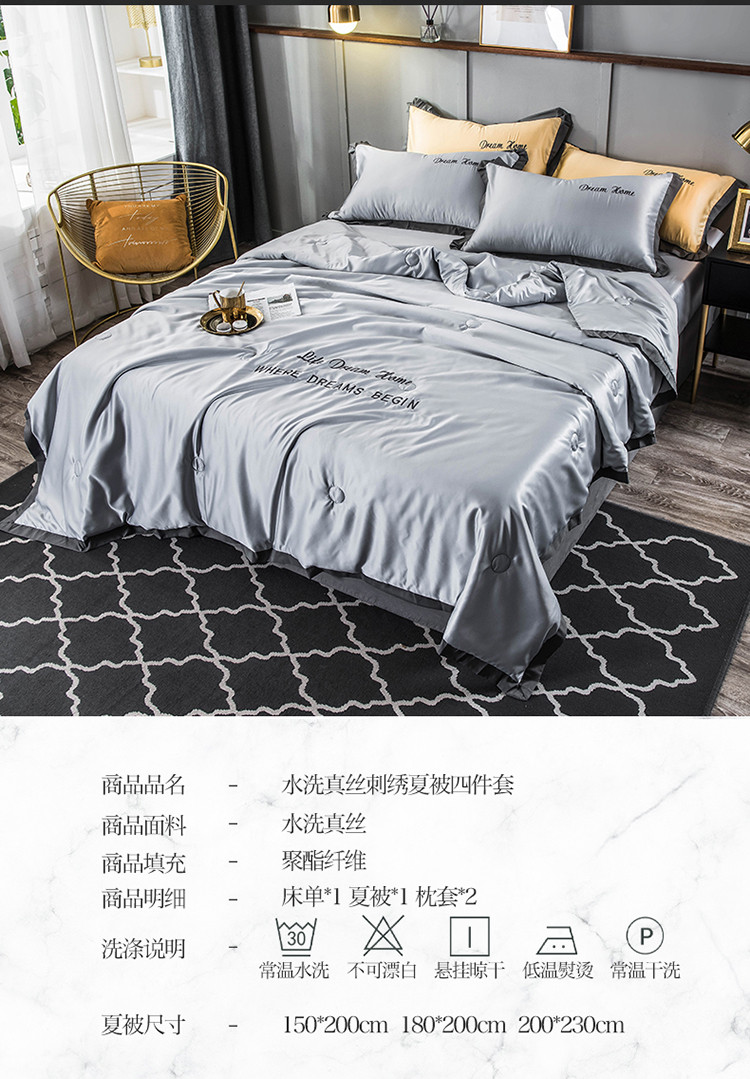 商品名称:骏腾 2022新款水洗真丝夏被四件套 简爱-银灰