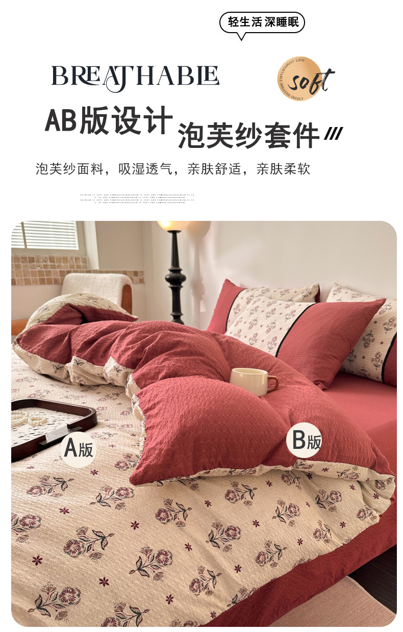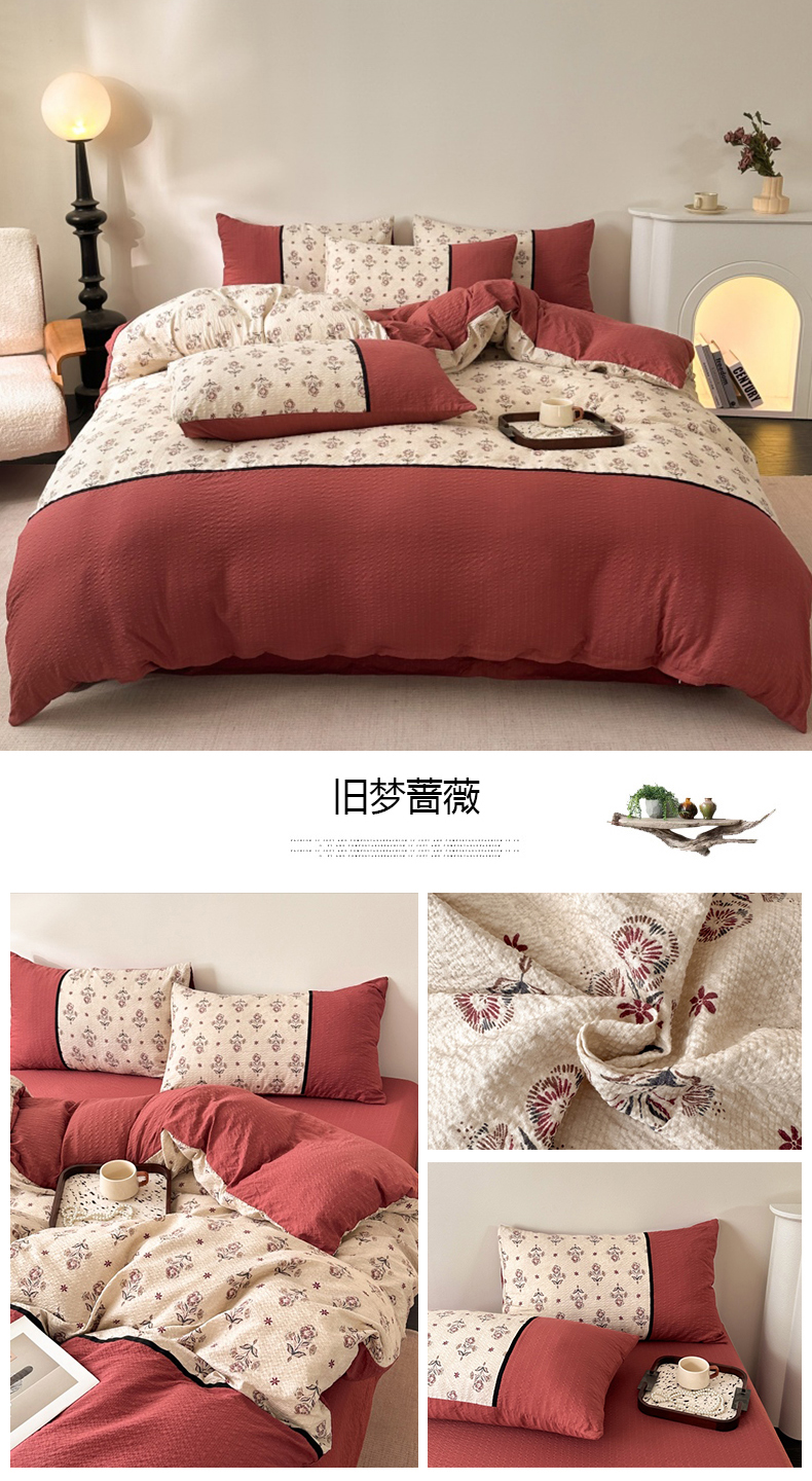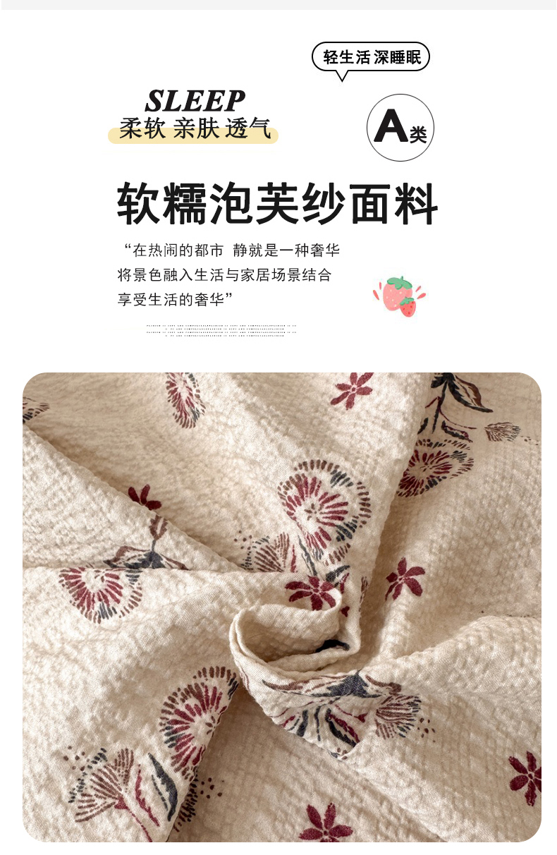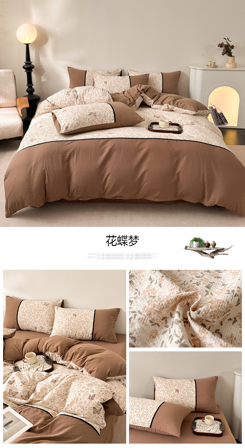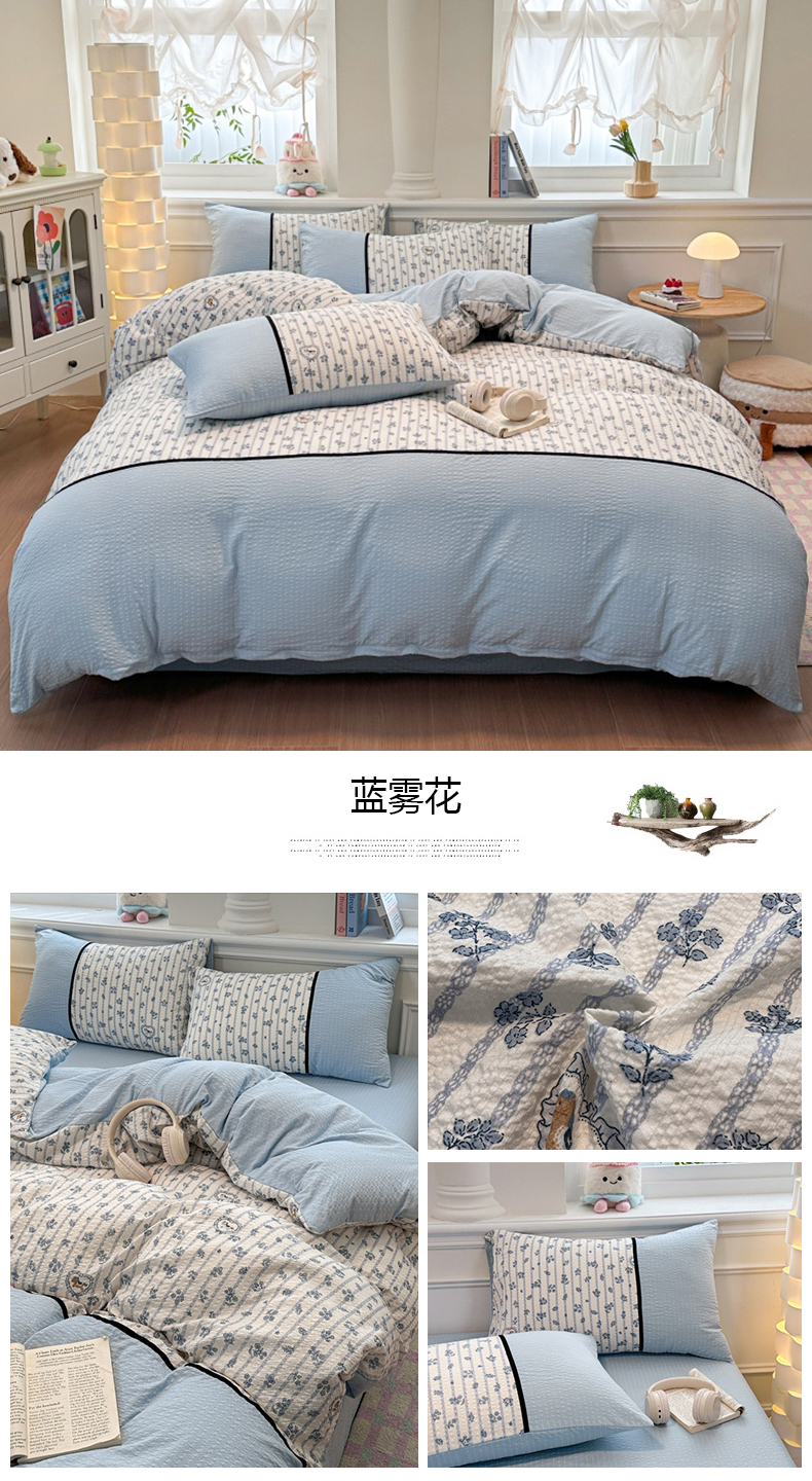 商品名称:(总)诺梵家纺 2026春夏新品高克重拼接泡芙纱泡泡皱皱纱四件套