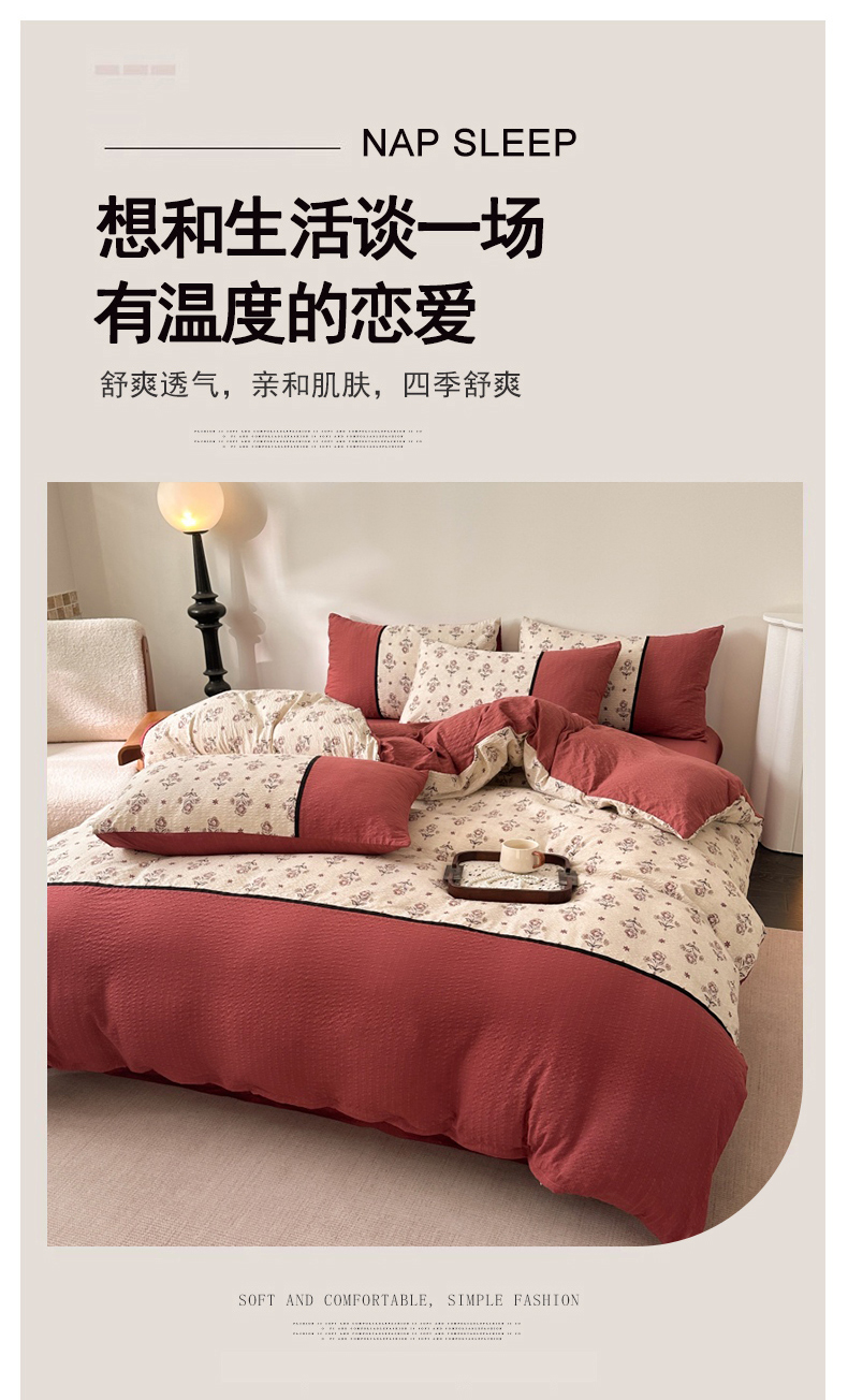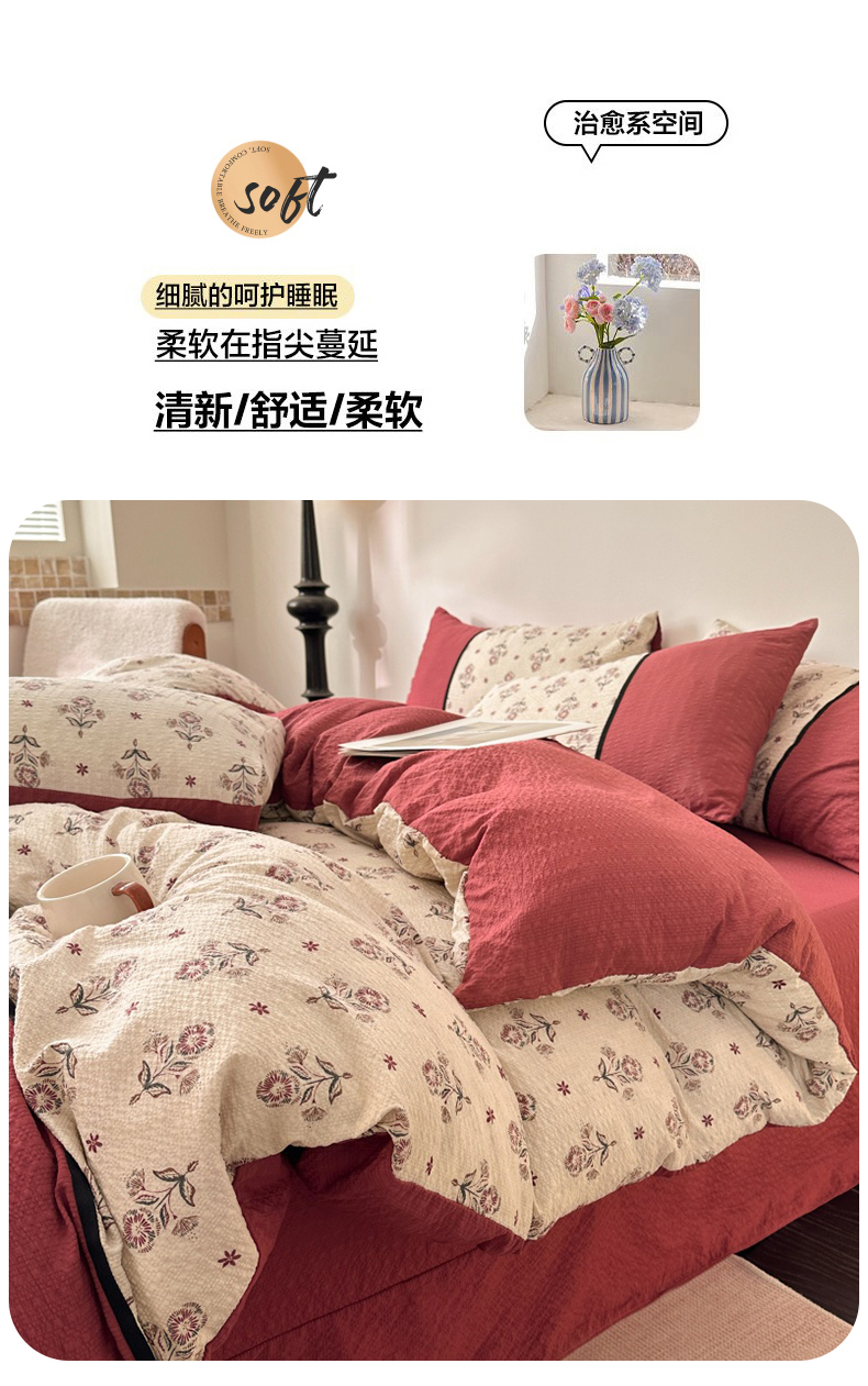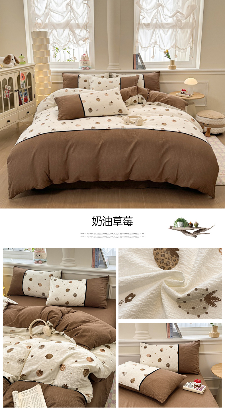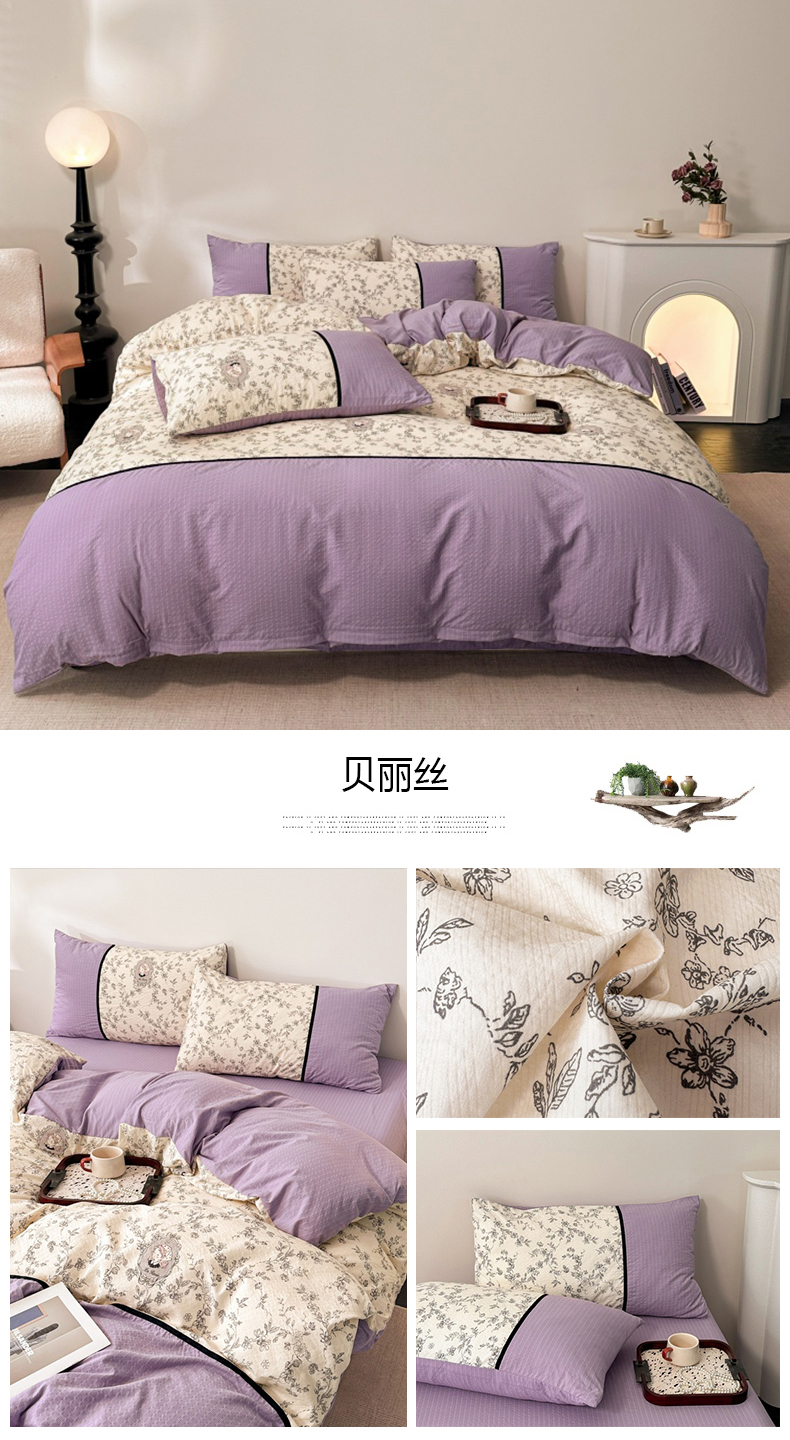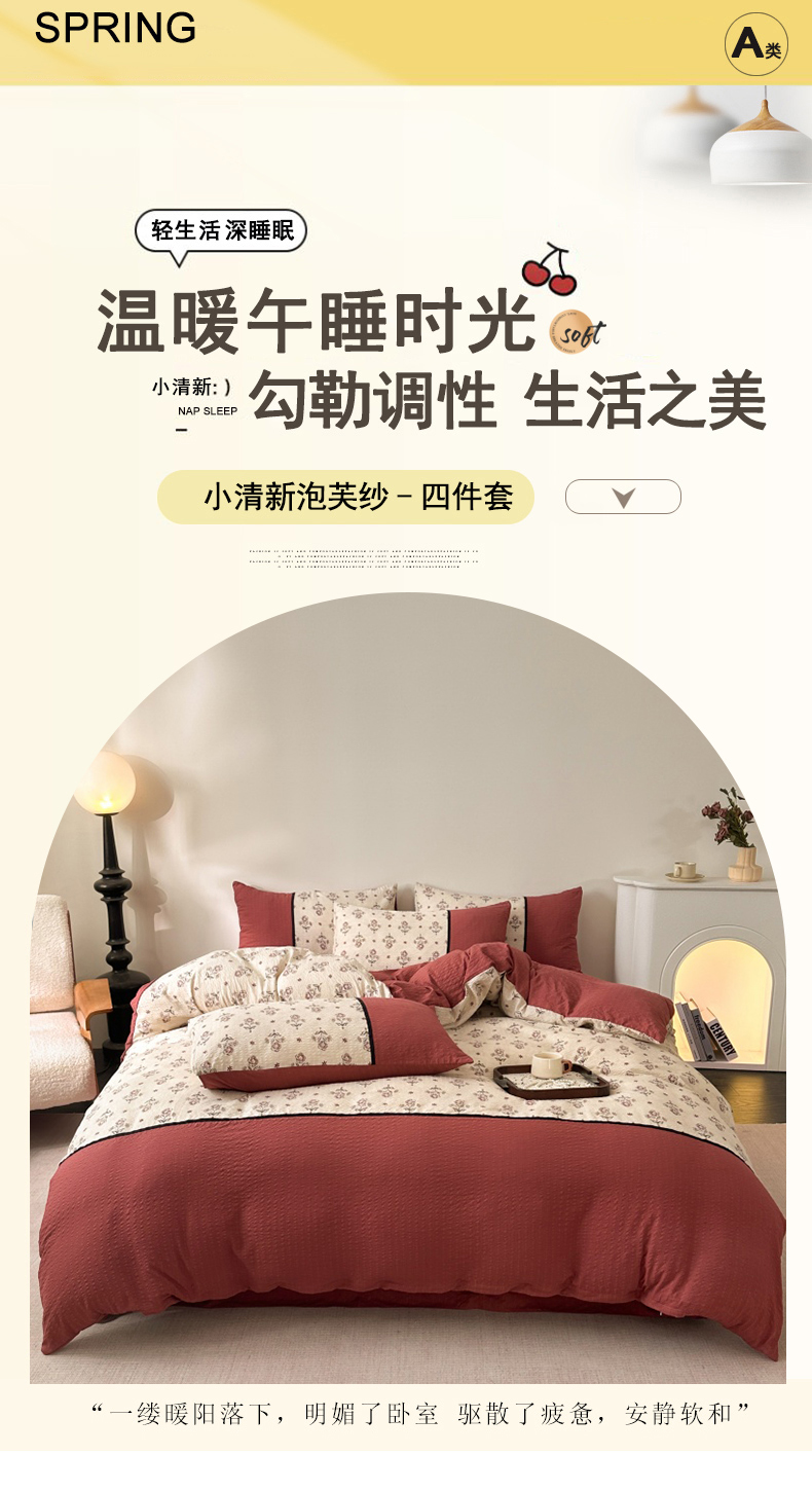商品名称:(总)诺梵家纺 2026春夏新品高克重拼接泡芙纱泡泡皱皱纱四件套