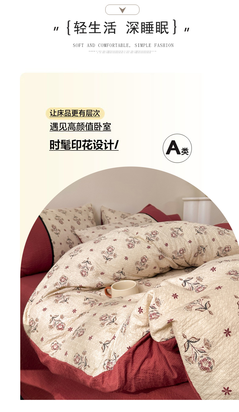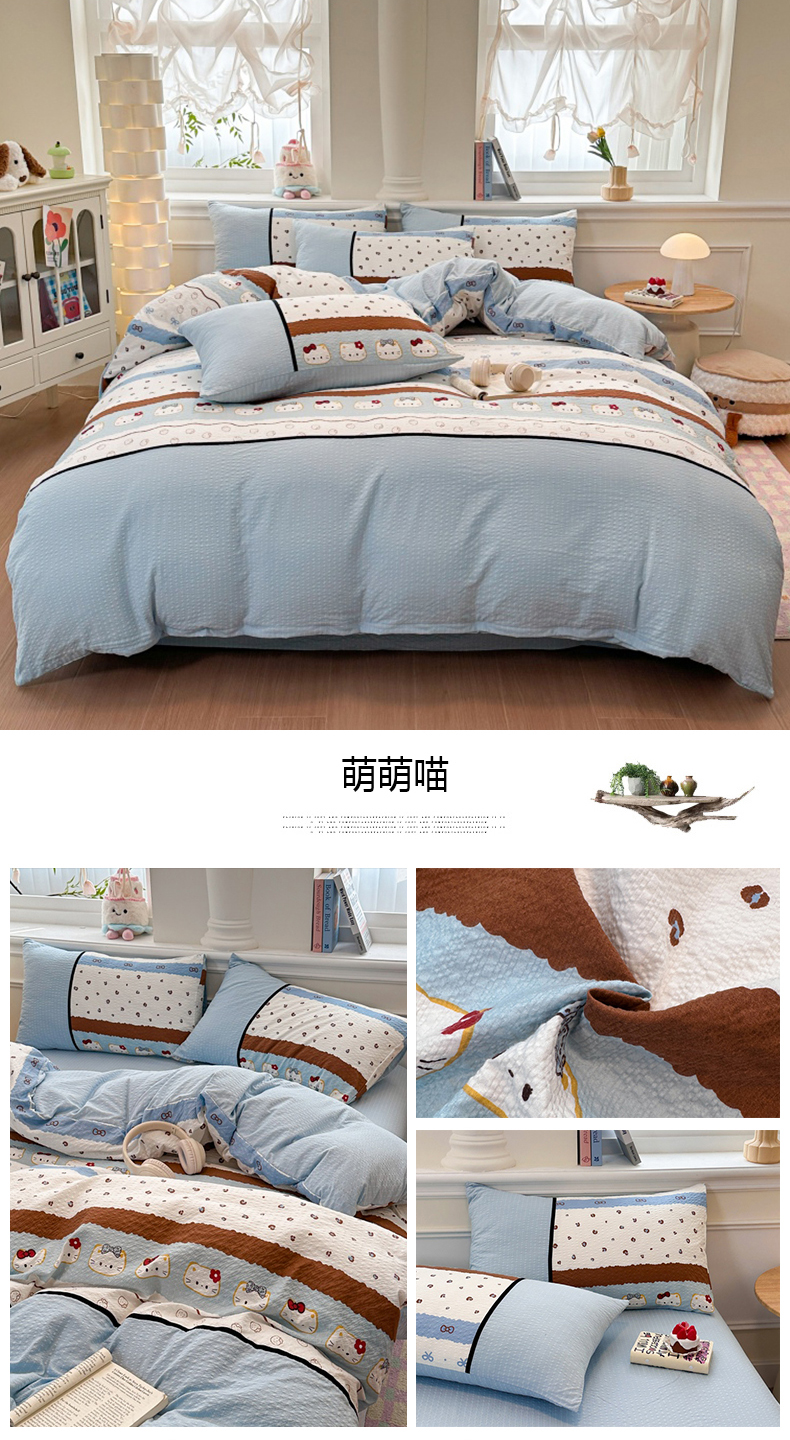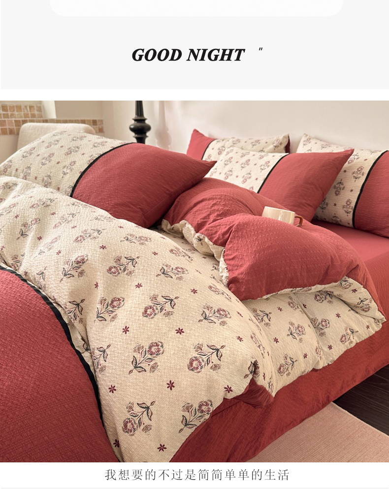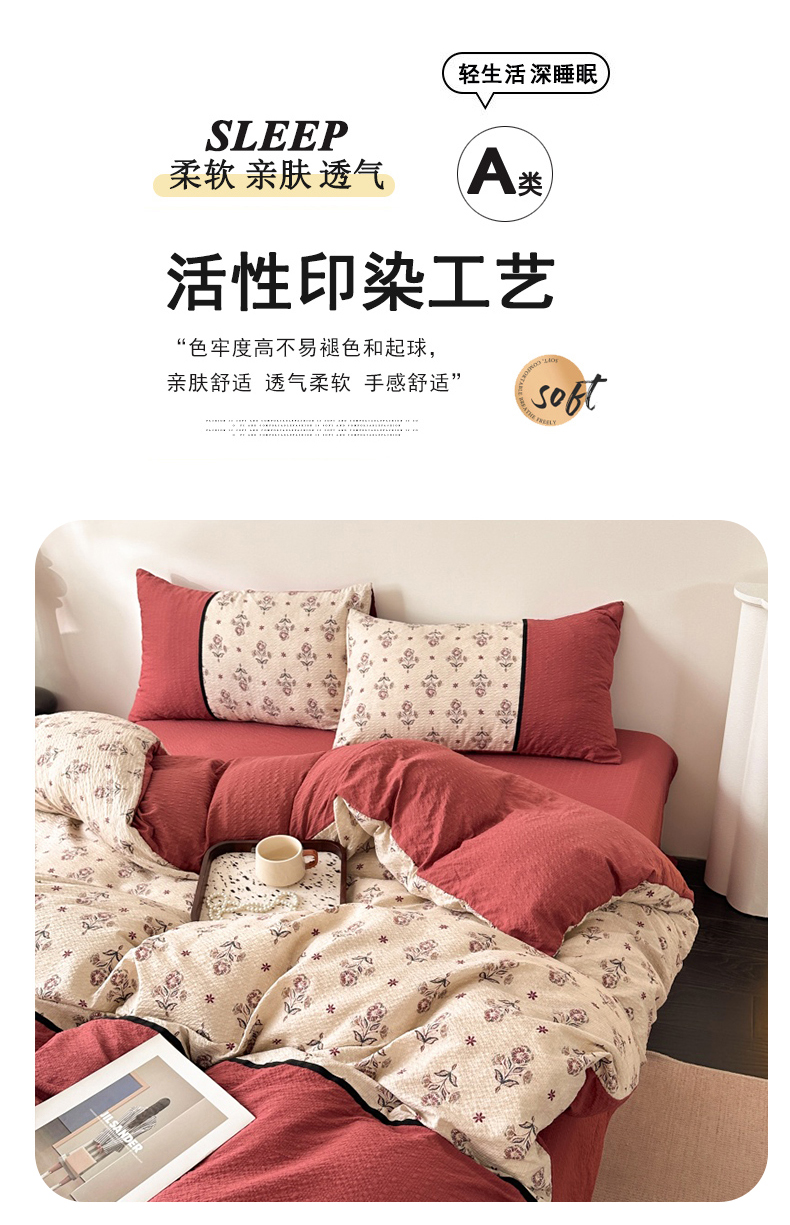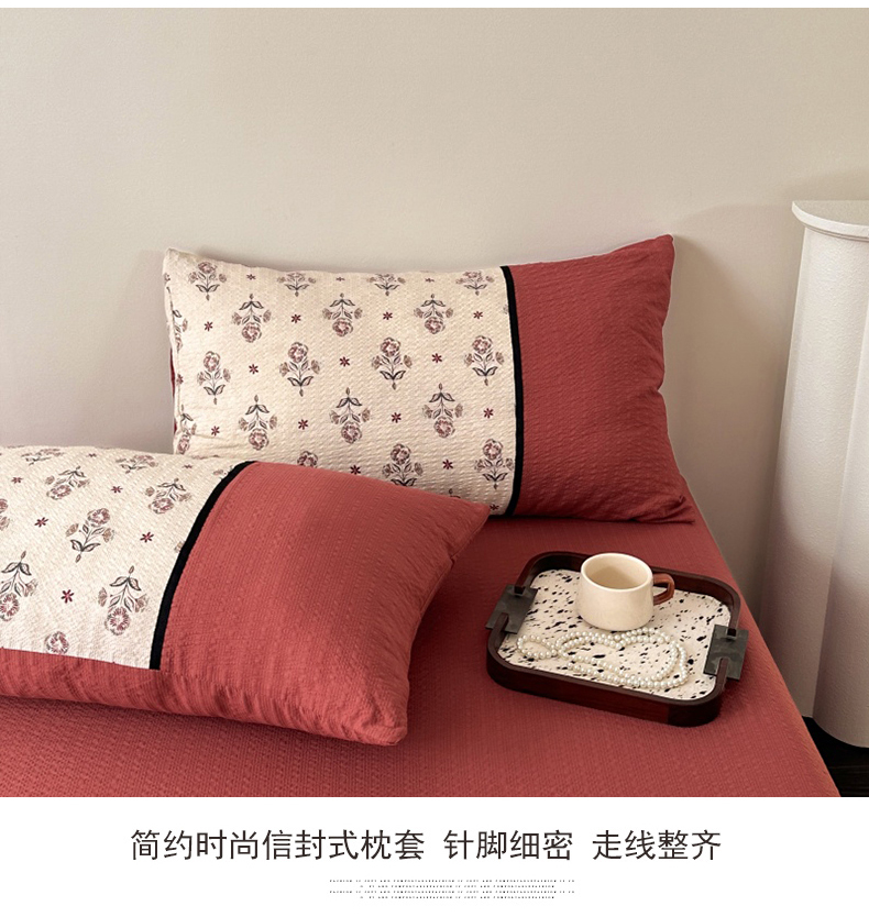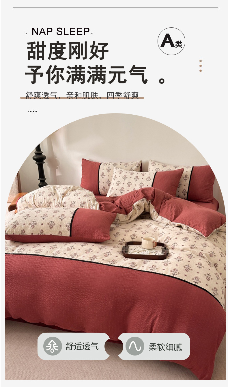 商品名称:(总)诺梵家纺 2026春夏新品高克重拼接泡芙纱泡泡皱皱纱四件套