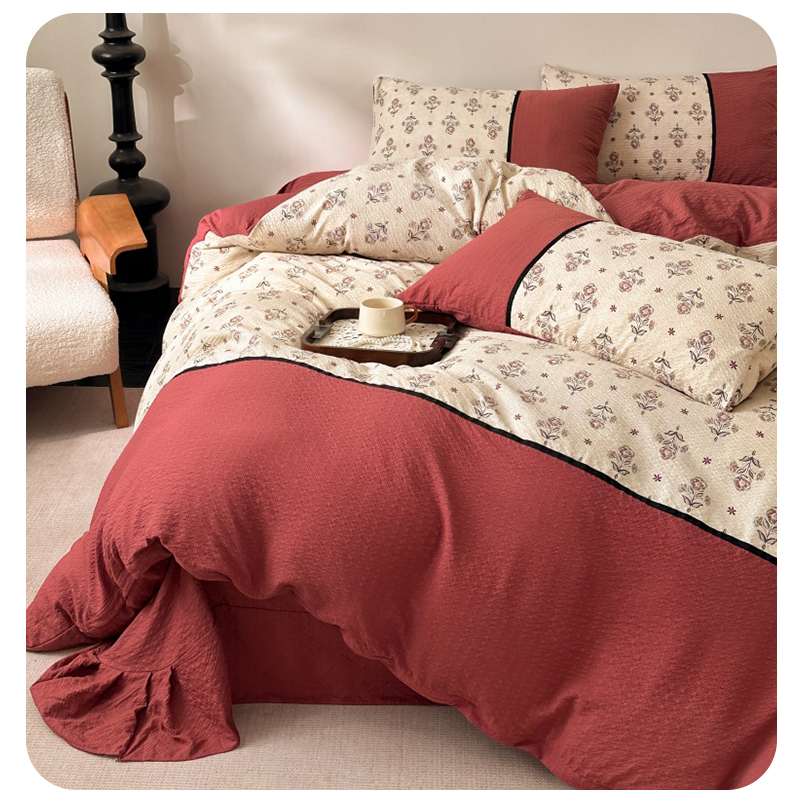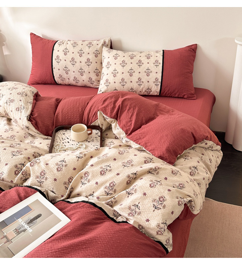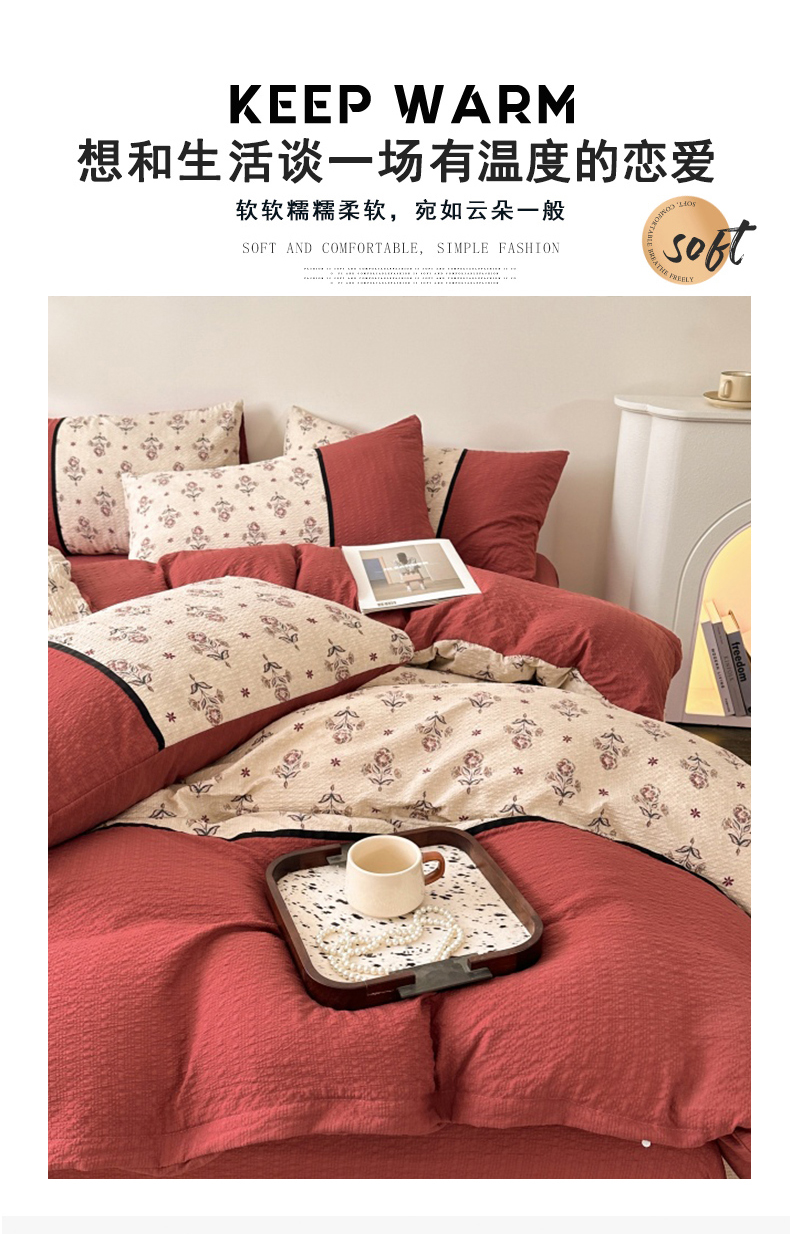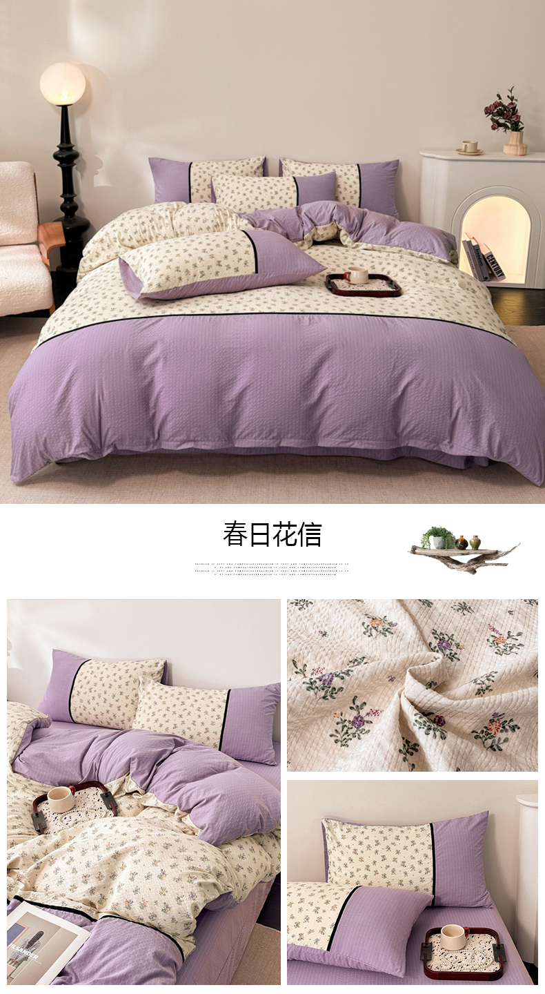 (总)诺梵家纺 2026春夏新品高克重拼接泡芙纱泡泡皱皱纱四件套