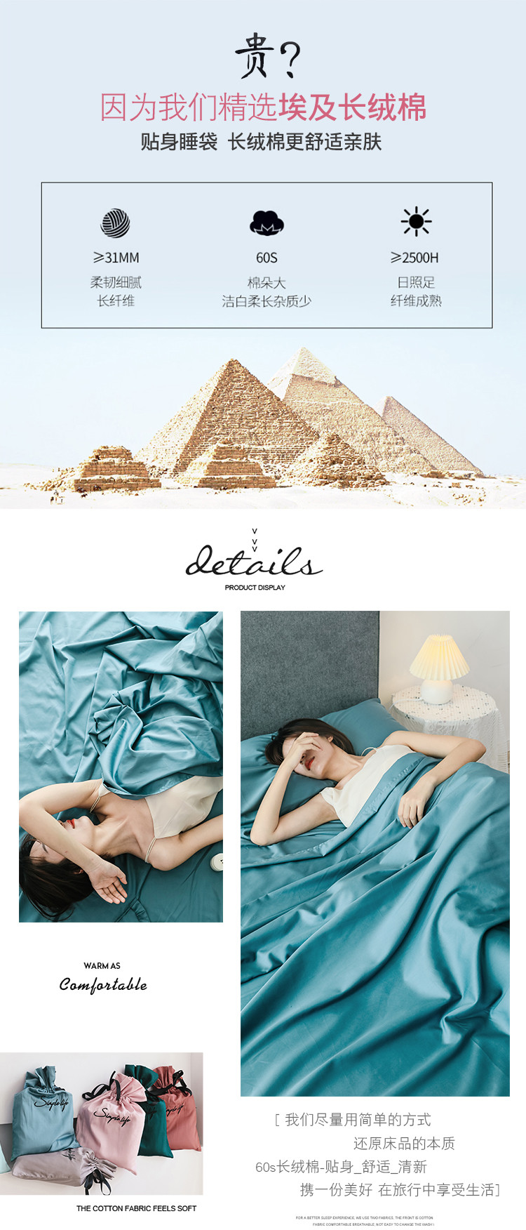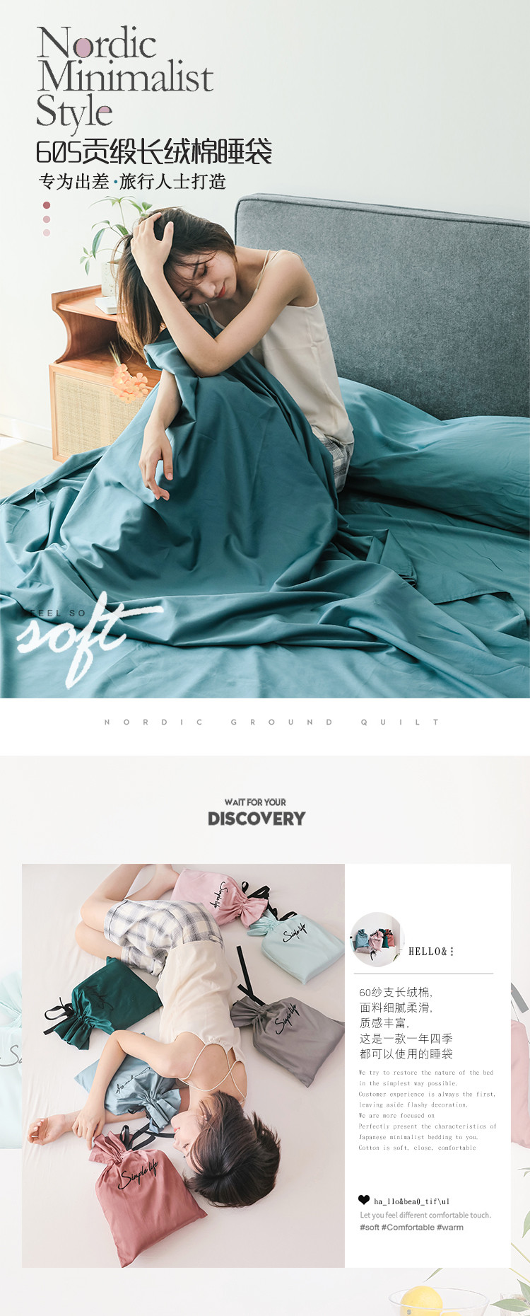商品名称:西西家居 2023新款60长绒棉纯棉酒店旅游隔脏睡袋 灰湖绿
