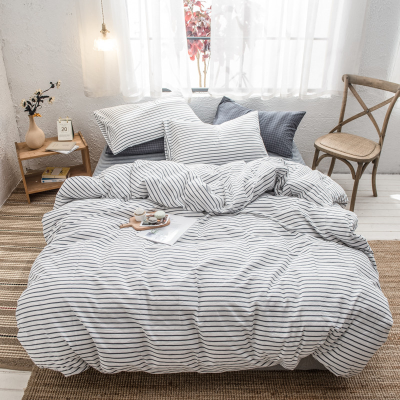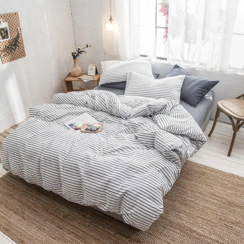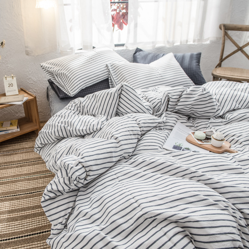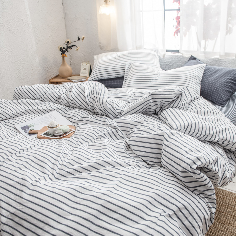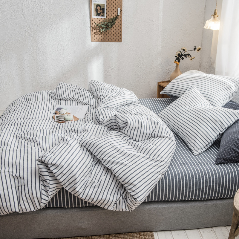 商品名称:佳梦达 2020新款全色织全棉水洗双拼单被套 白灰条
