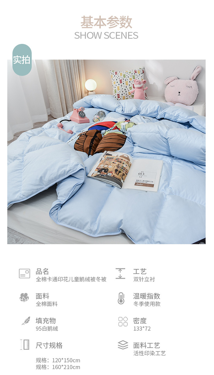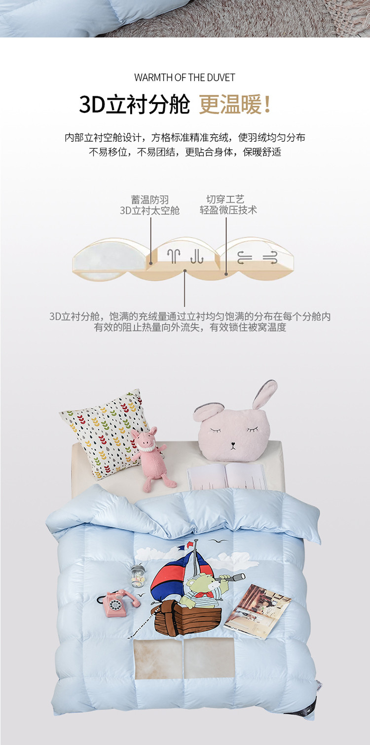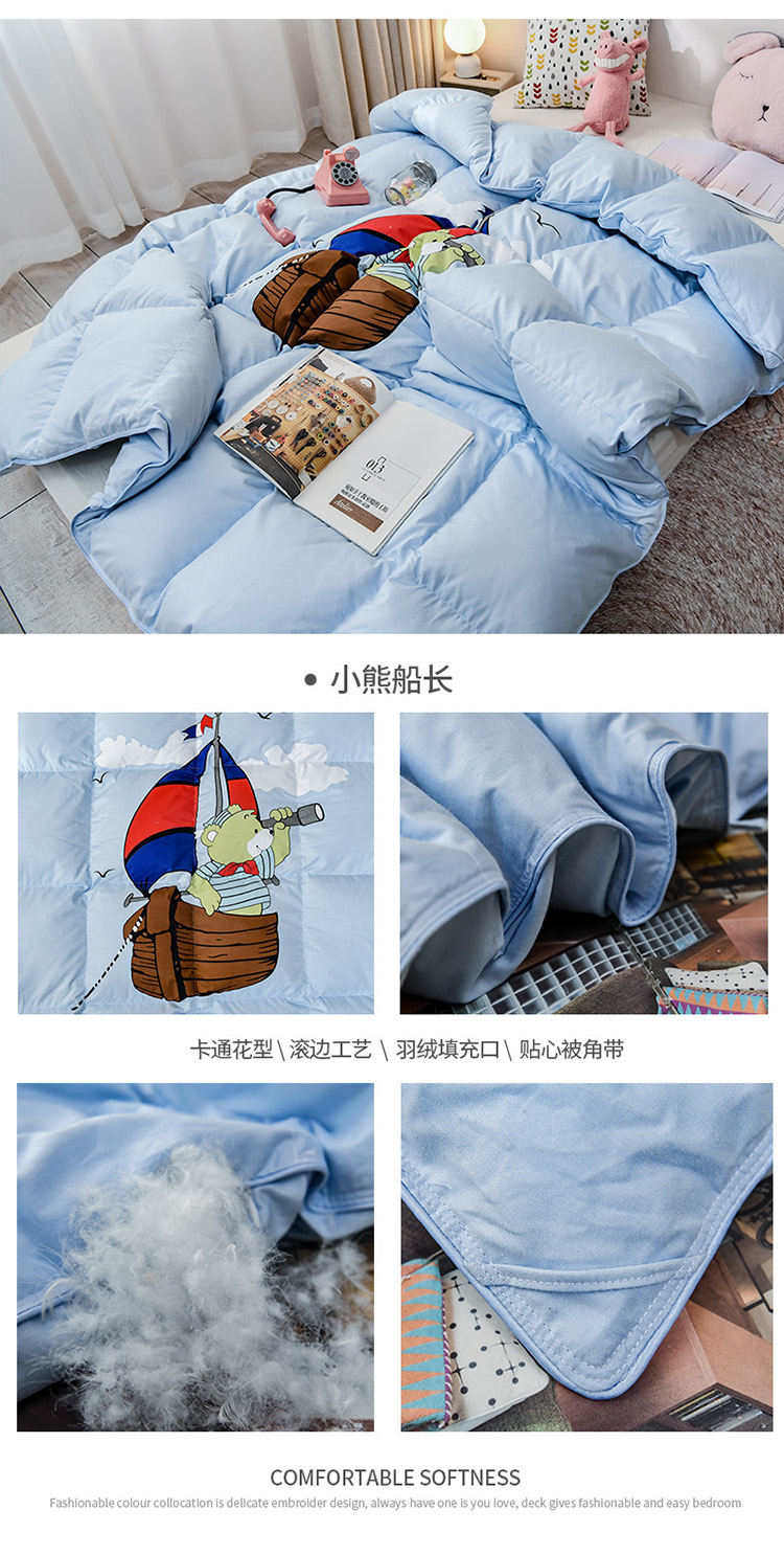 商品名称:绒研羽绒2025全棉卡通印花儿童鹅绒羽绒冬被 小熊船长