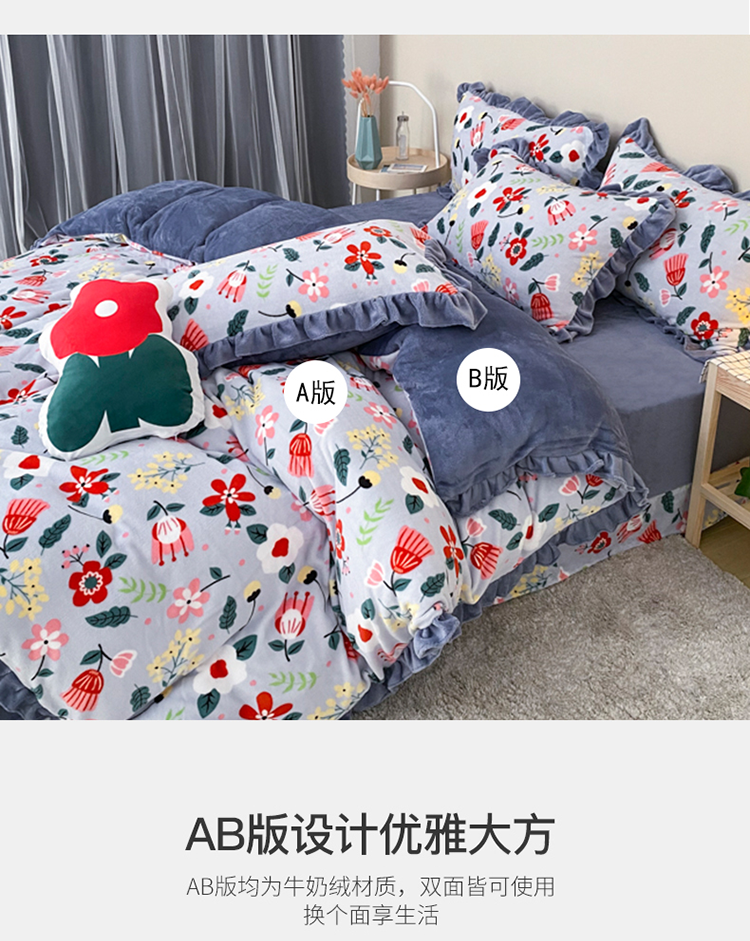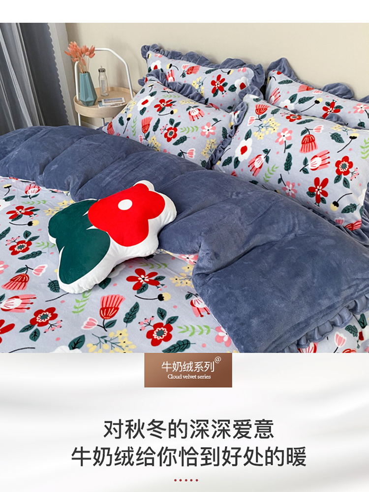妖妖家纺 2020新款花边牛奶绒四件套 唯一