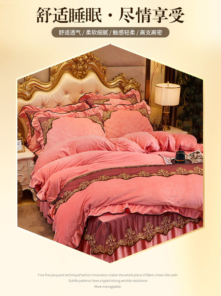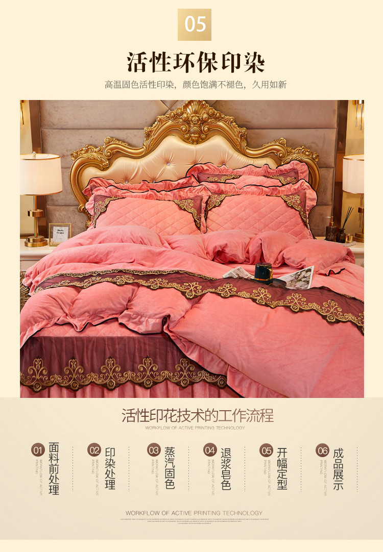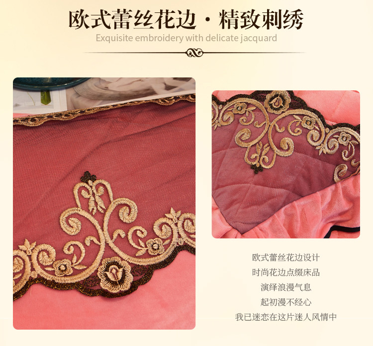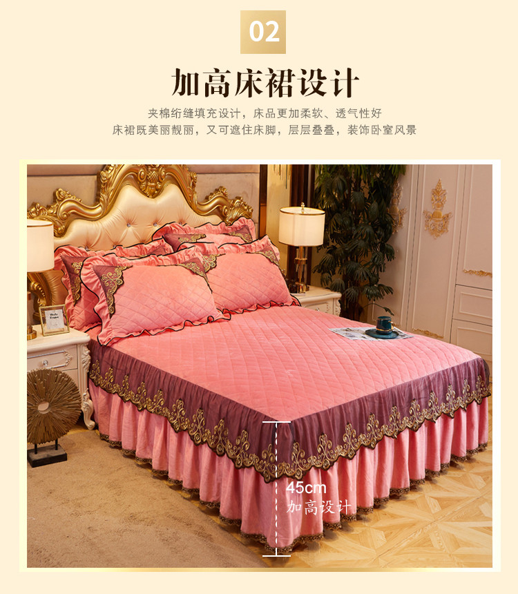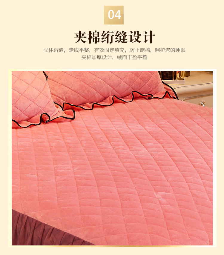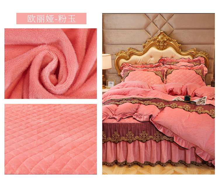 (总)星尚家纺 2024新款加厚保暖全消光牛奶绒夹棉床裙四件套-玫瑰之恋,粉玉,寐紫,浅蓝,水绿