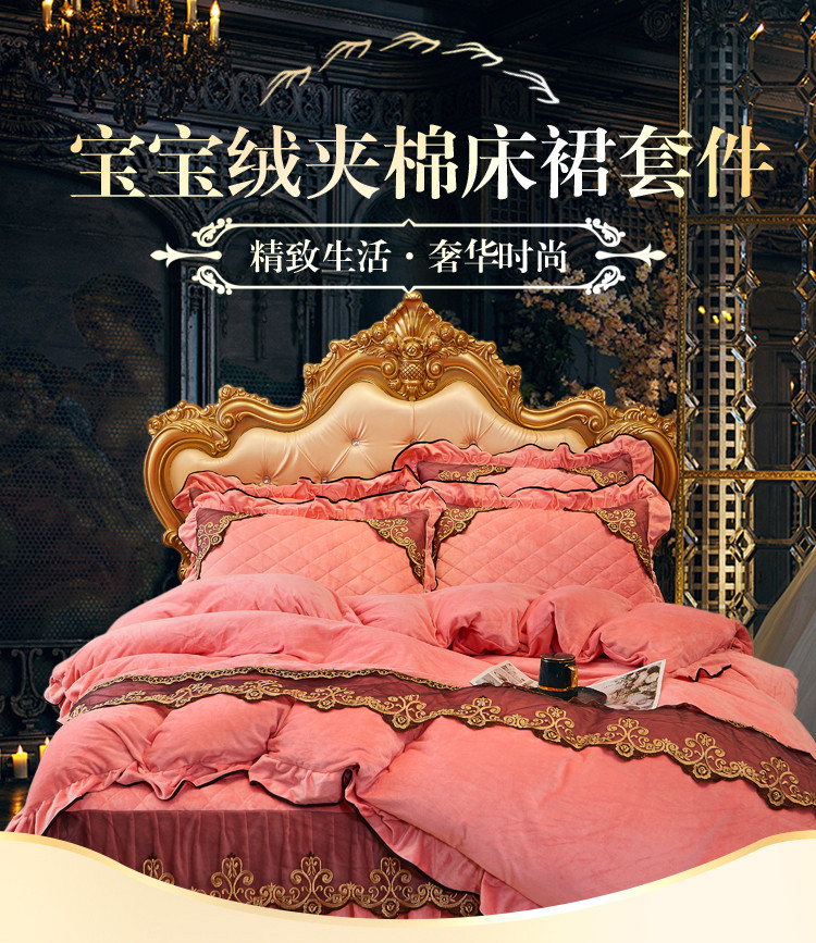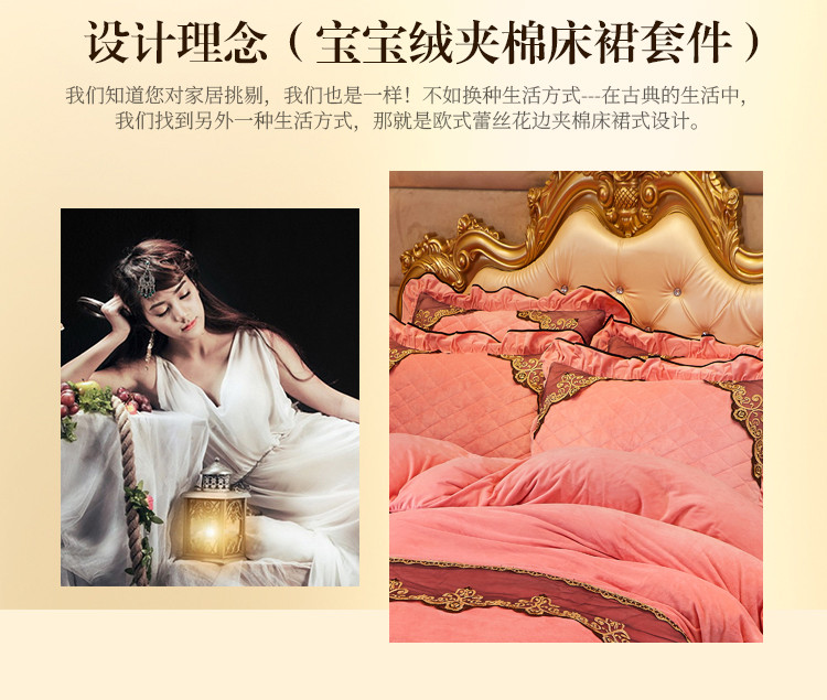 商品名称:星尚2020宝宝绒夹棉床裙款四件套水晶绒法莱绒婴儿绒 粉玉