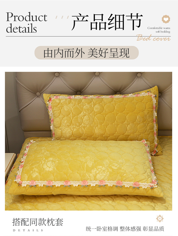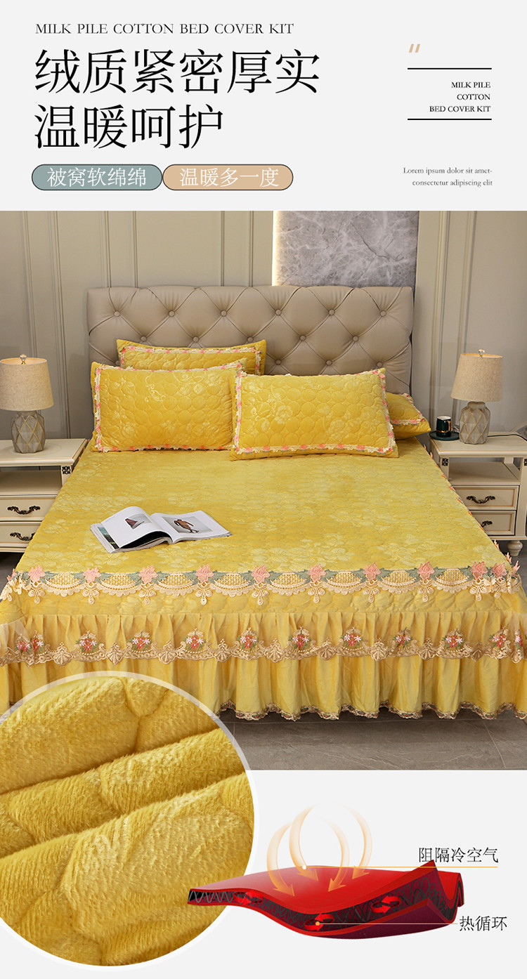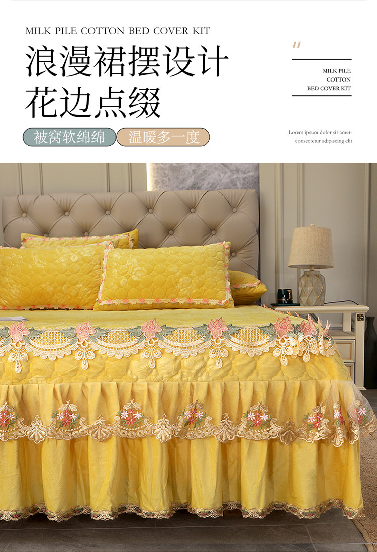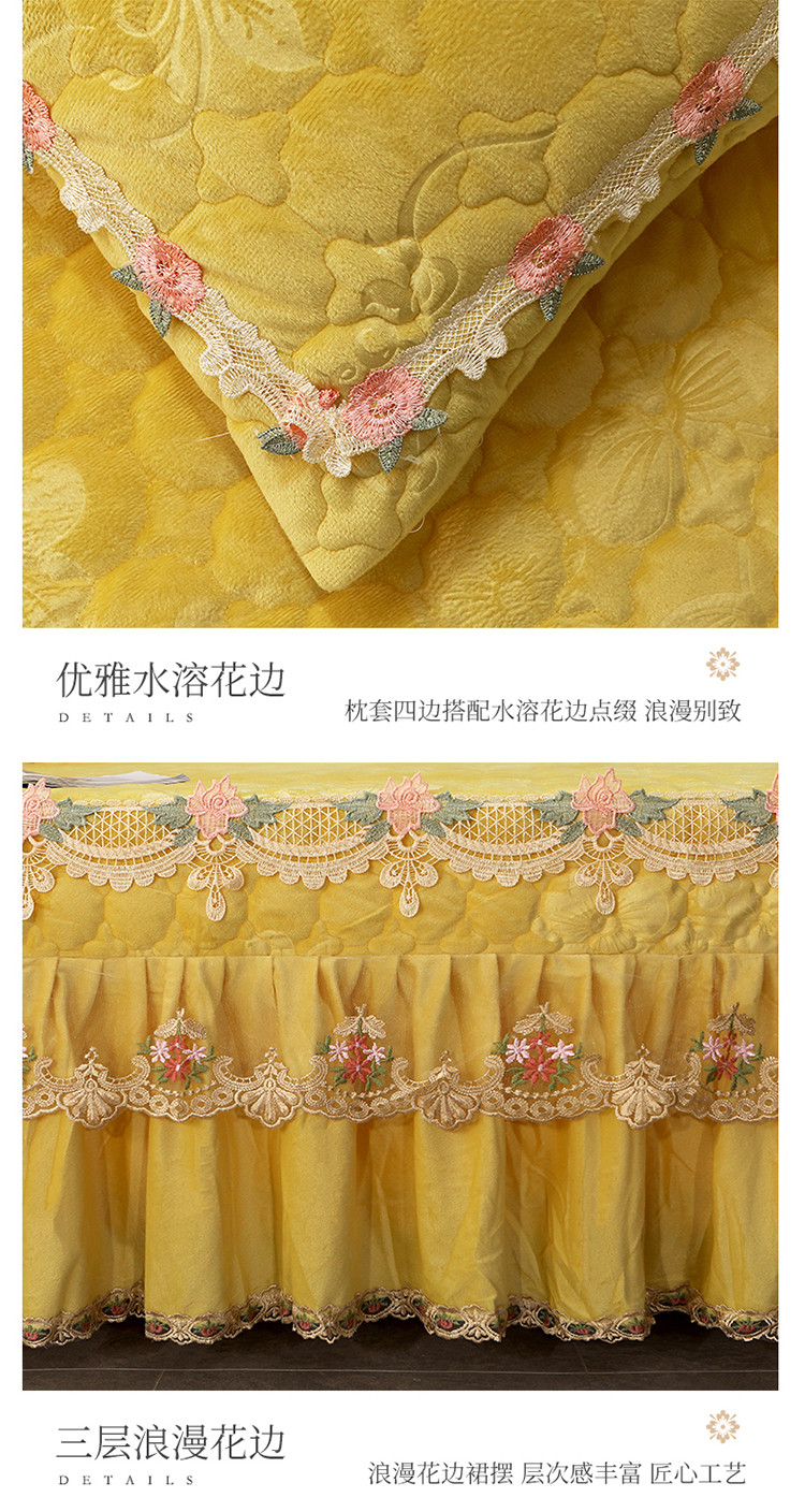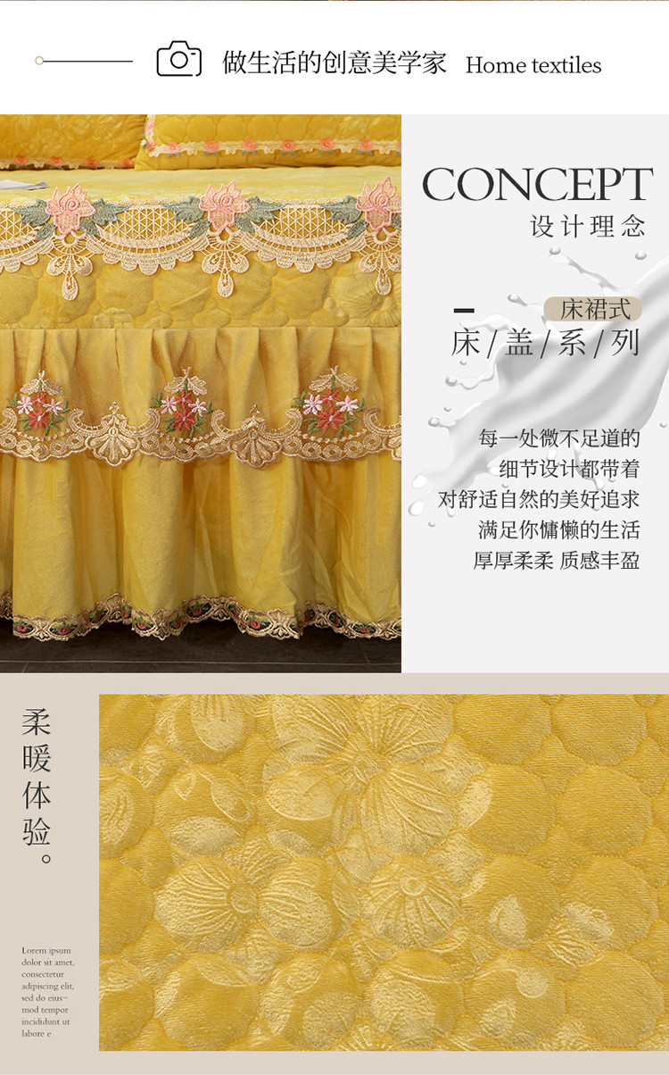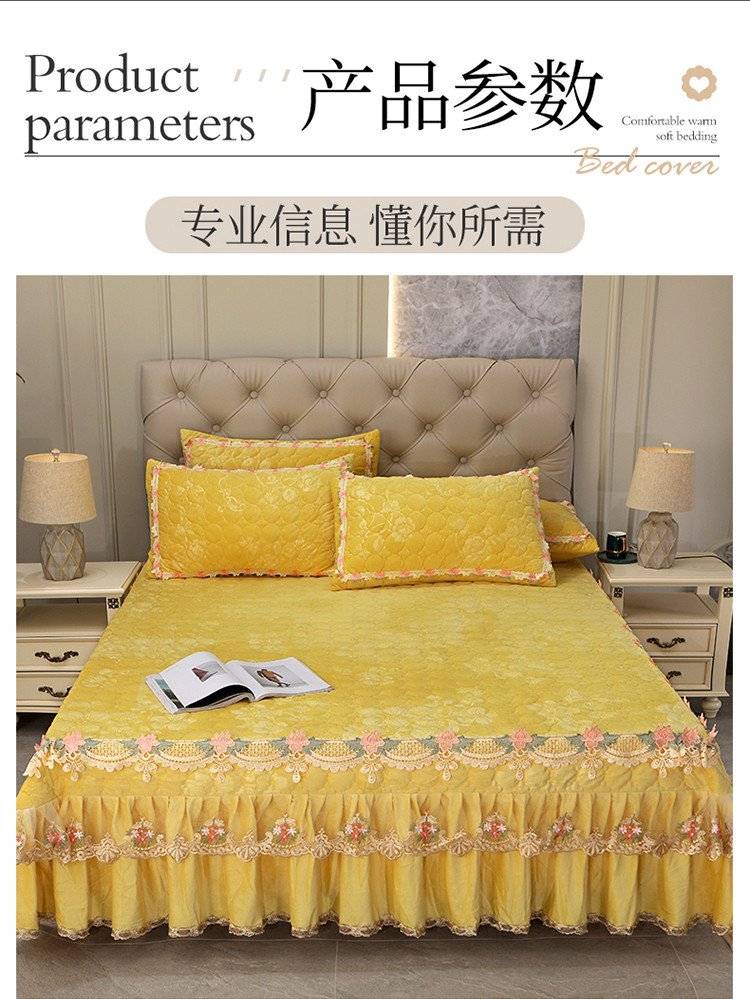 商品名称:宜凡家纺 2021新款水晶绒床裙式床盖三件套 冬日恋歌-金黄