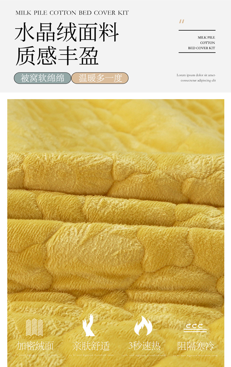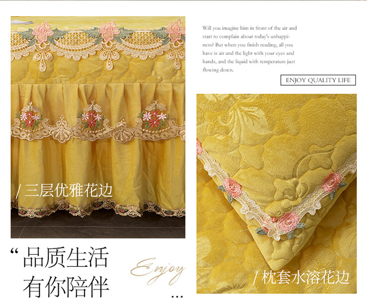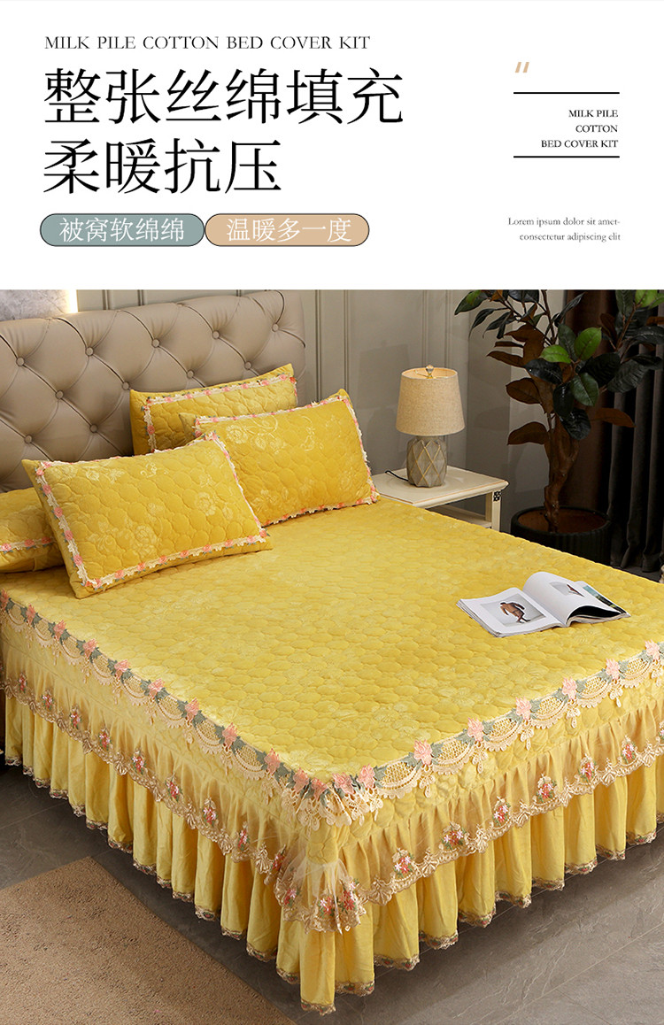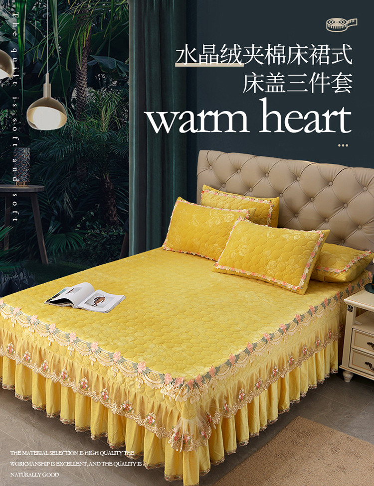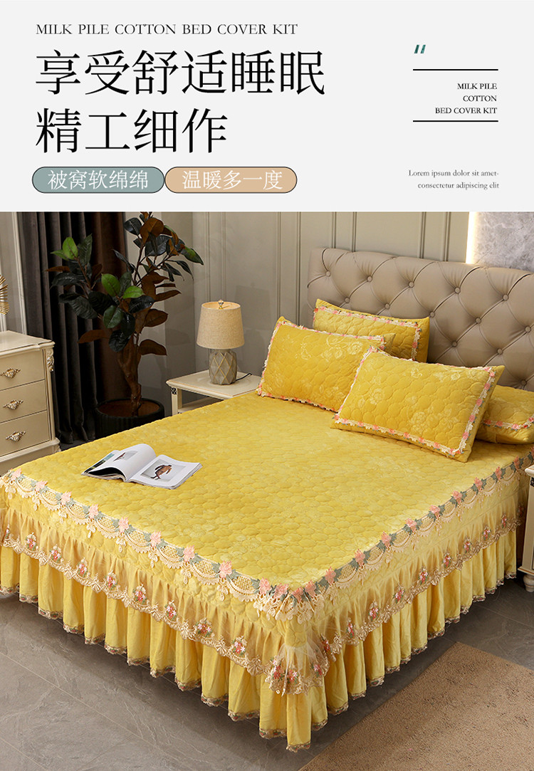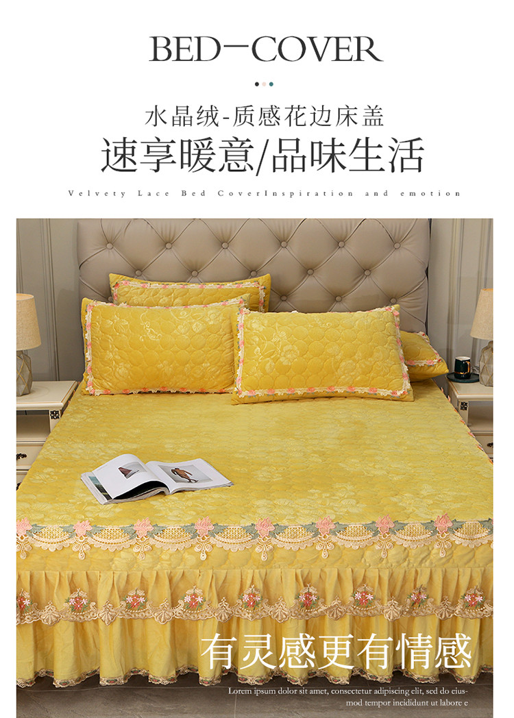 宜凡家纺 2021新款水晶绒床裙式床盖三件套 冬日恋歌-金黄