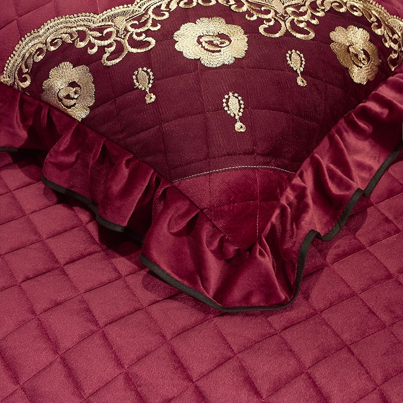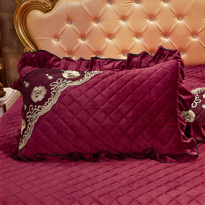 商品名称:瑞宝 2025新款水晶绒夹棉米拉花园系列一对枕套 酒红色