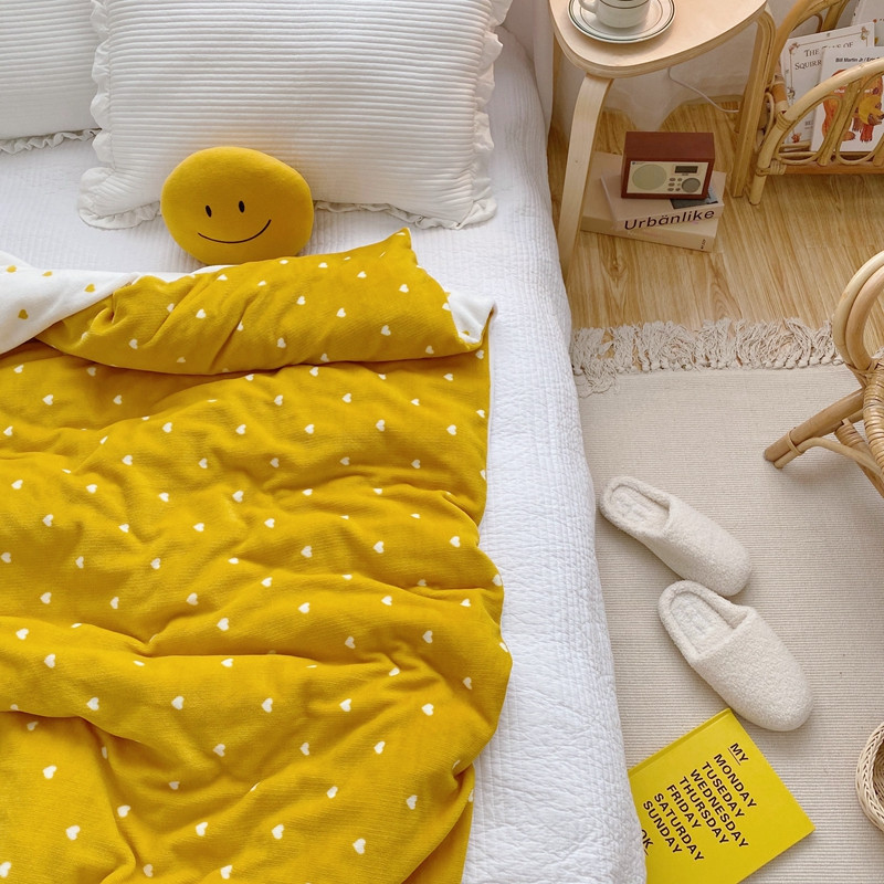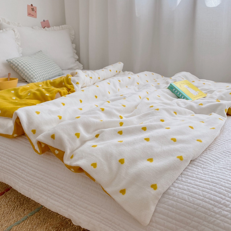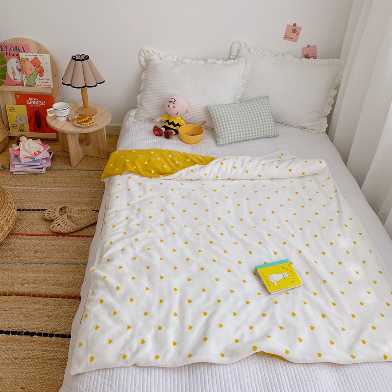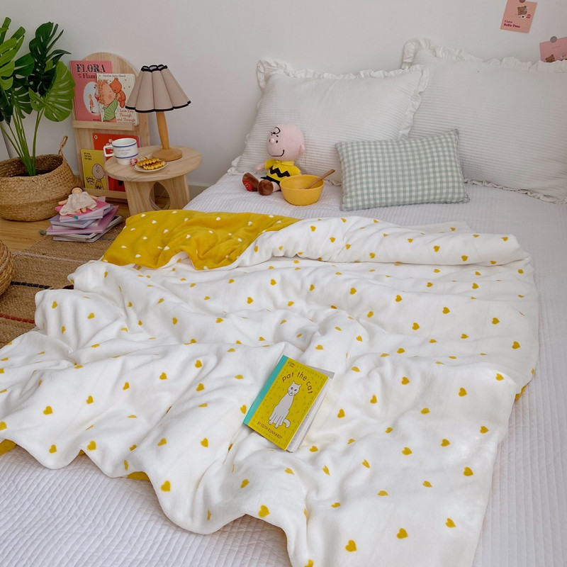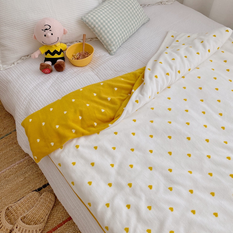 商品名称:星期八2020新款双层宝宝绒盖毯被毯子毛毯实拍图 爱心黄