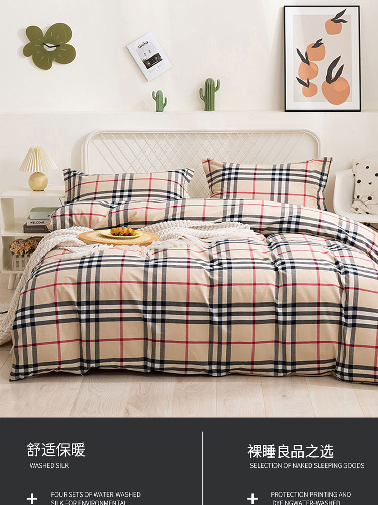 简色坊 2023新款全棉全棉水洗棉四件套 格韵