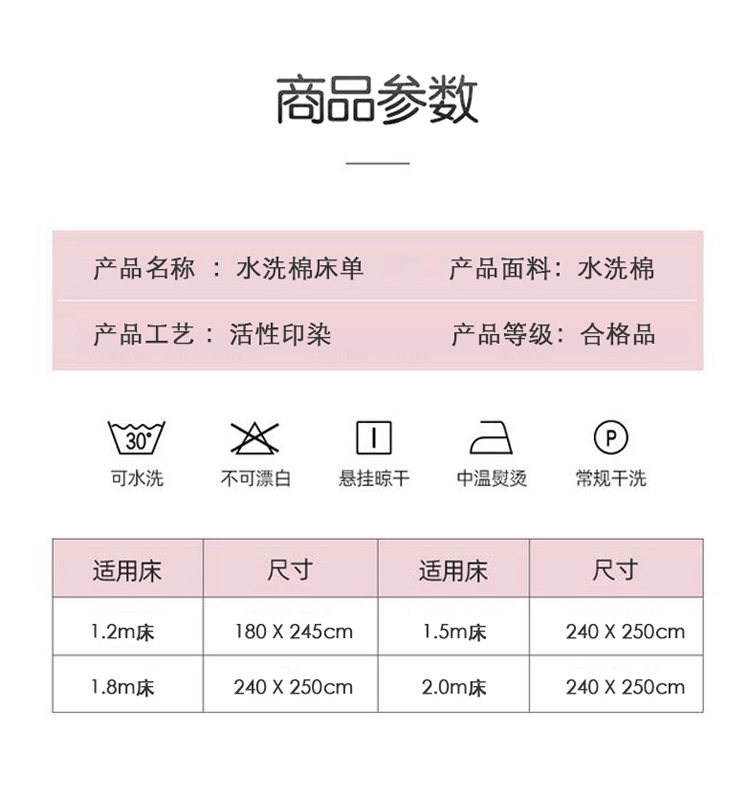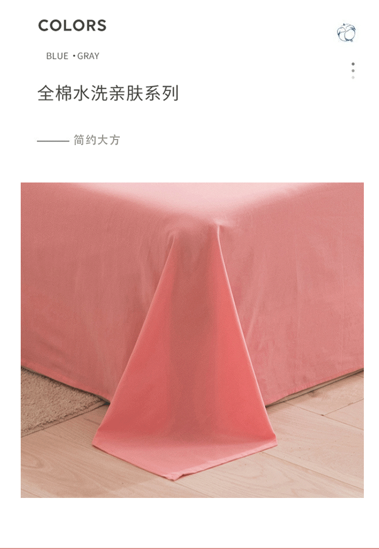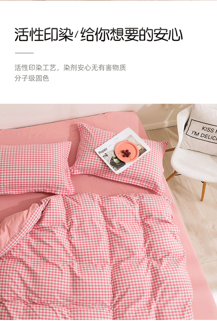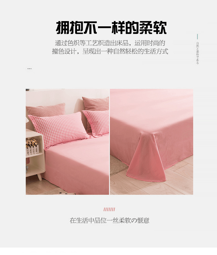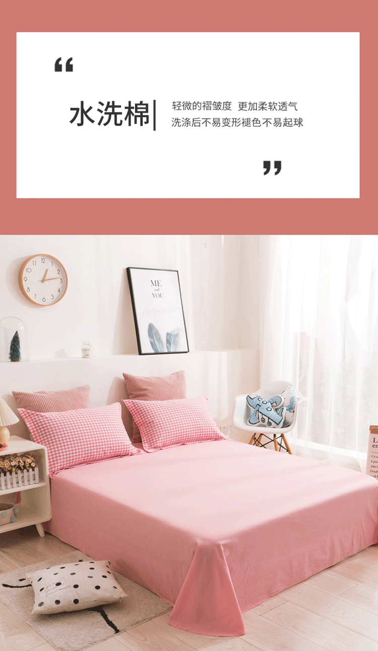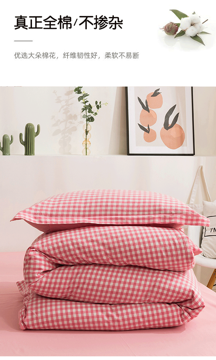 商品名称:简色坊 2023新款全棉水洗棉单品床单 粉小格