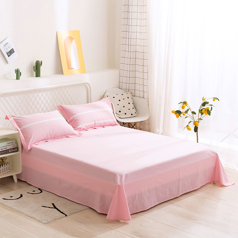 简色坊 2023新款全棉水洗棉单品床单 时尚条纹-粉