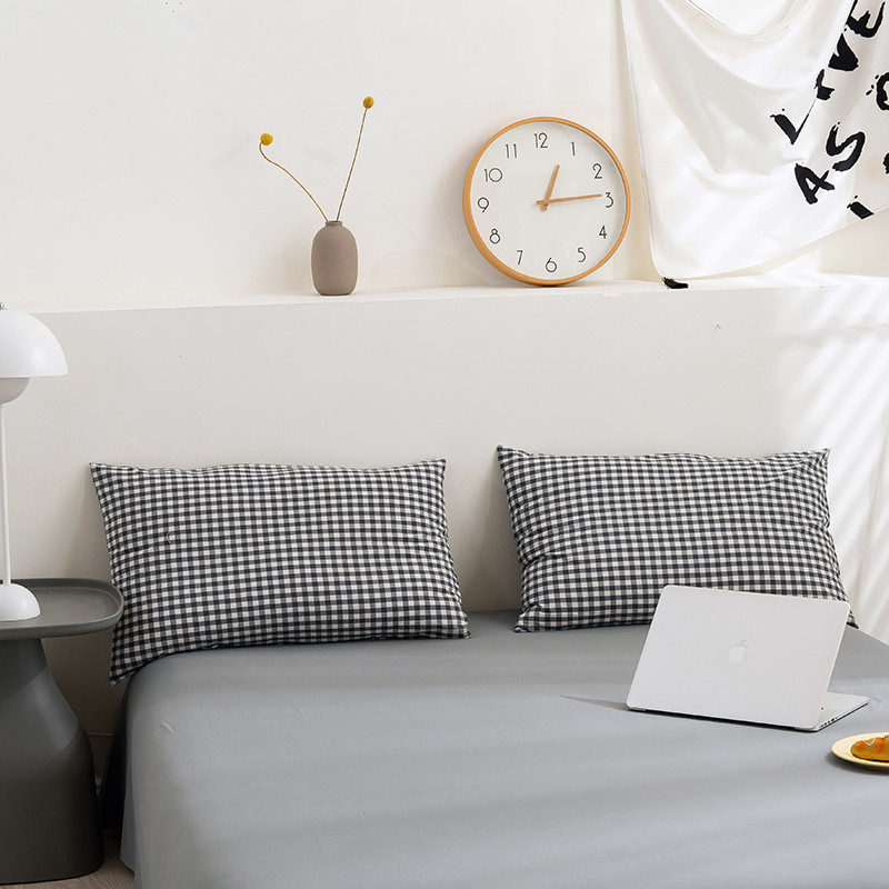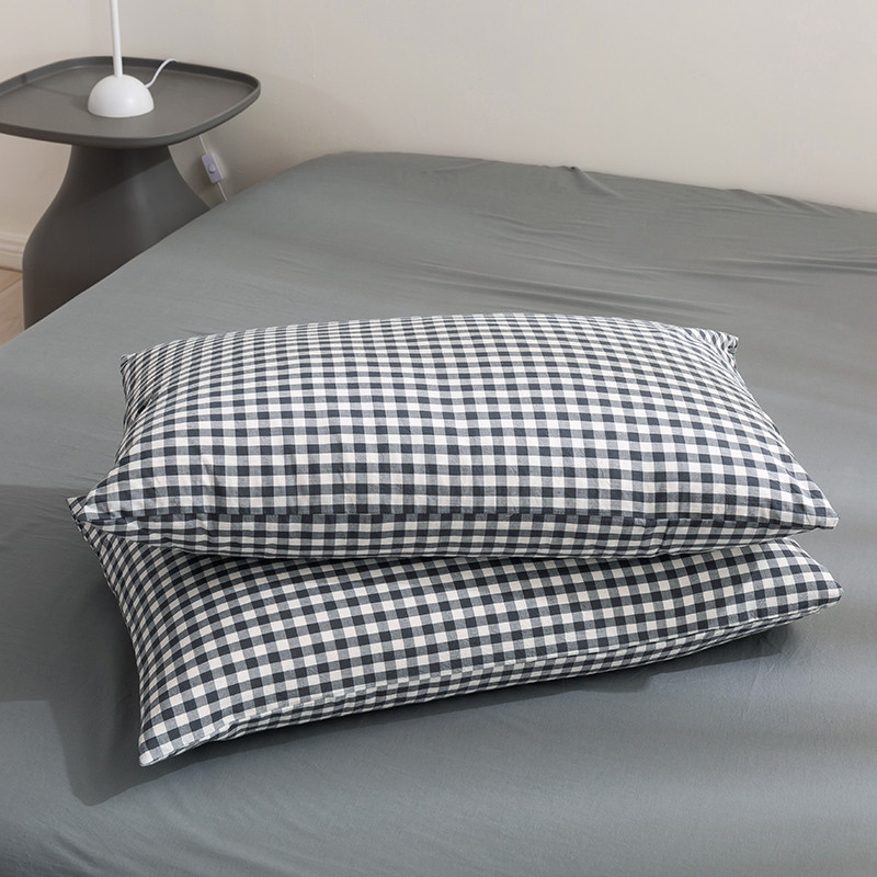 简色坊 2023新款全棉水洗棉单品枕套一只 灰小格