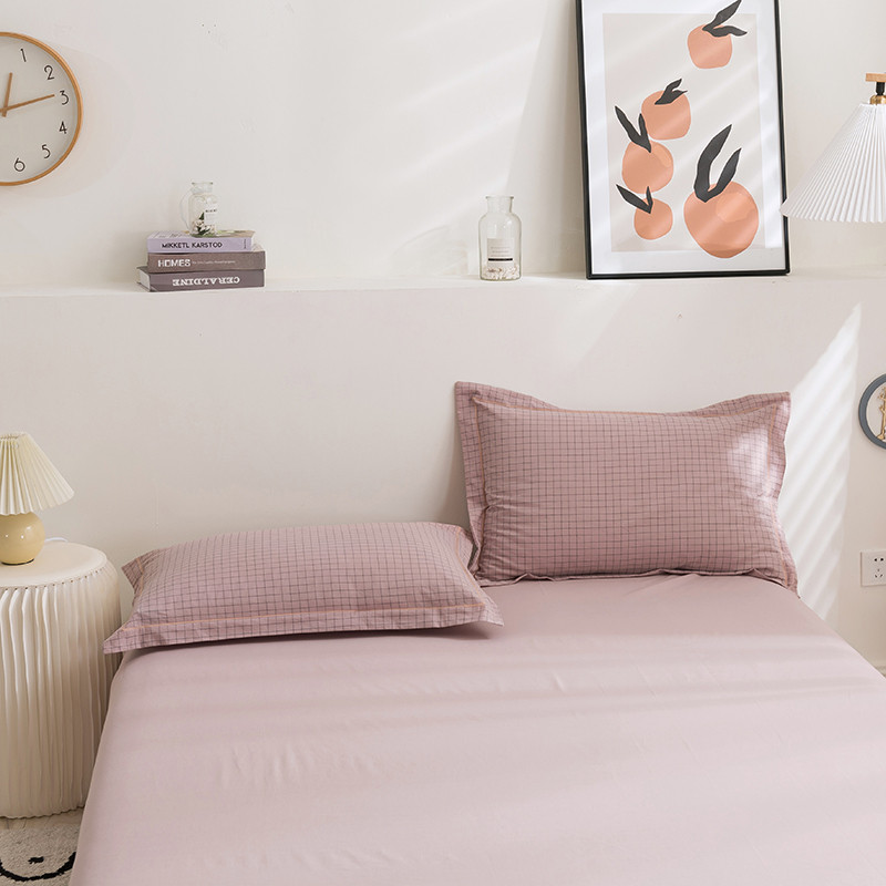 商品名称:简色坊 2023新款全棉水洗棉单品枕套一只 条格-豆沙