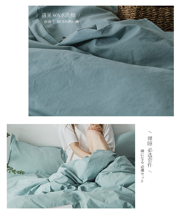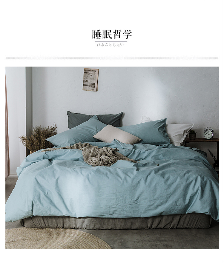 涞澳家纺 2021新款60s水洗棉素色四件套 浅湖蓝