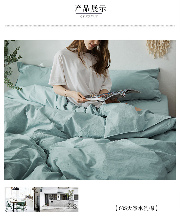 商品名称:涞澳家纺 2021新款60s水洗棉素色四件套 浅湖蓝