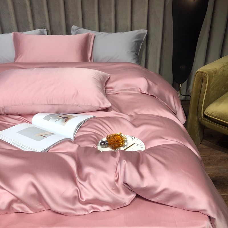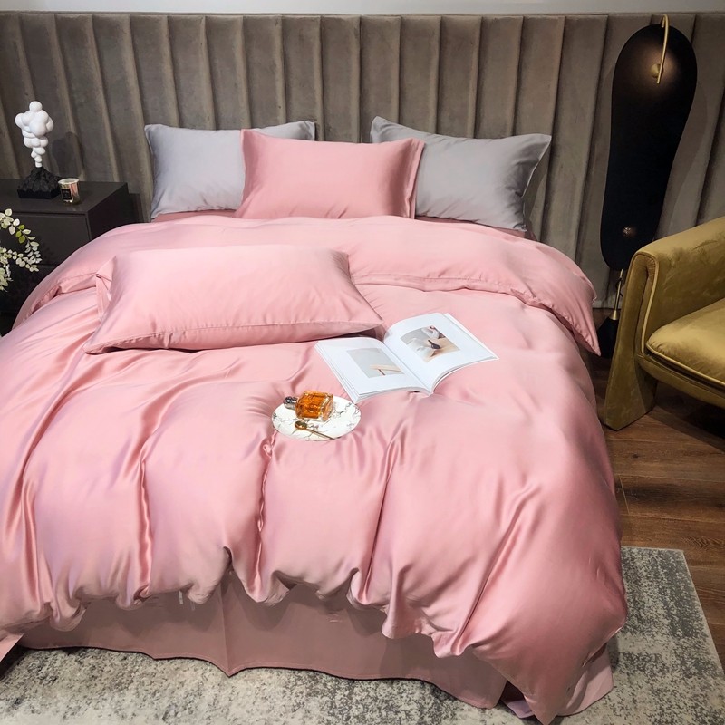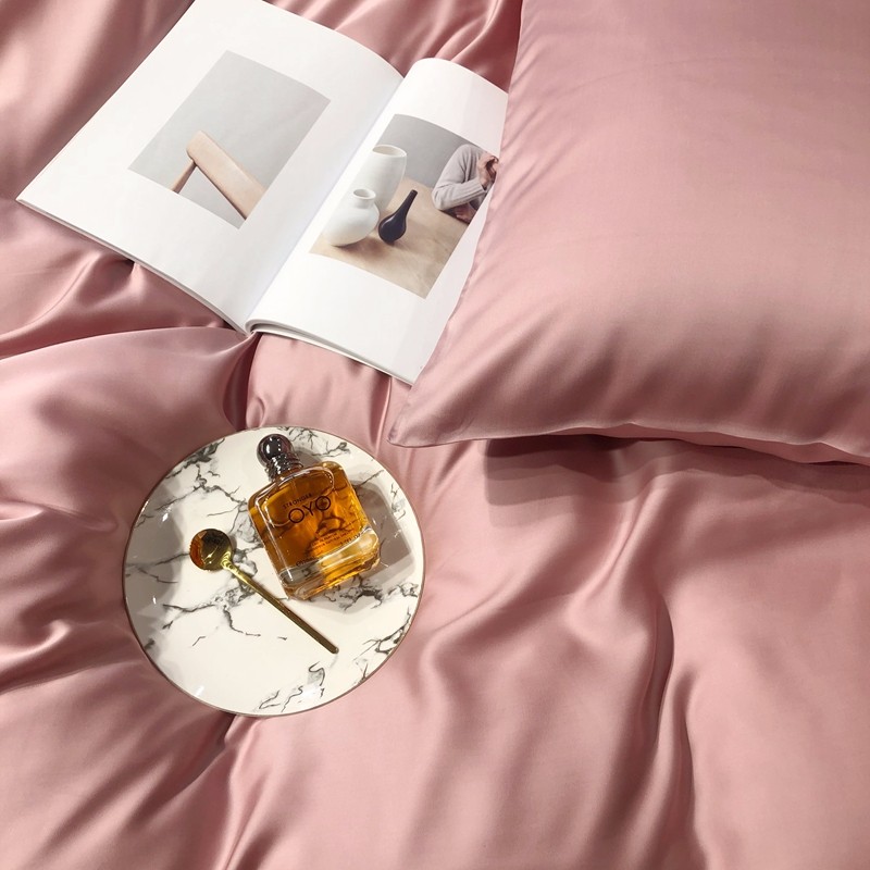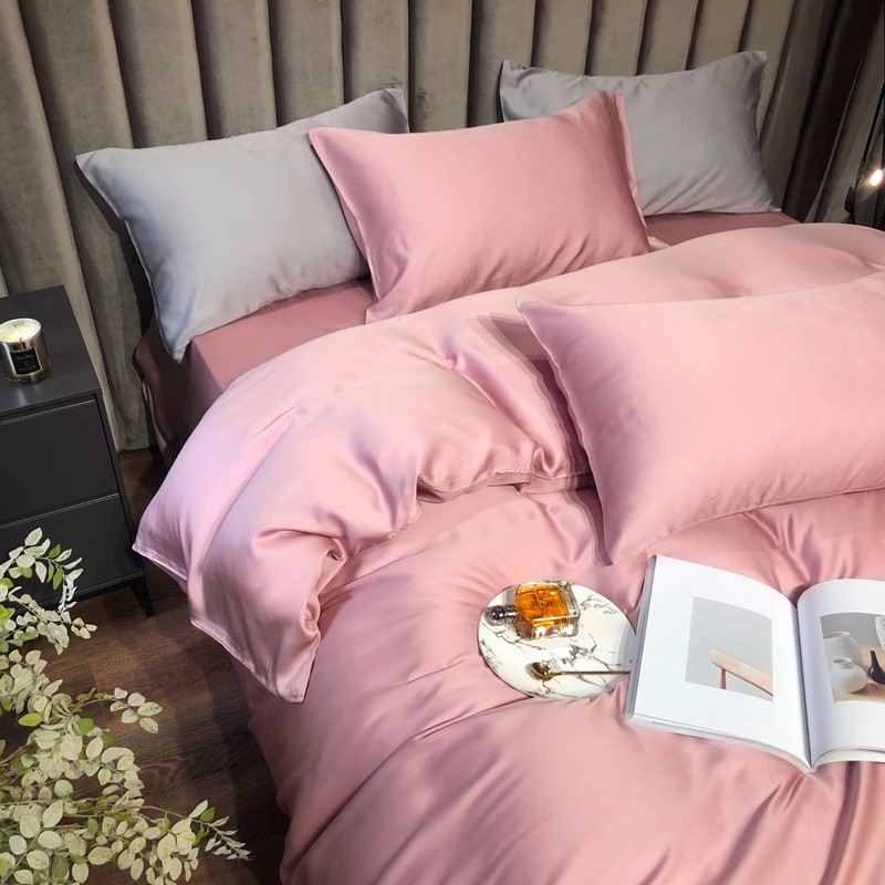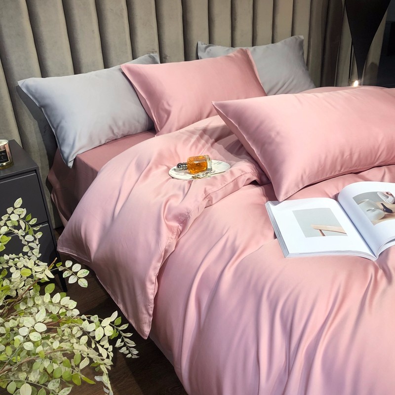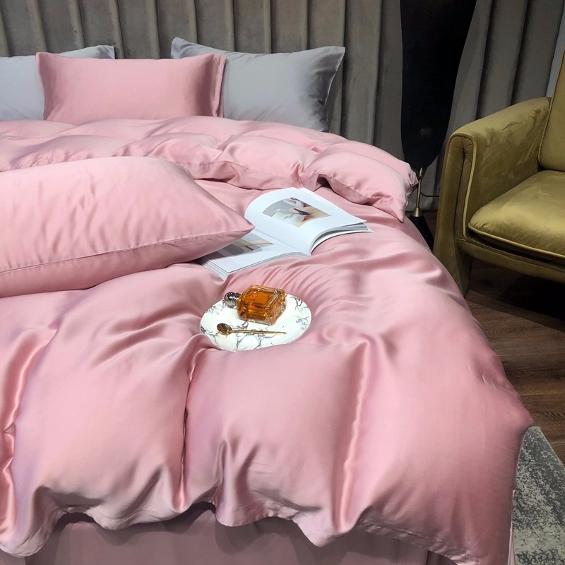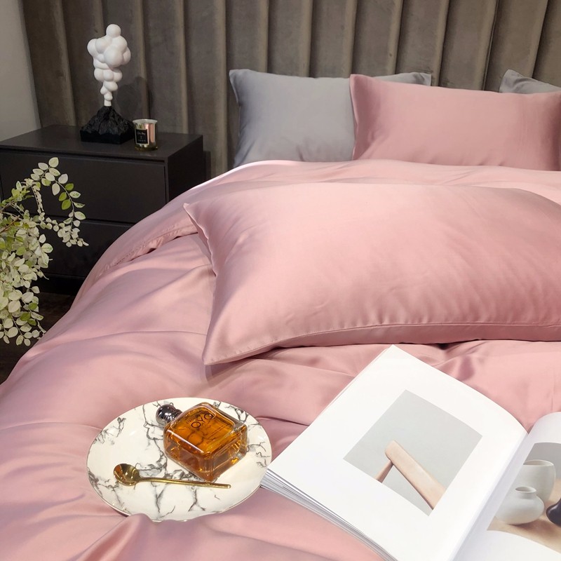 涞澳家居 2021新款60天丝纯色四件套梦幻粉