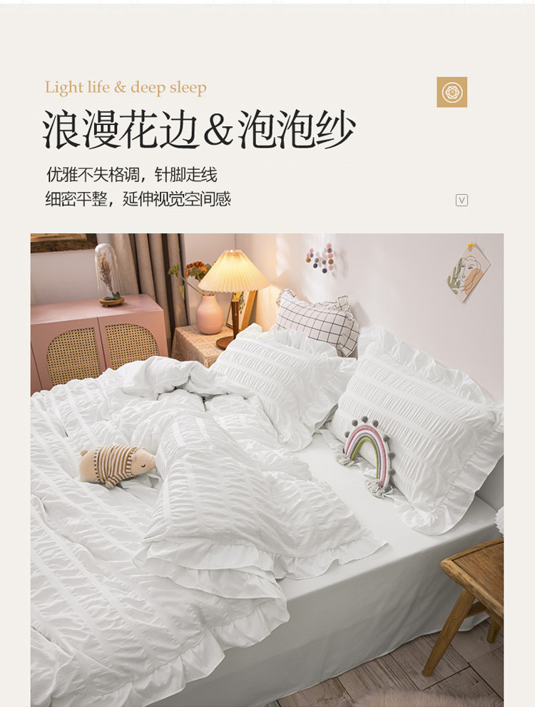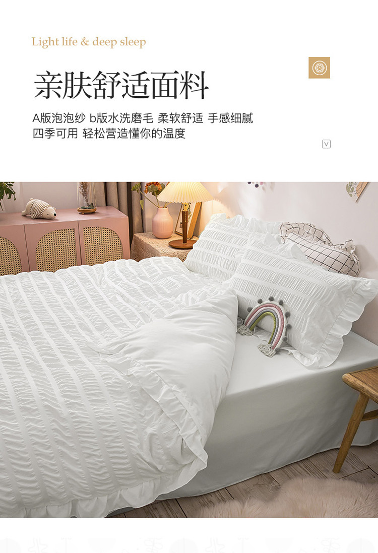 当前位置: 91家纺网 > 商品网购 > 床品套件 > 四件套 > 水洗棉四件套 > 逸尚阁 2021新款泡泡纱四件套 梨花白