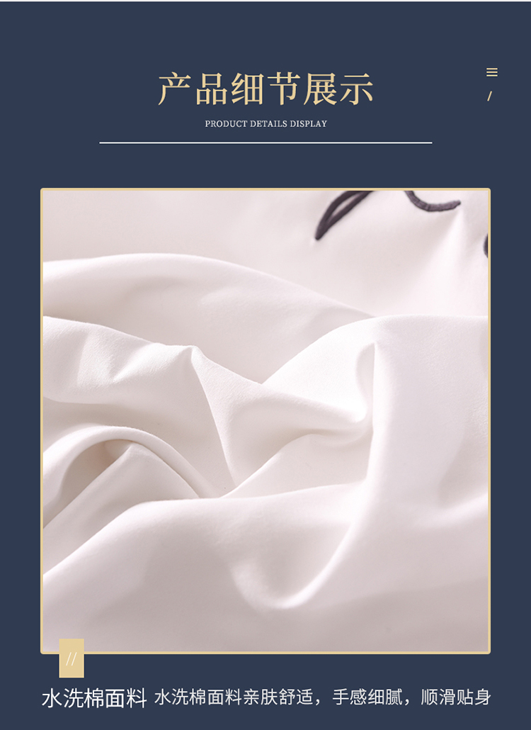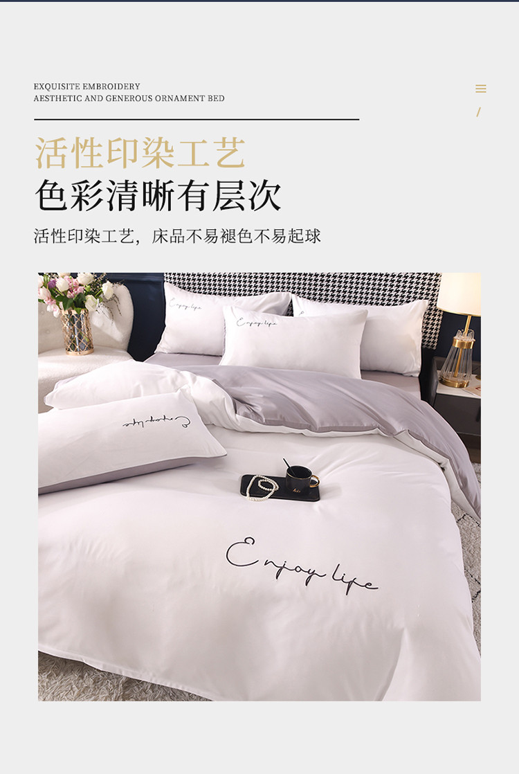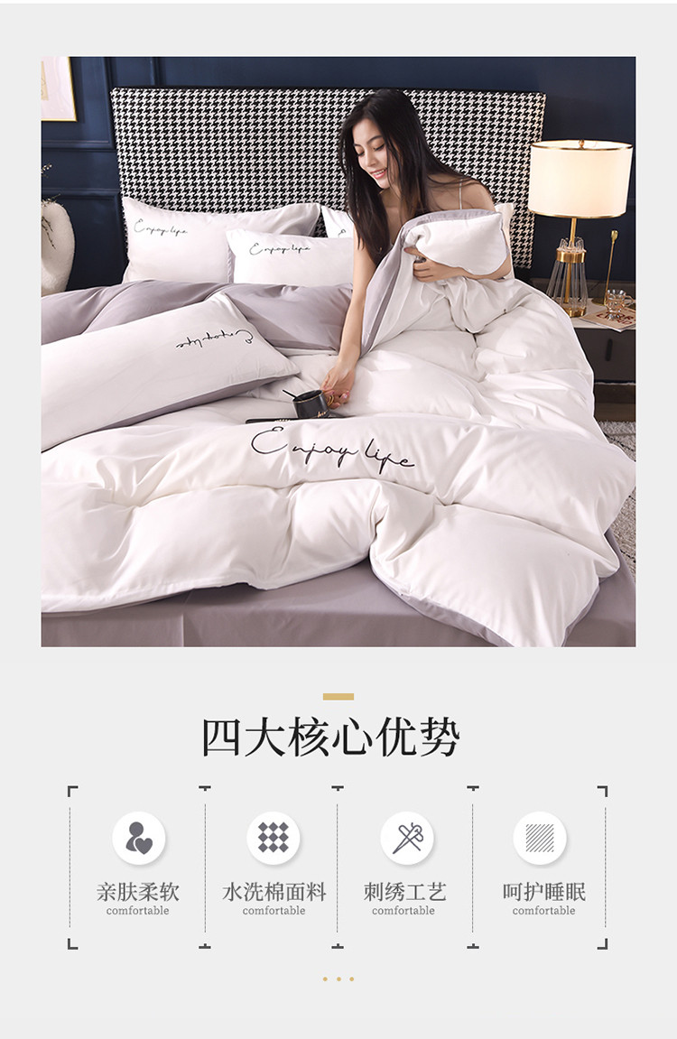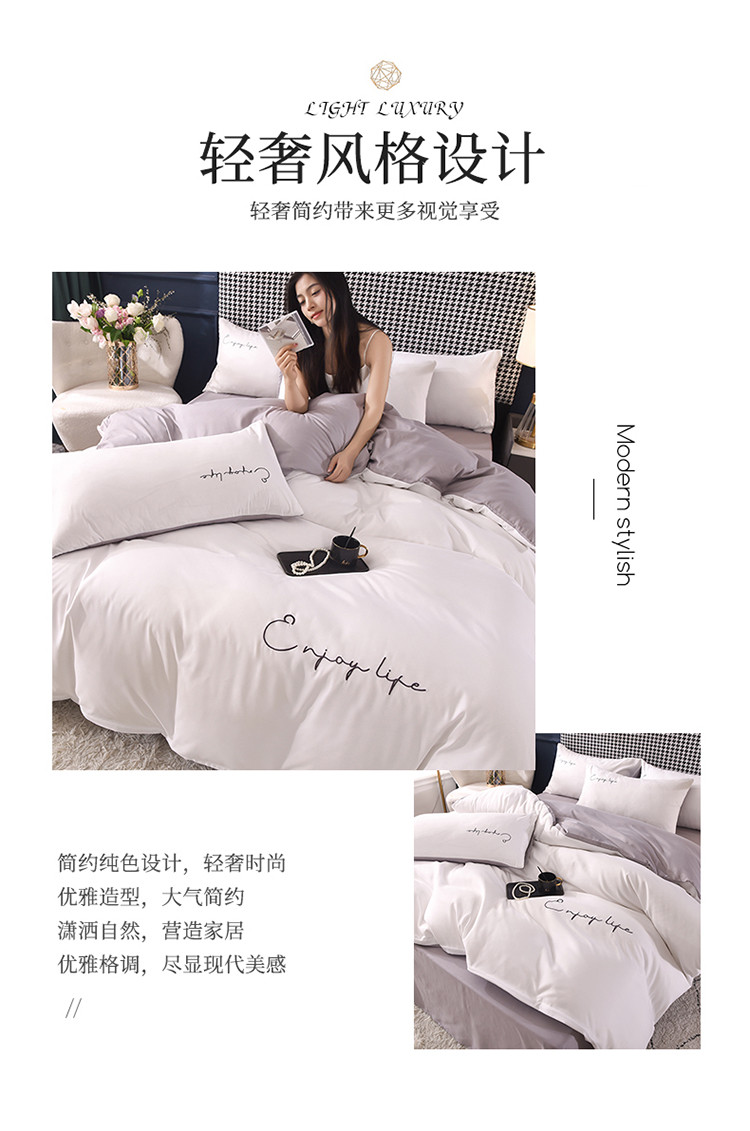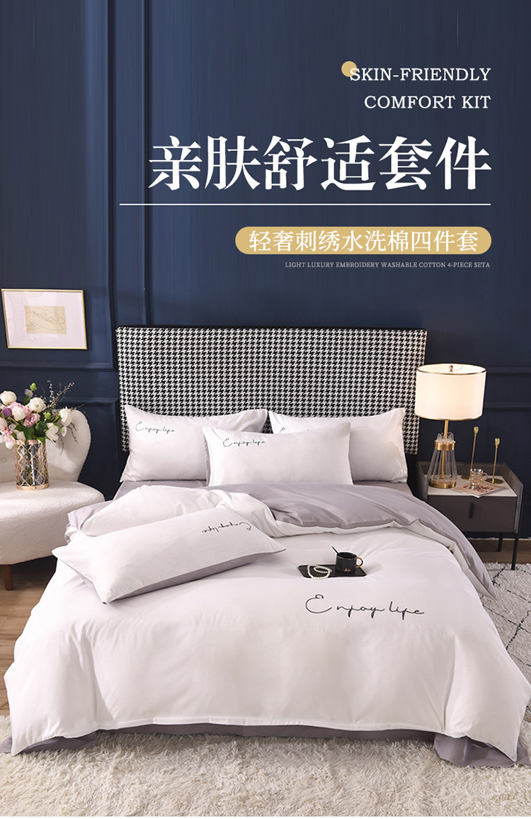 大米家居2023新款轻奢刺绣水洗棉四件套 星耀系列本白+银灰