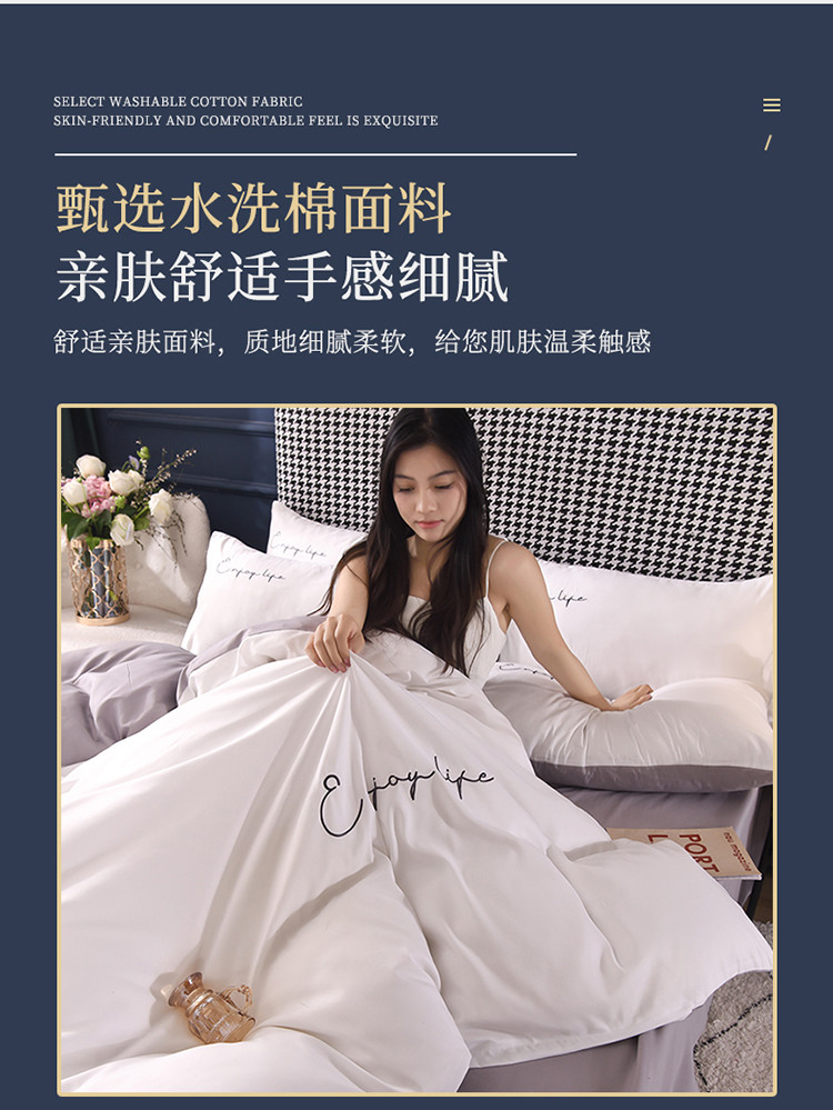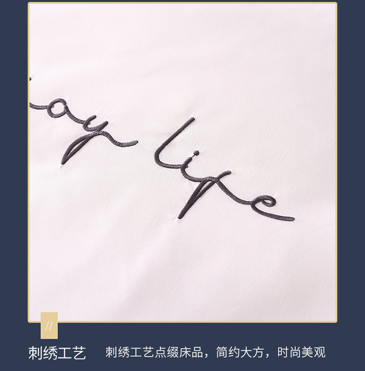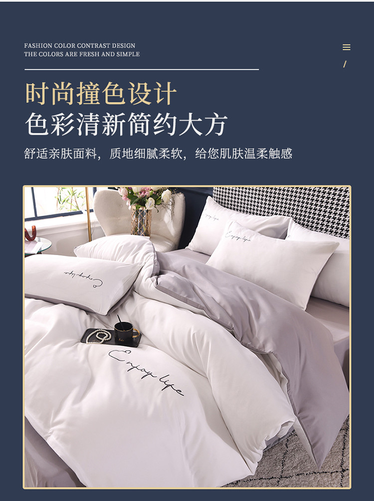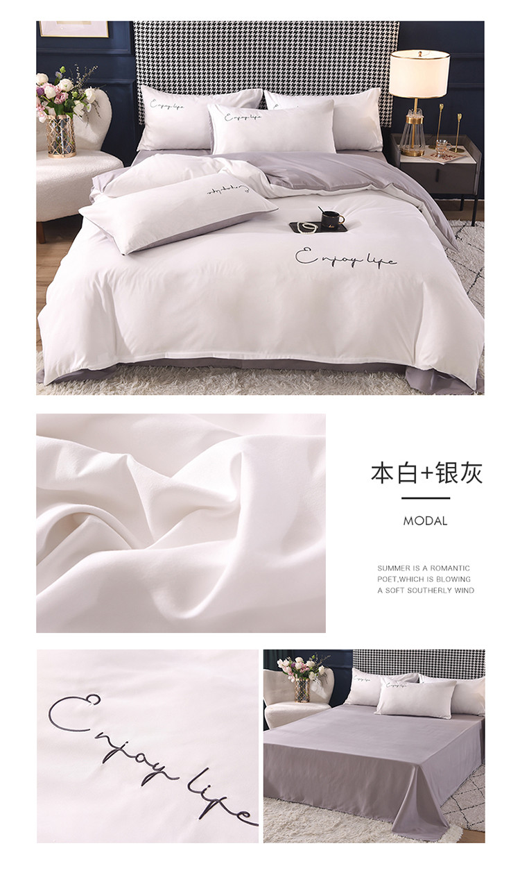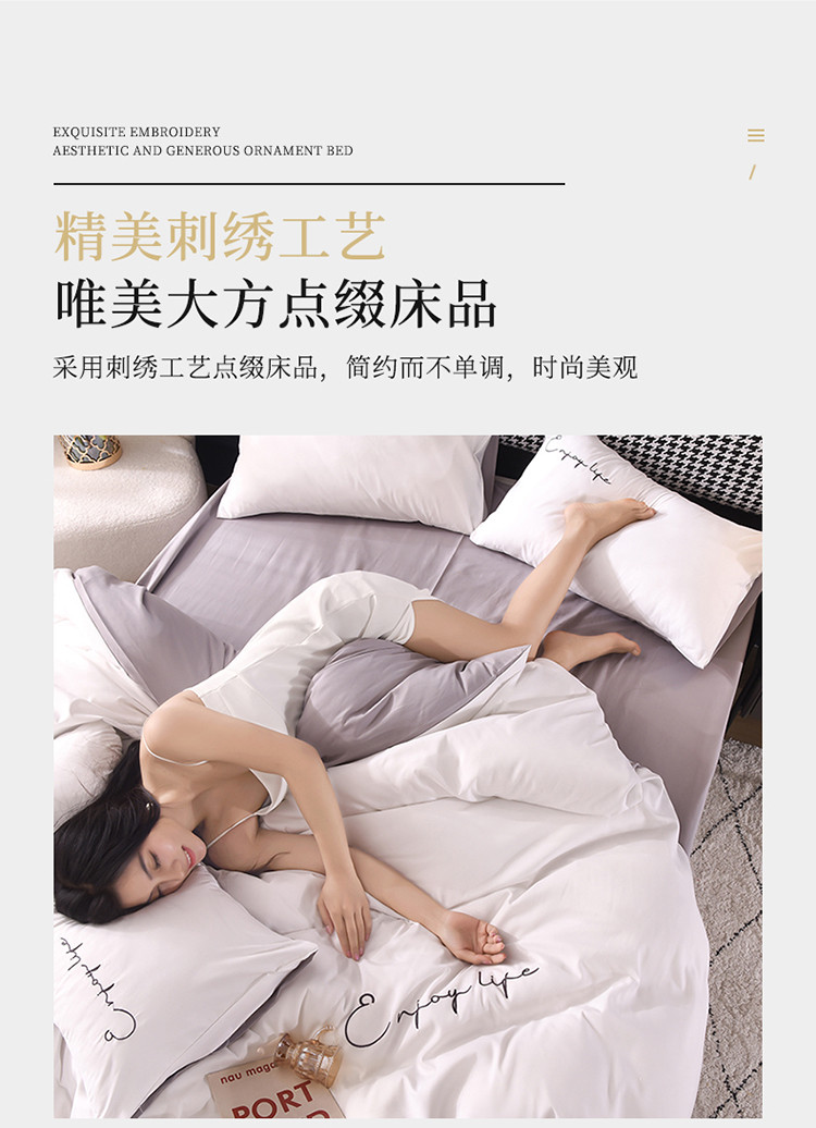 大米家居2023新款轻奢刺绣水洗棉四件套 星耀系列本白+银灰