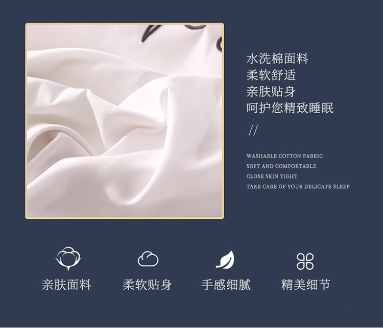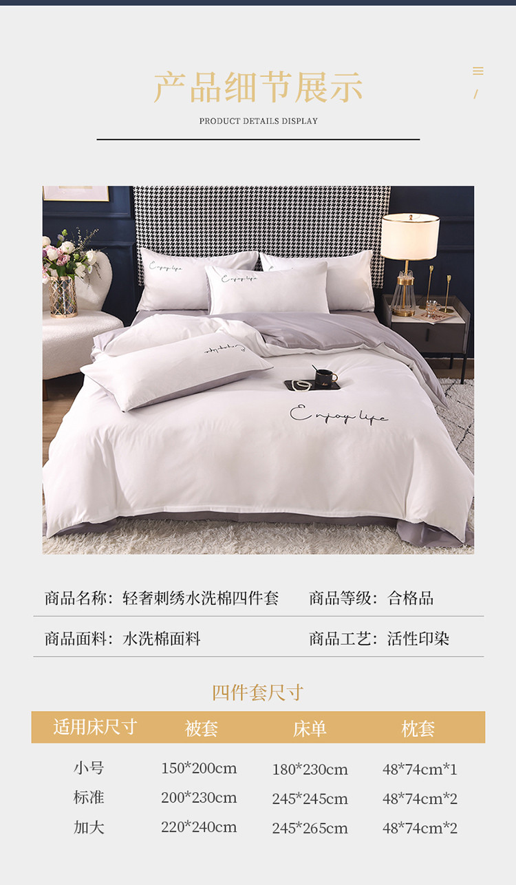 商品名称:大米家居2023新款轻奢刺绣水洗棉四件套 星耀系列本白+银灰