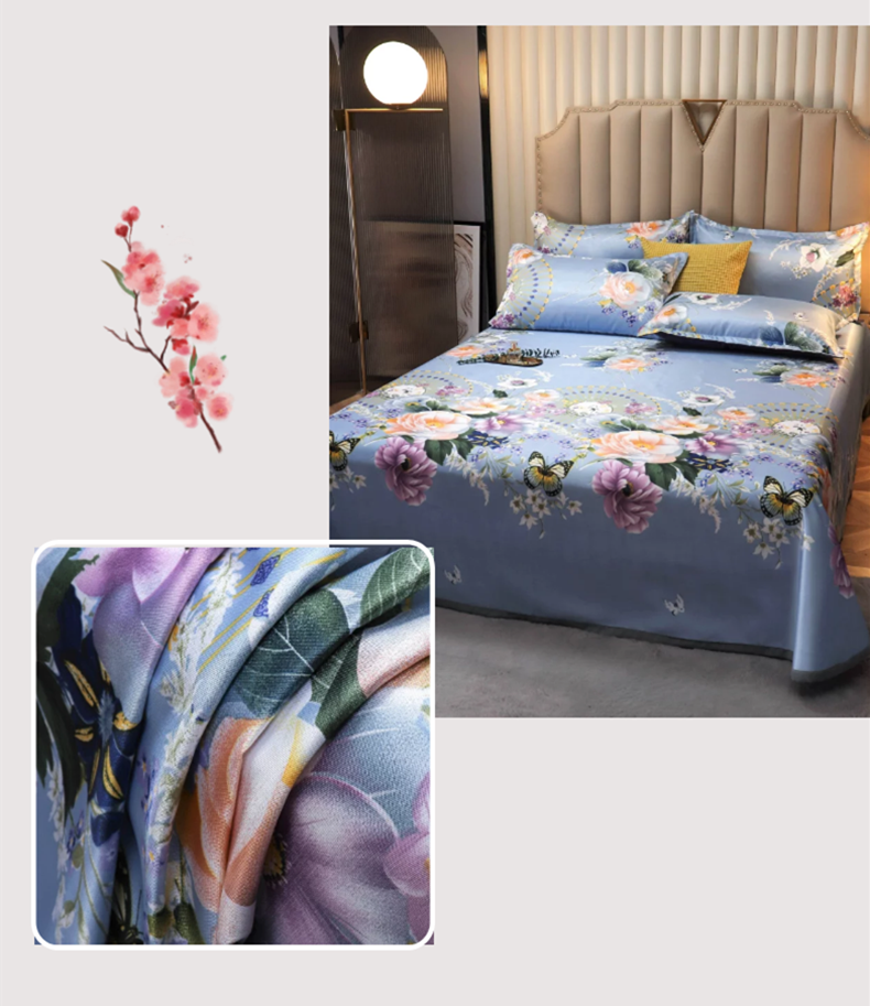 (总)曼璐家纺 2025新款小清新芦荟棉印花四件套,朝花夕拾,初夏,可可西里,喵星人,叶雨,初夏