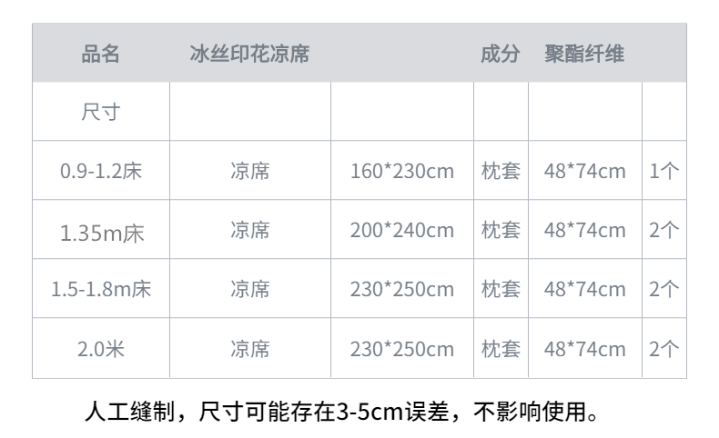 商品名称:2025新款水洗凉感冰丝席凉席三件套