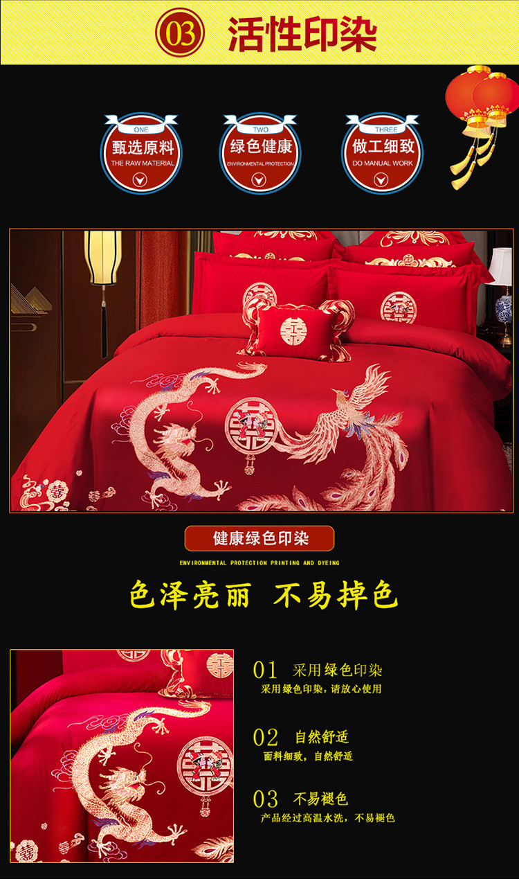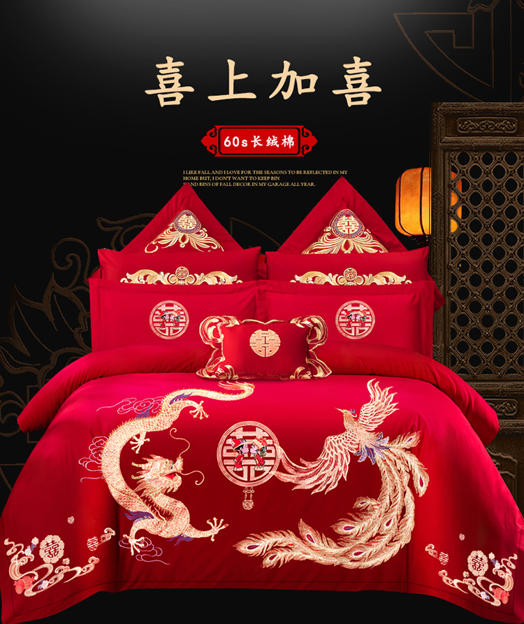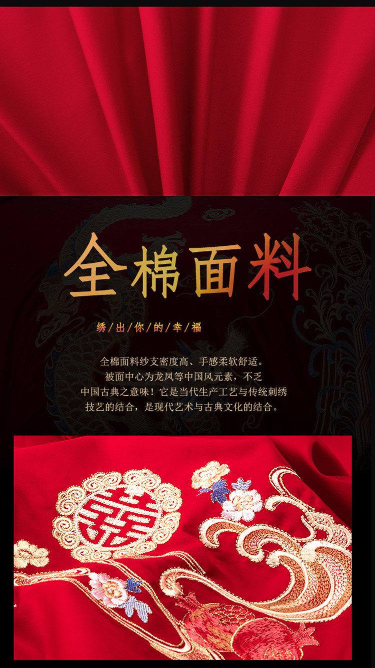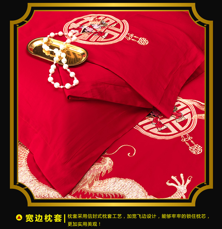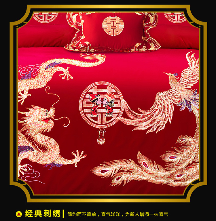 当前位置: 91家纺网 > 商品网购 > 床品套件 > 四件套 > 婚庆四件套 > 慕她 2025四件套大红色刺绣花结婚全棉纯棉多件套 新禧龙凤