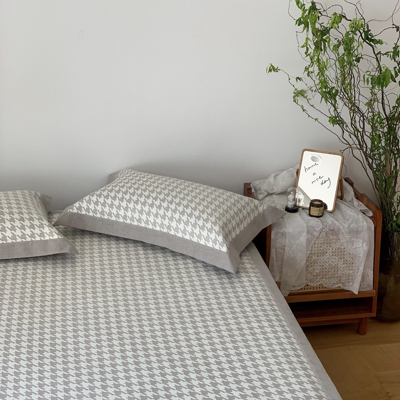 商品名称:时年 2021新款水洗提花冰丝凉席养生席 千鸟格-米咖
