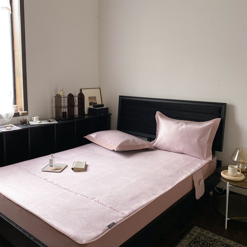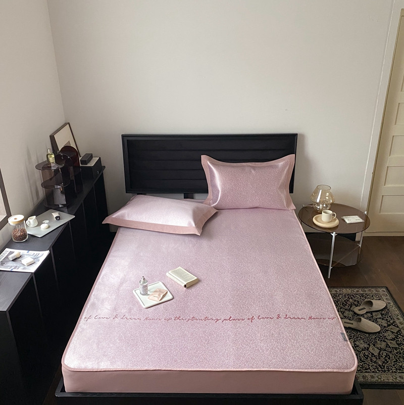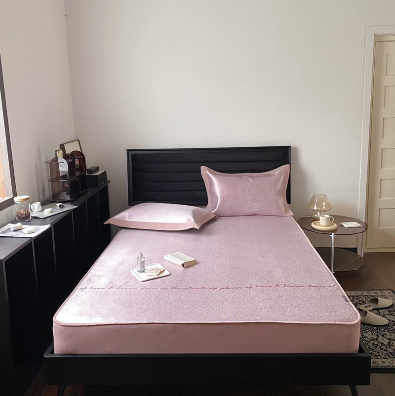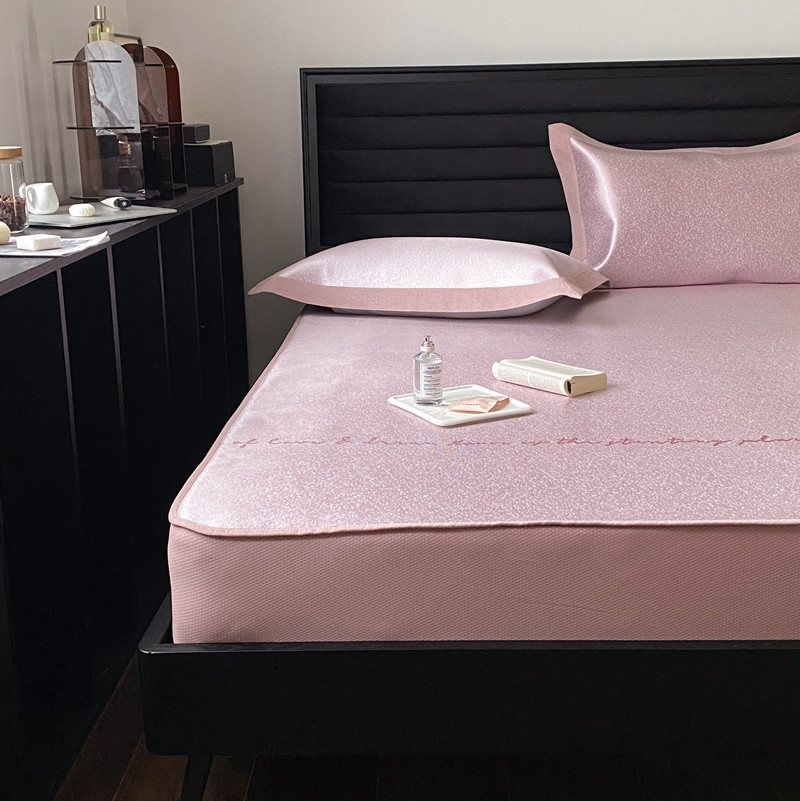 2021新款高端可水洗冰丝席提花床笠款 奥黛丽粉